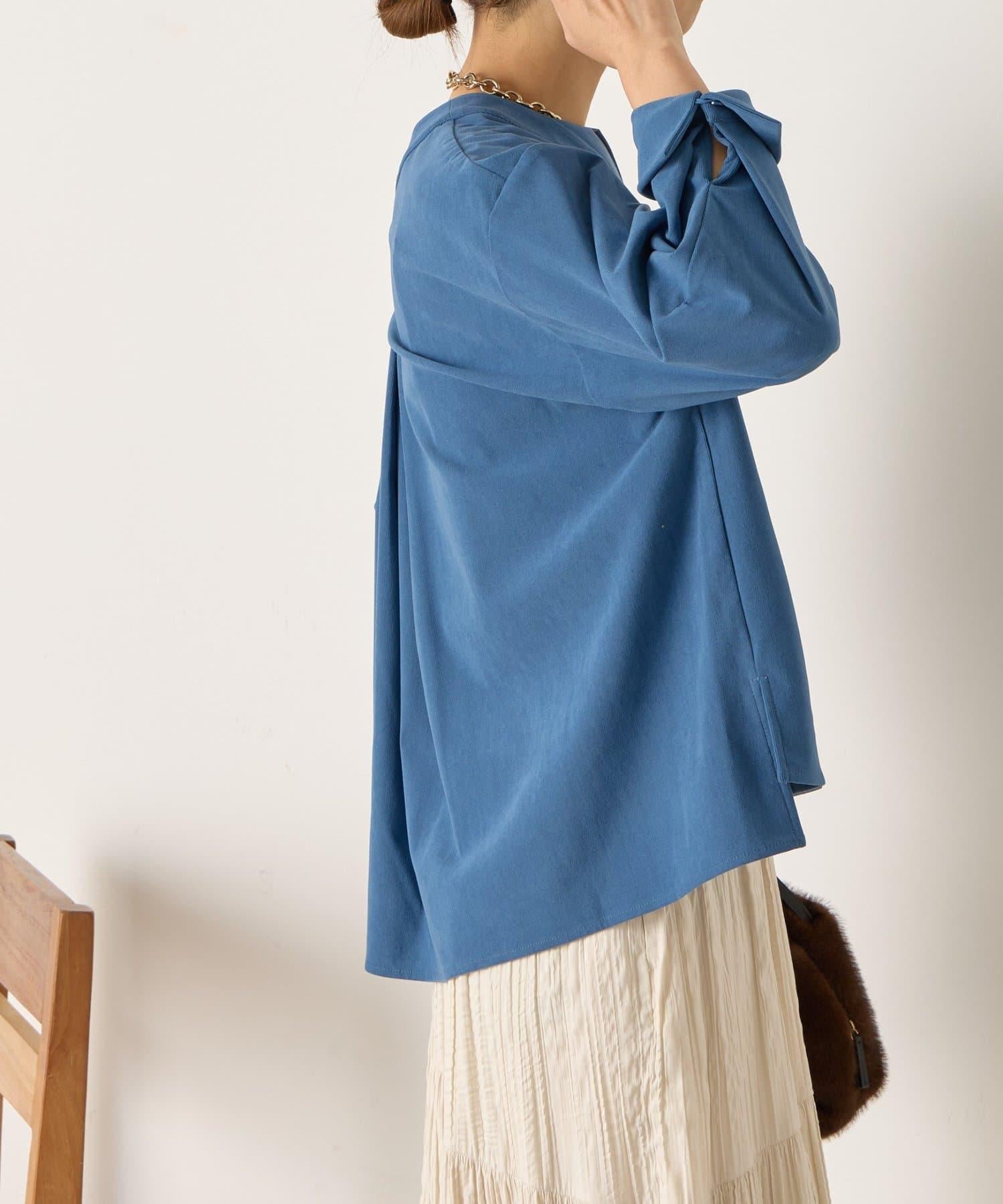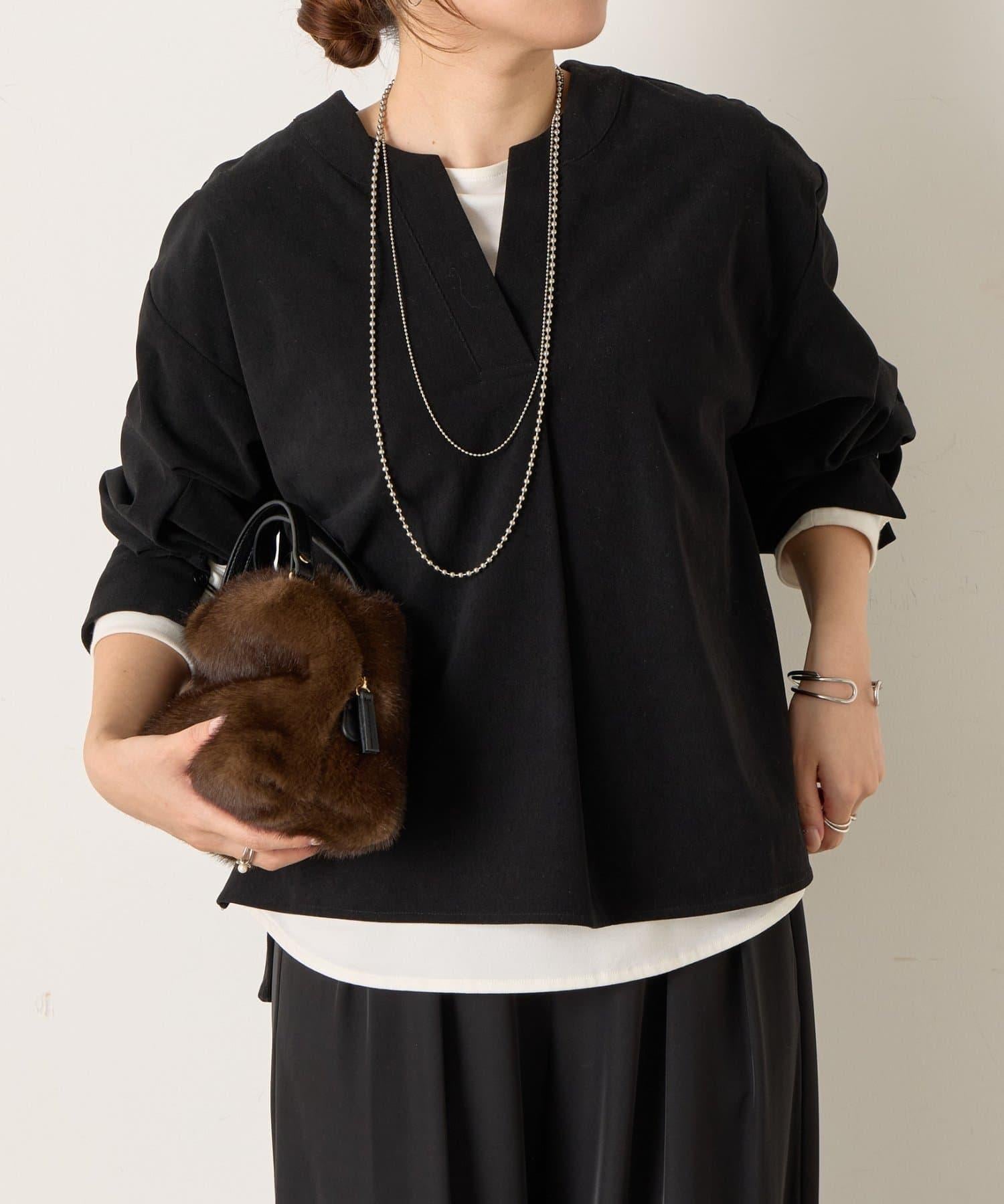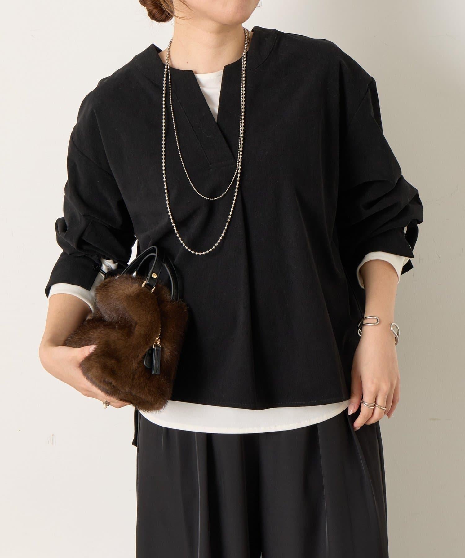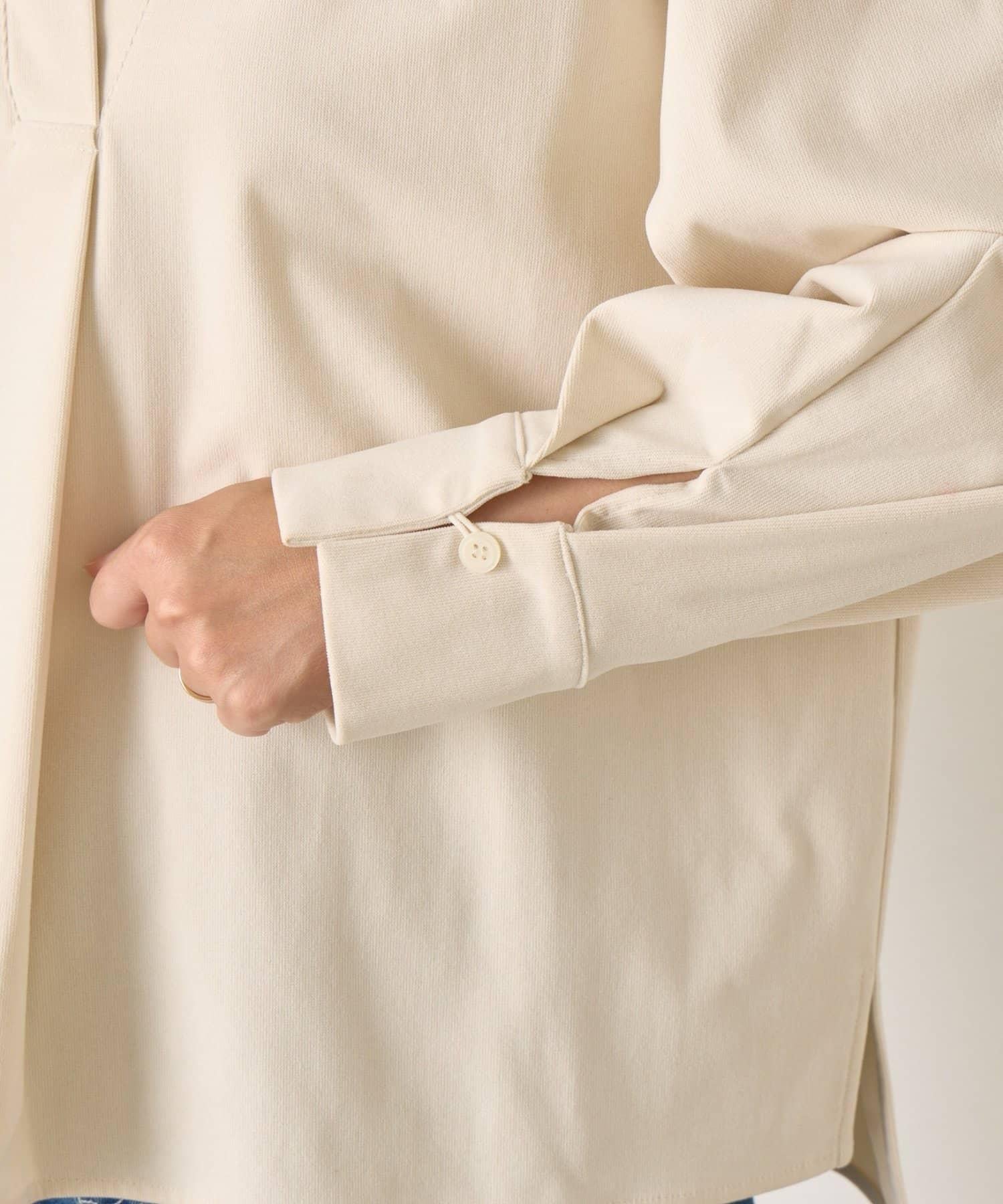 套頭上衣,領口採用 V 型開叉設計,外觀簡潔。