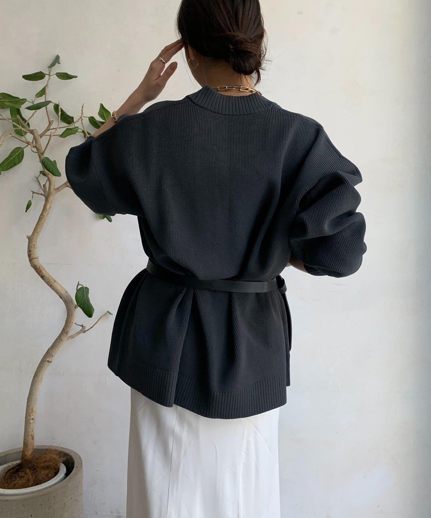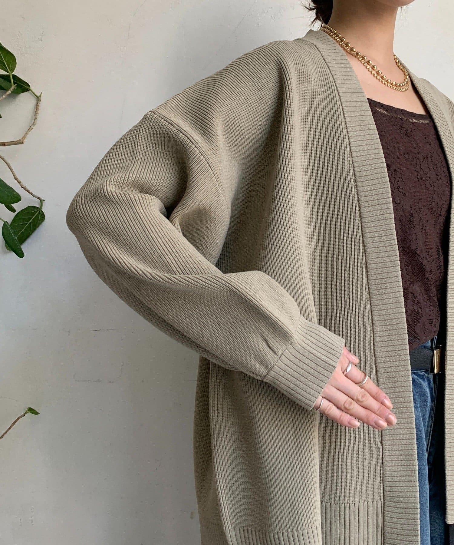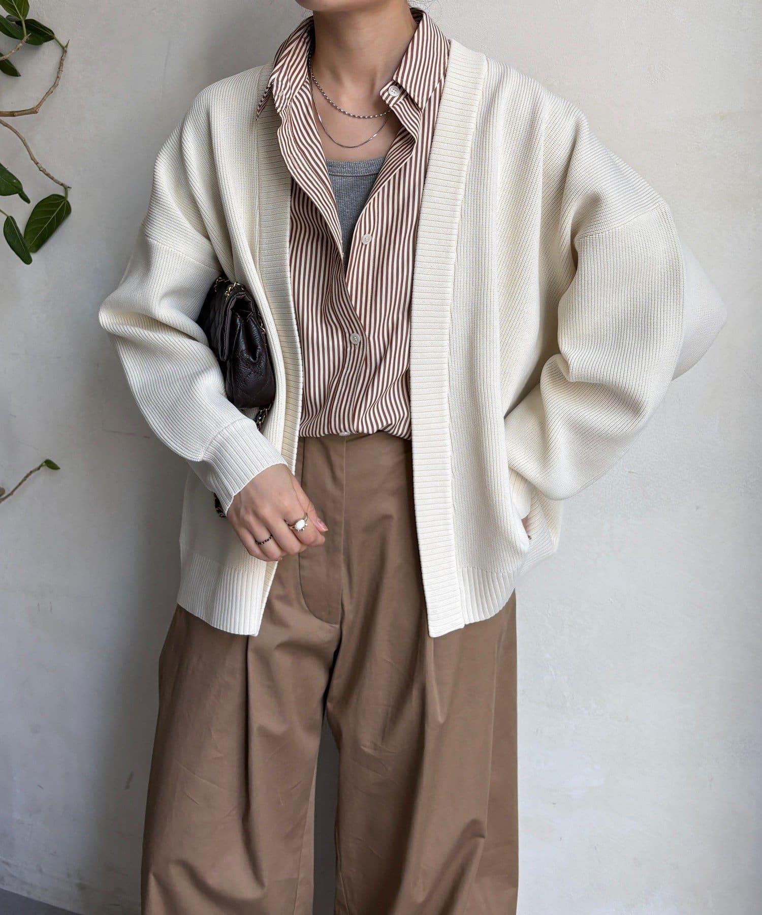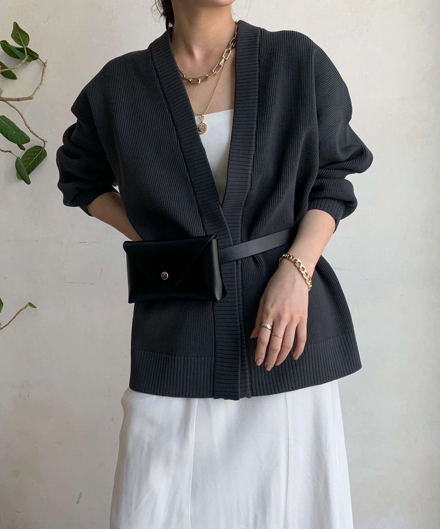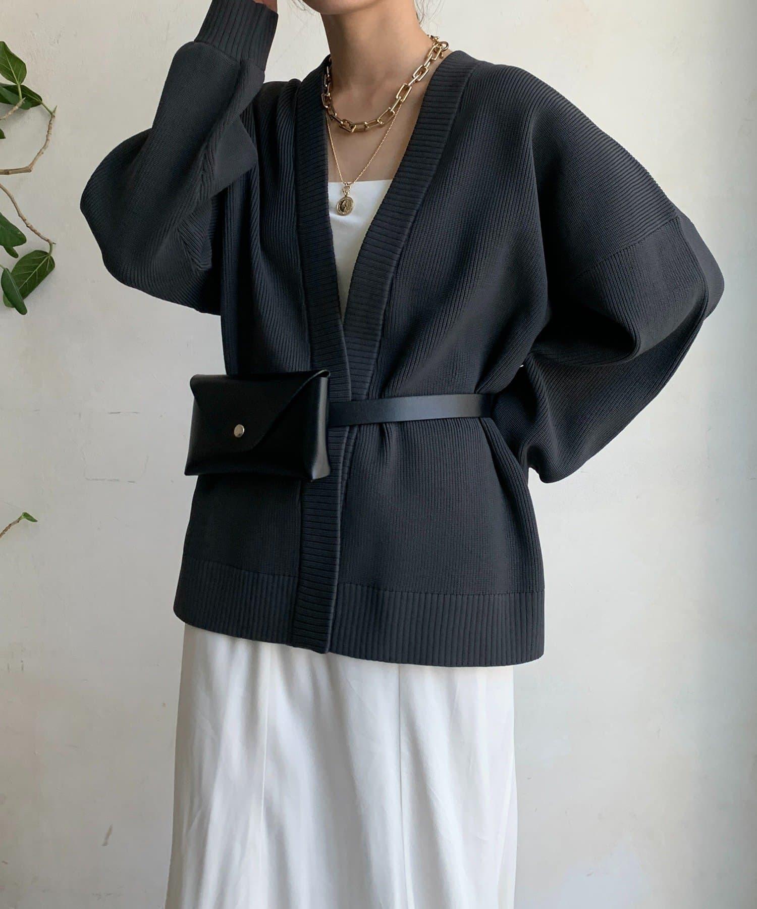 這款 "彈力紗單層羅紋開衫 "只需快速穿上,就能給人留下精緻的印象。