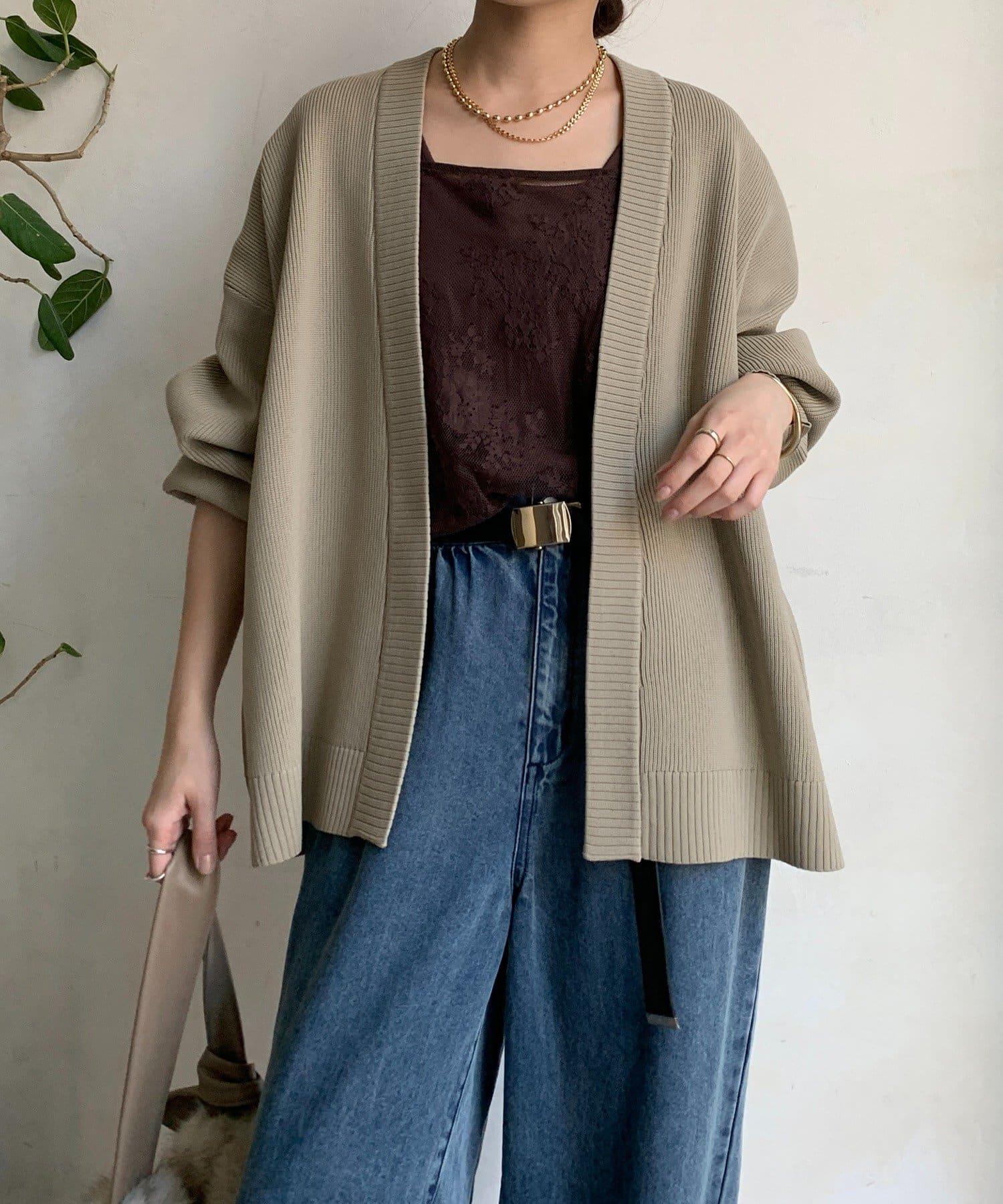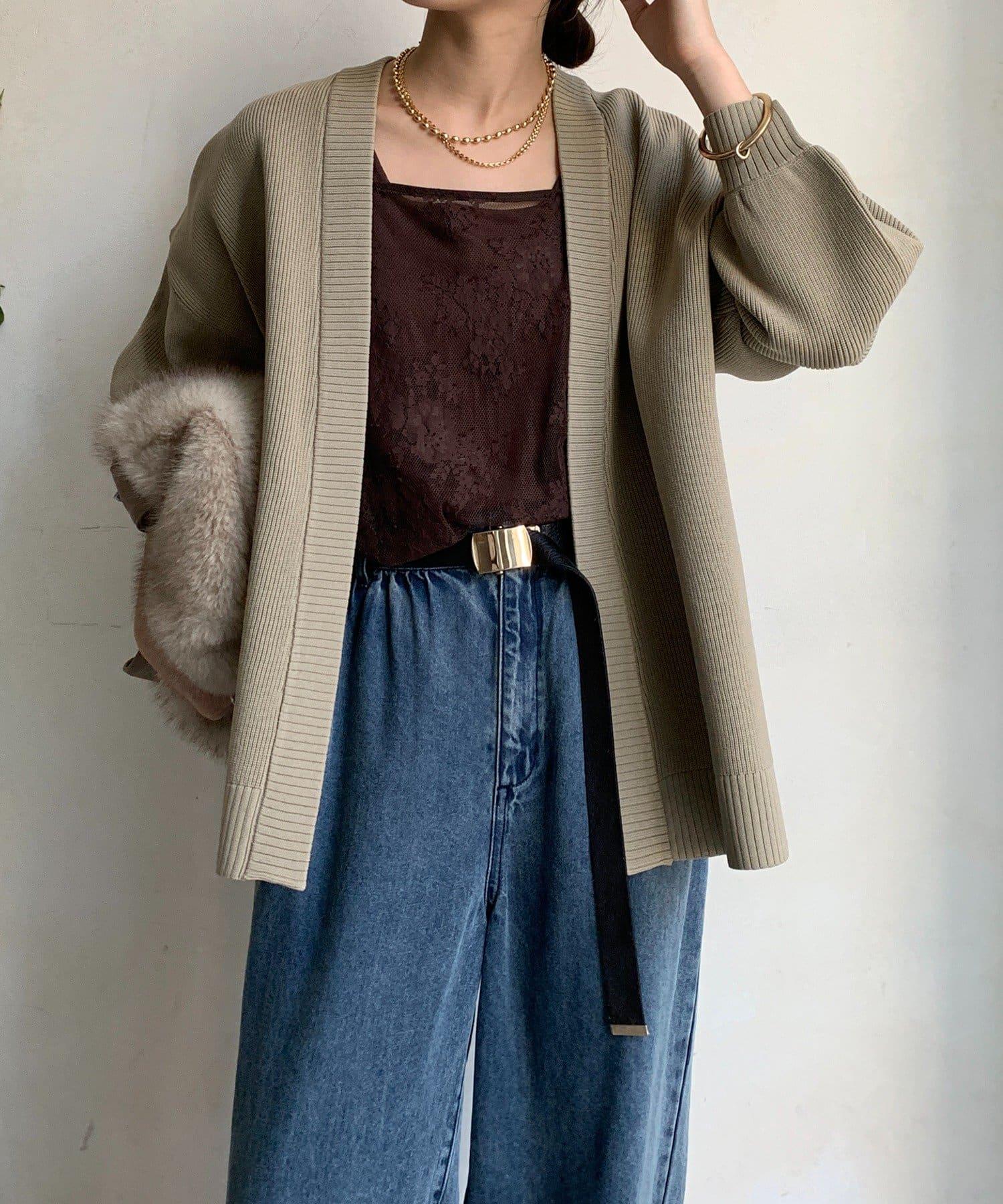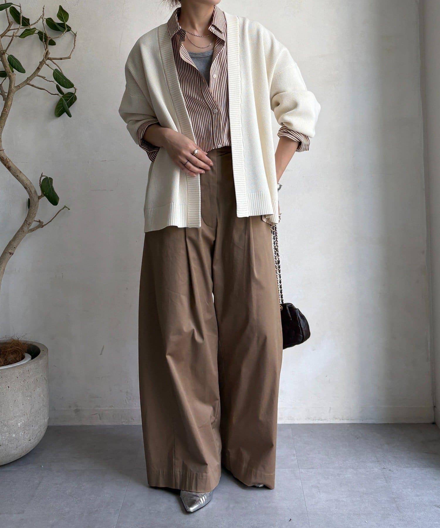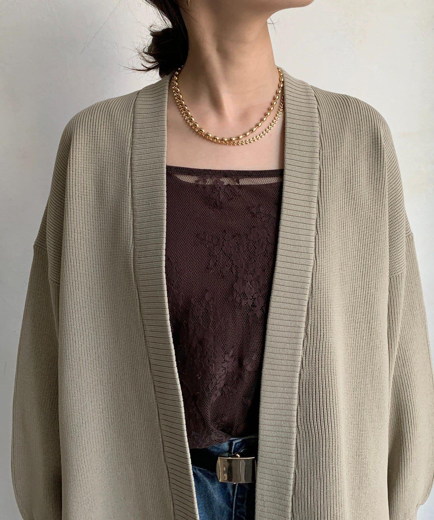 這款 "彈力紗單層羅紋開衫 "只需快速穿上,就能給人留下精緻的印象。
