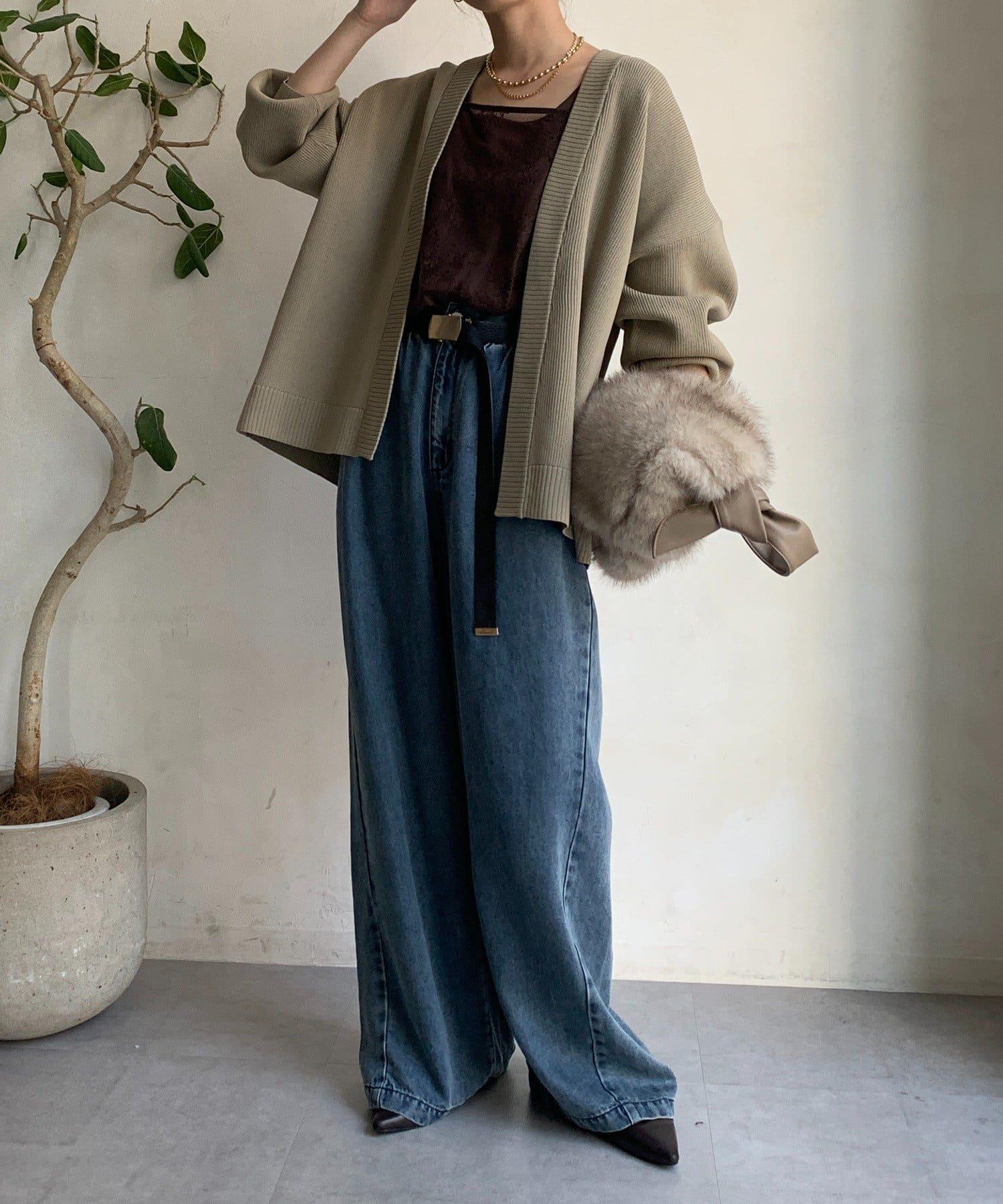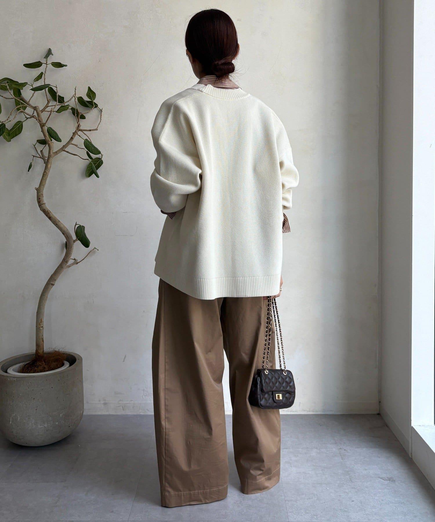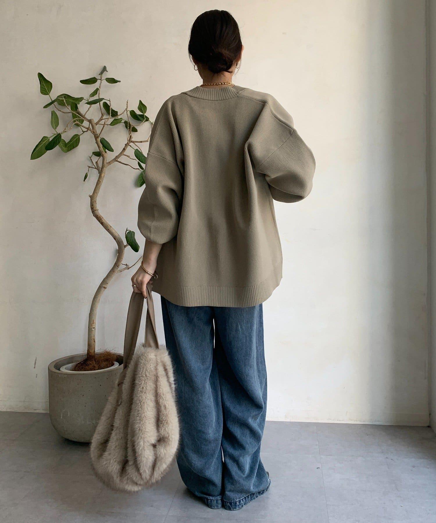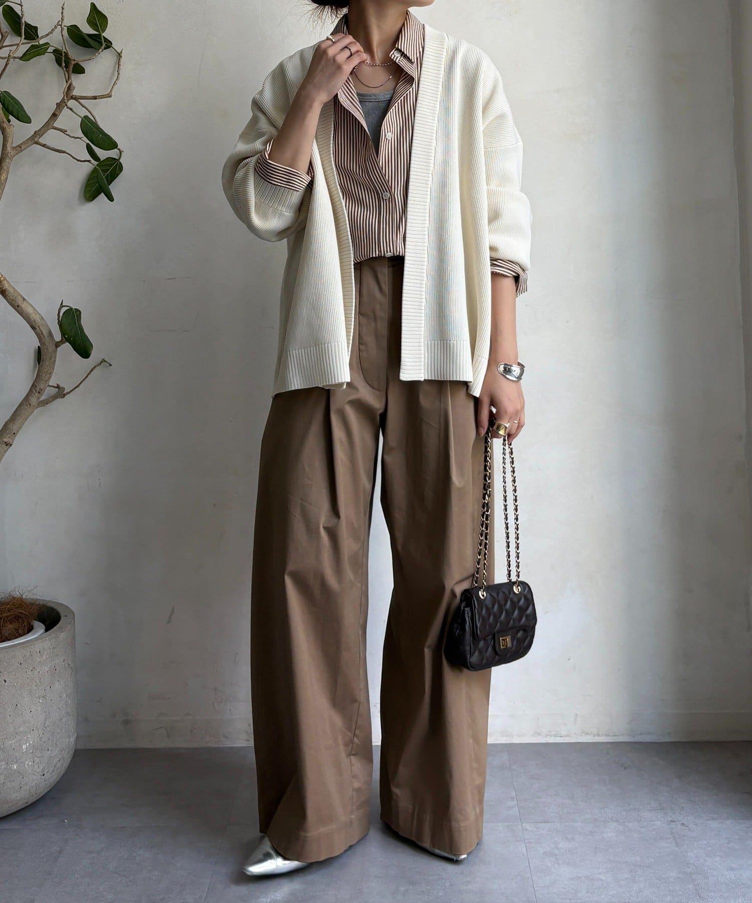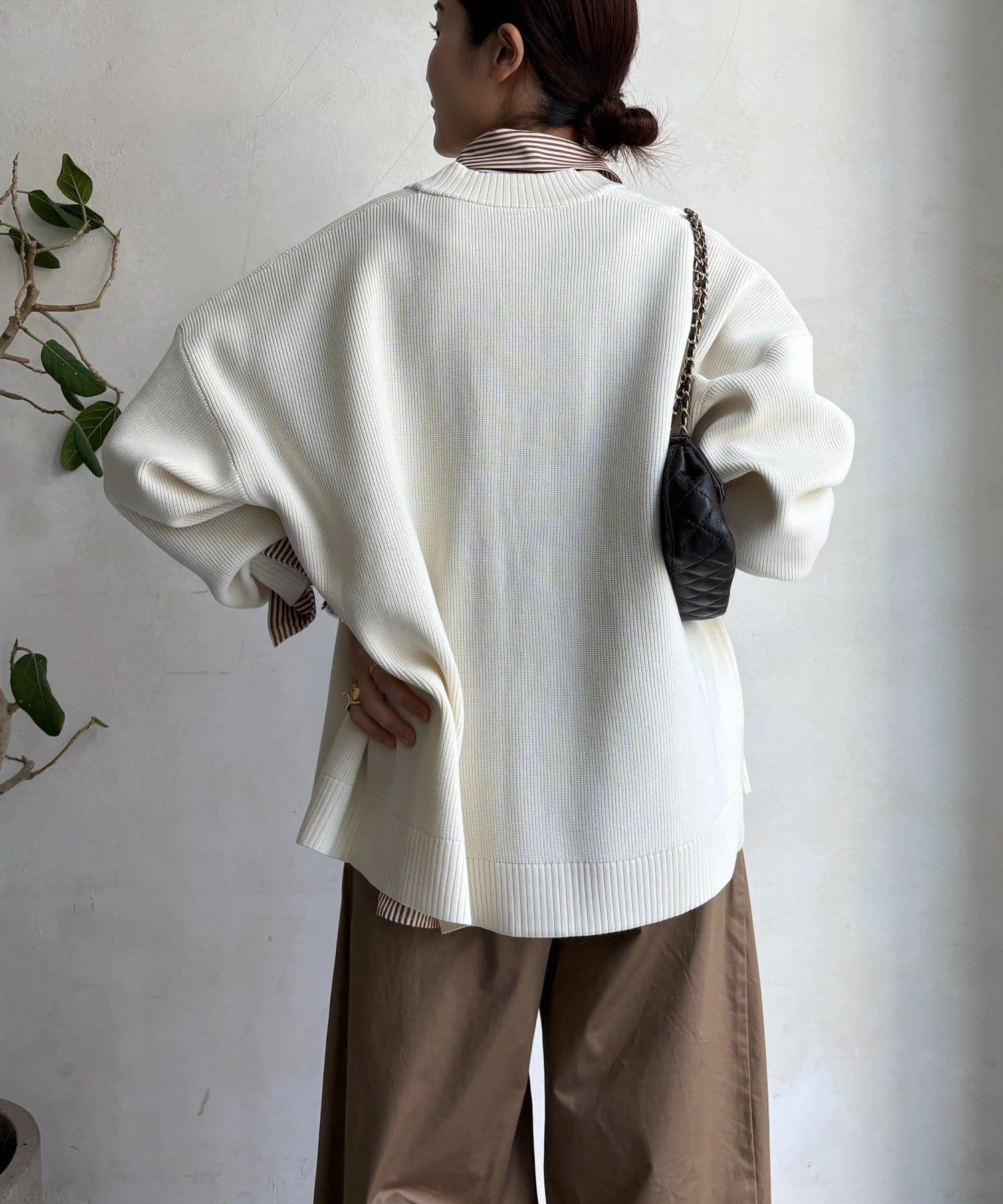 這款 "彈力紗單層羅紋開衫 "只需快速穿上,就能給人留下精緻的印象。