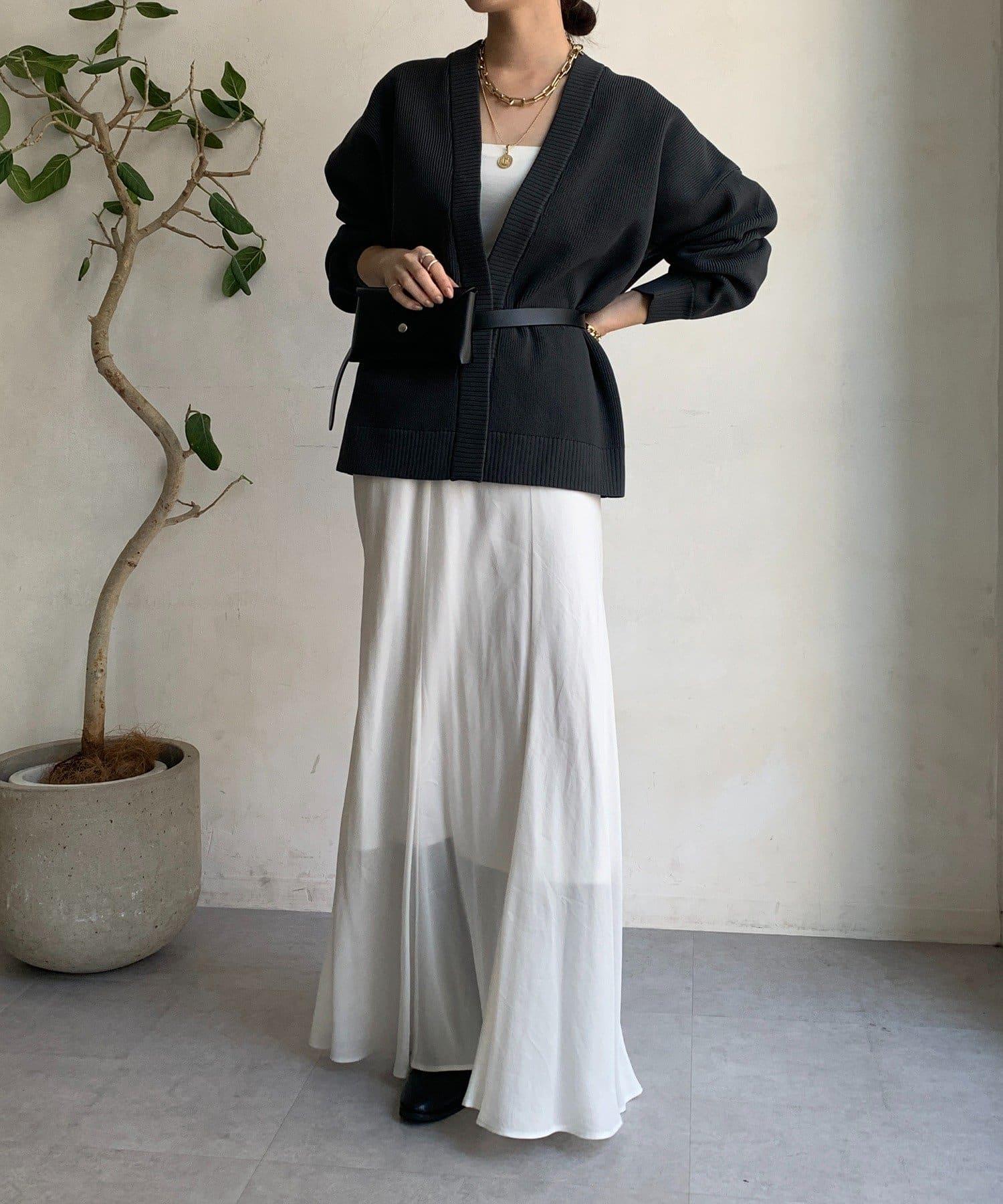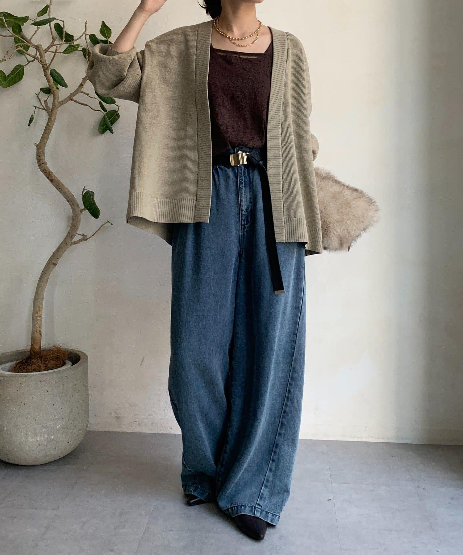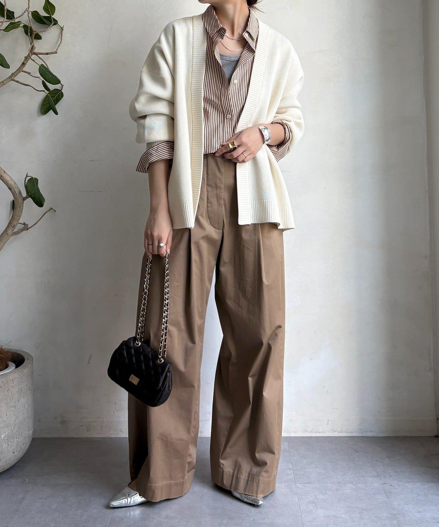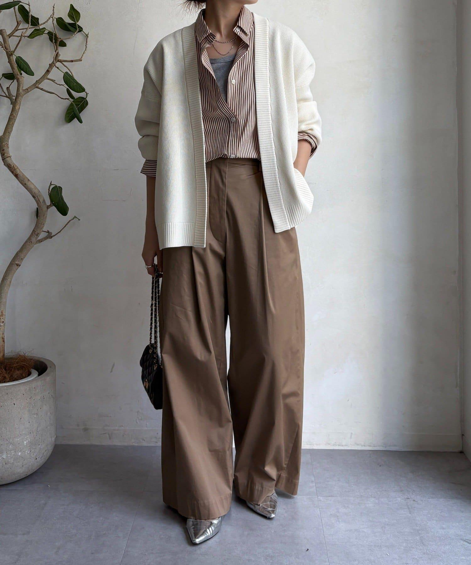 這款 "彈力紗單層羅紋開衫 "只需快速穿上,就能給人留下精緻的印象。