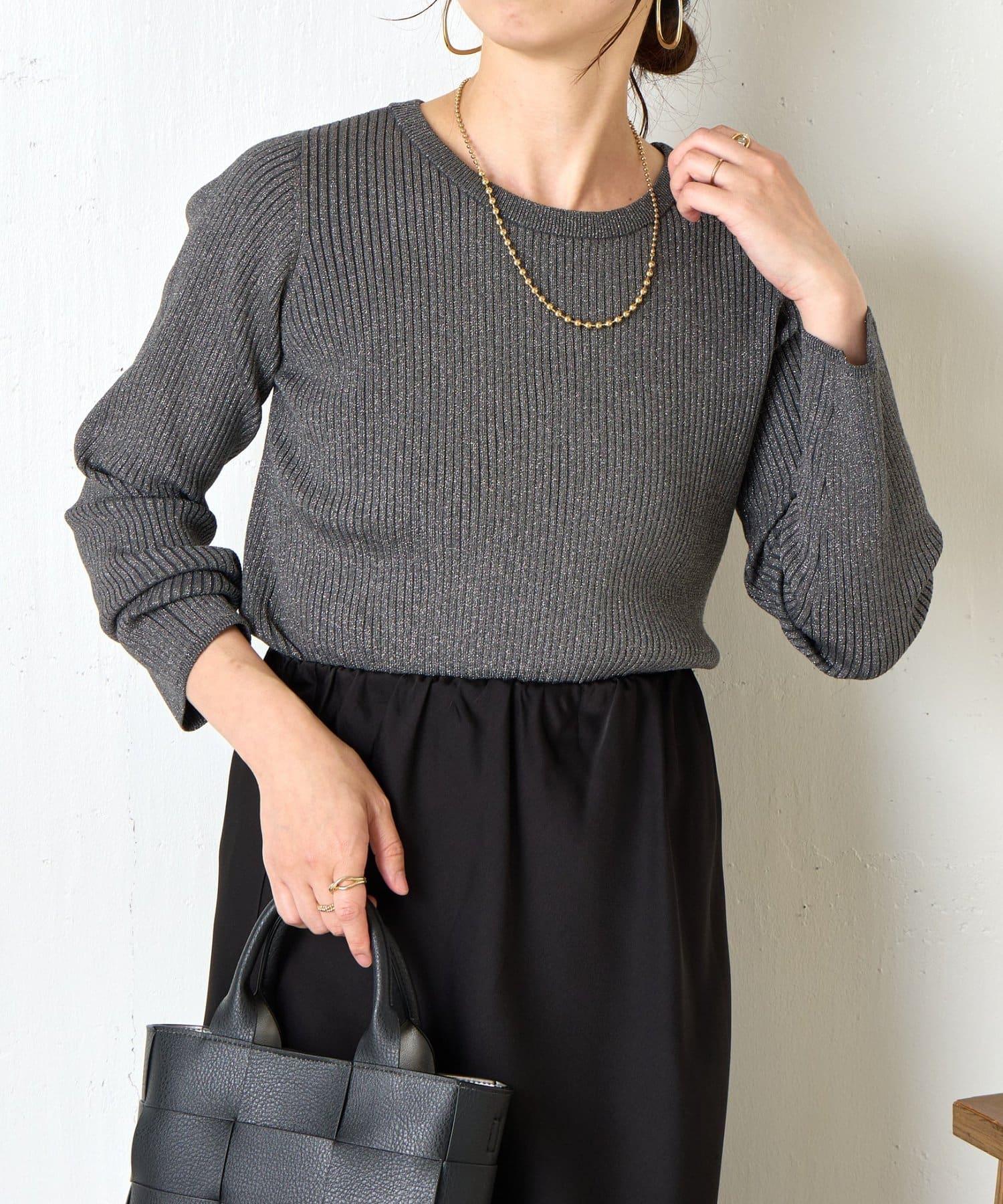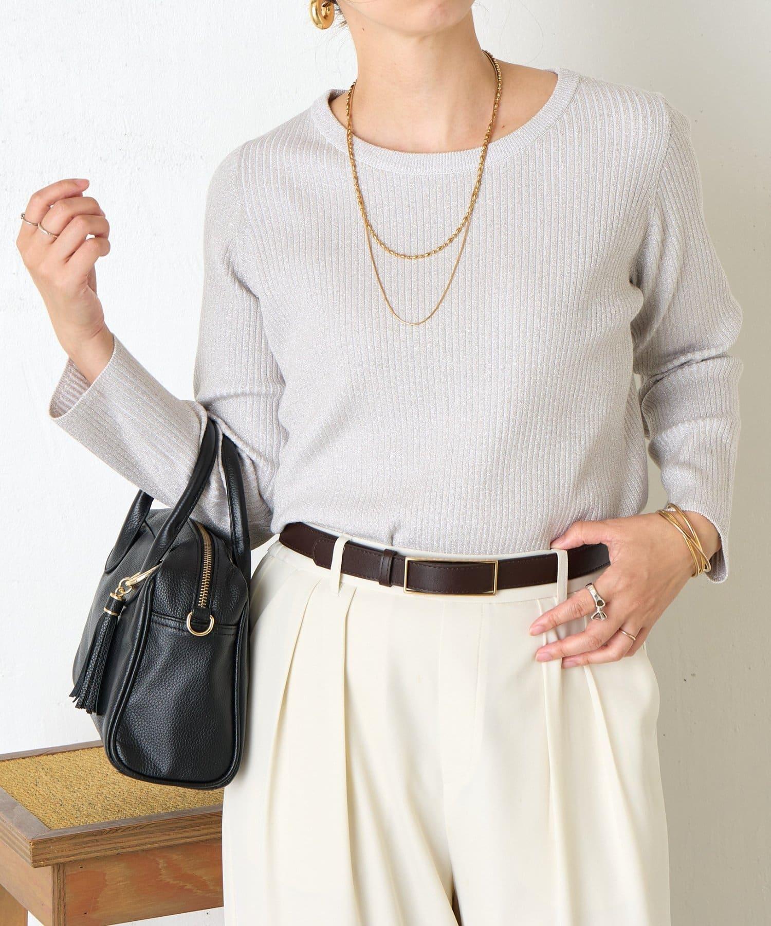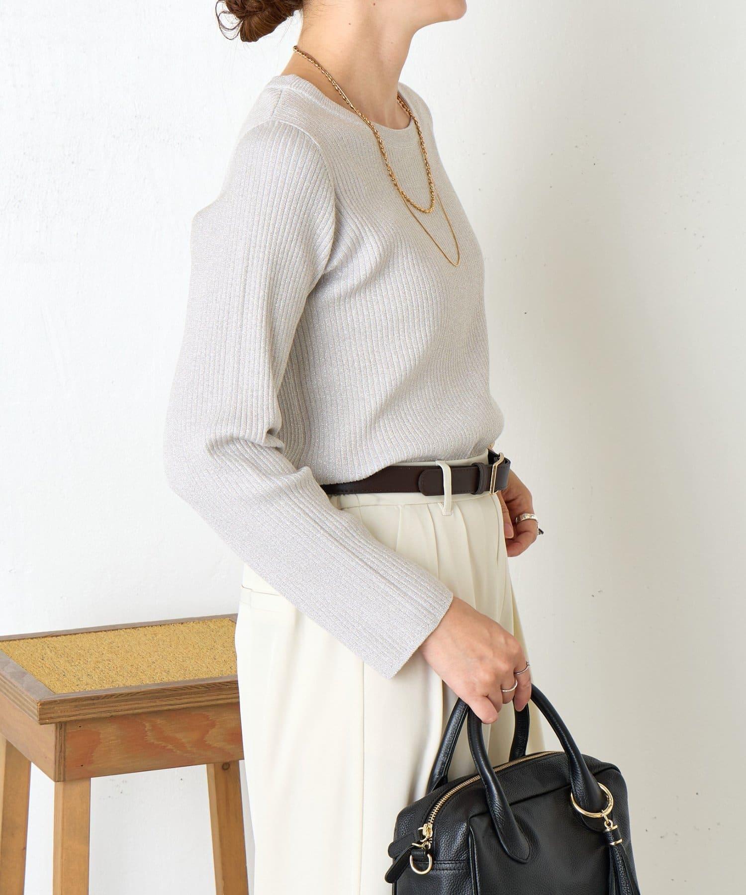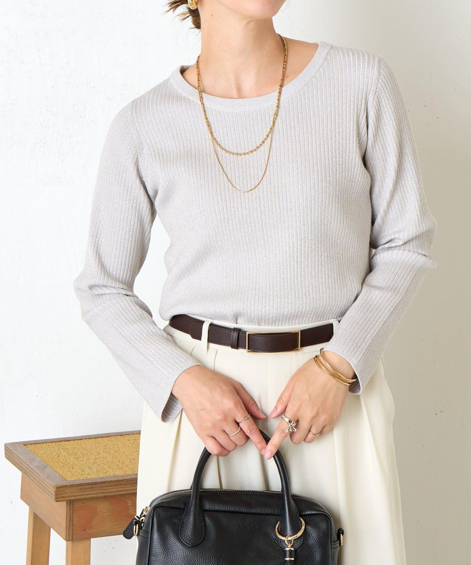 優雅的羅紋針織上衣,帶有彈性和精緻的交織薄片。