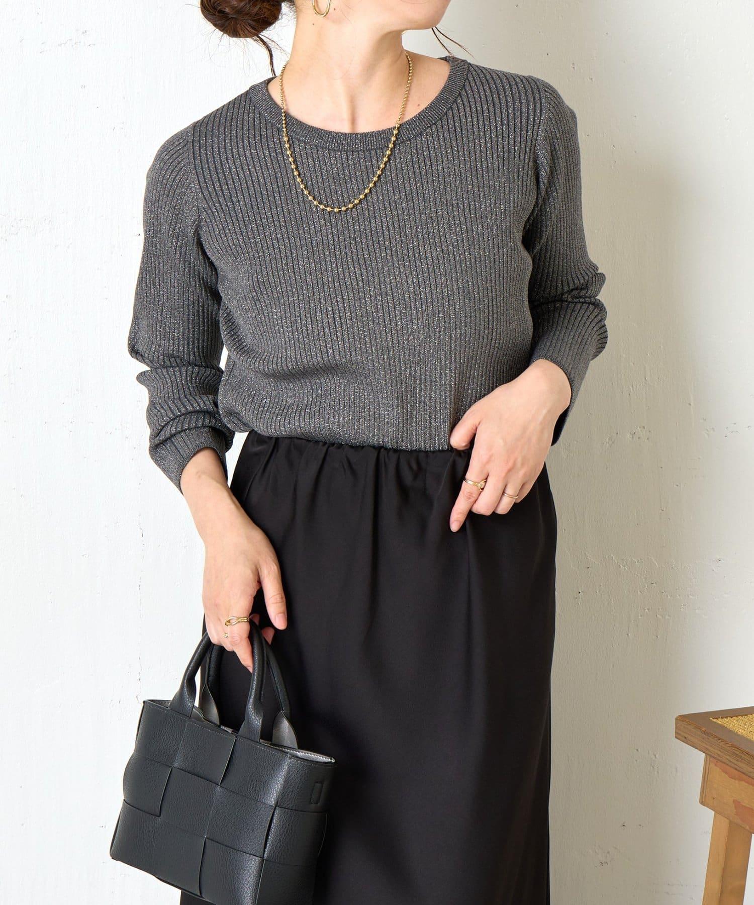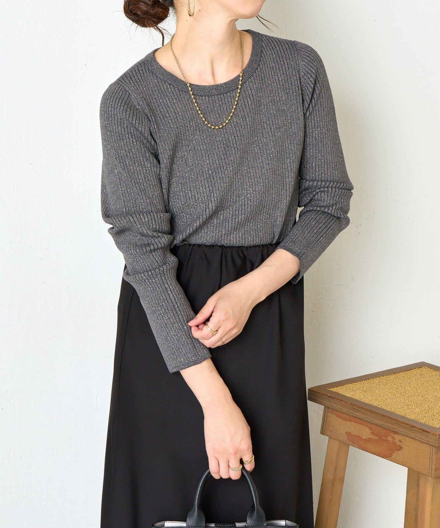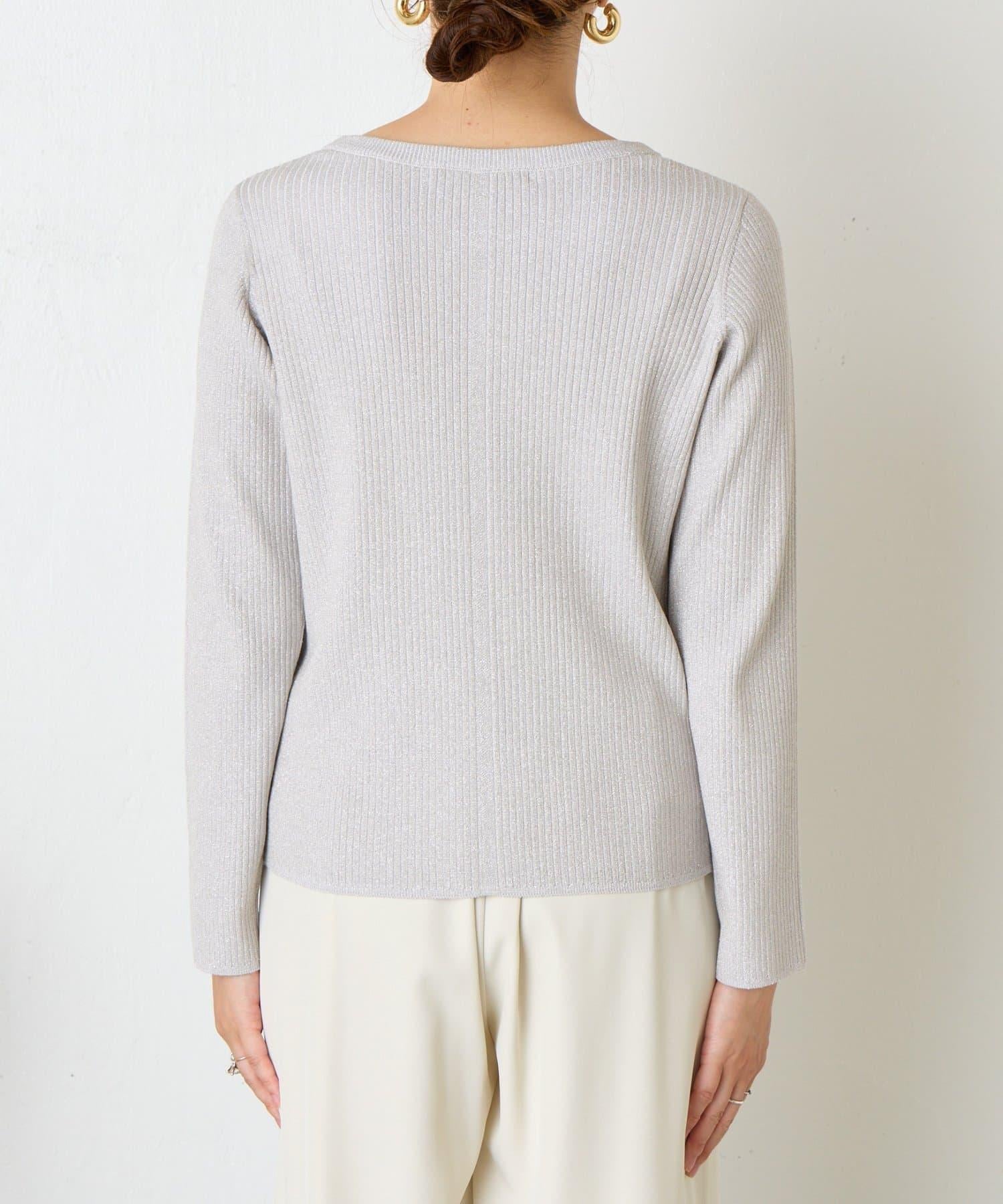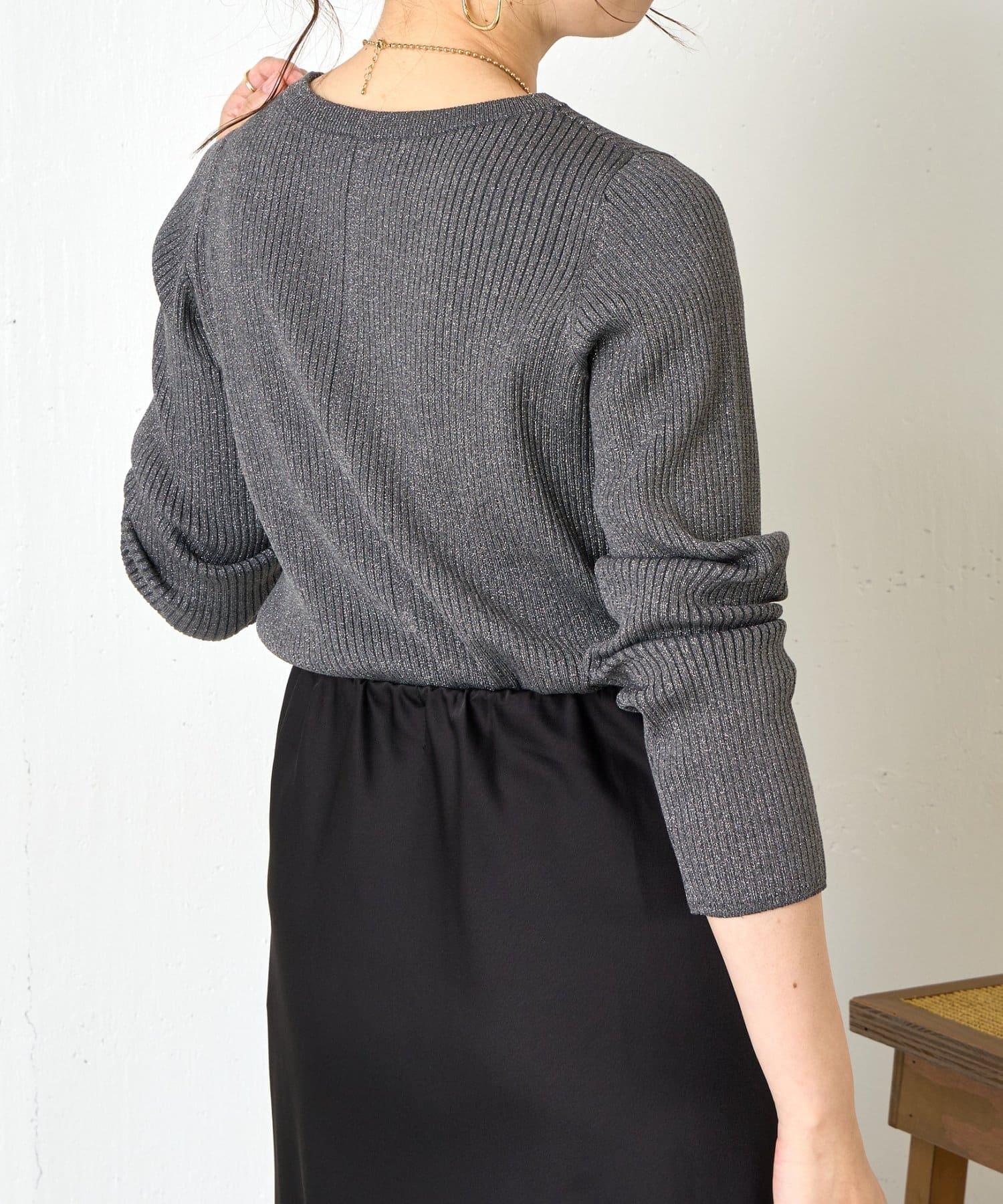 優雅的羅紋針織上衣,帶有彈性和精緻的交織薄片。