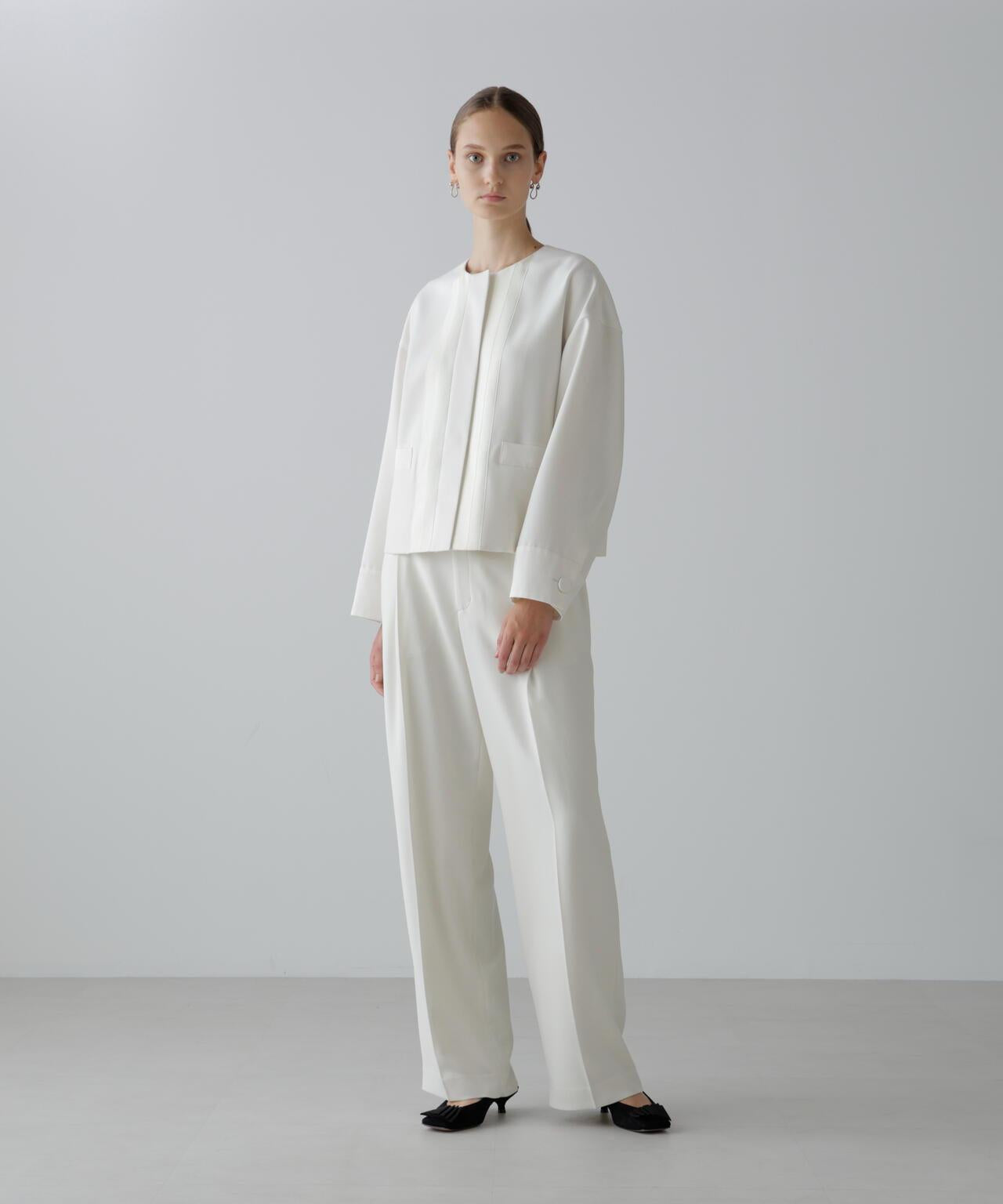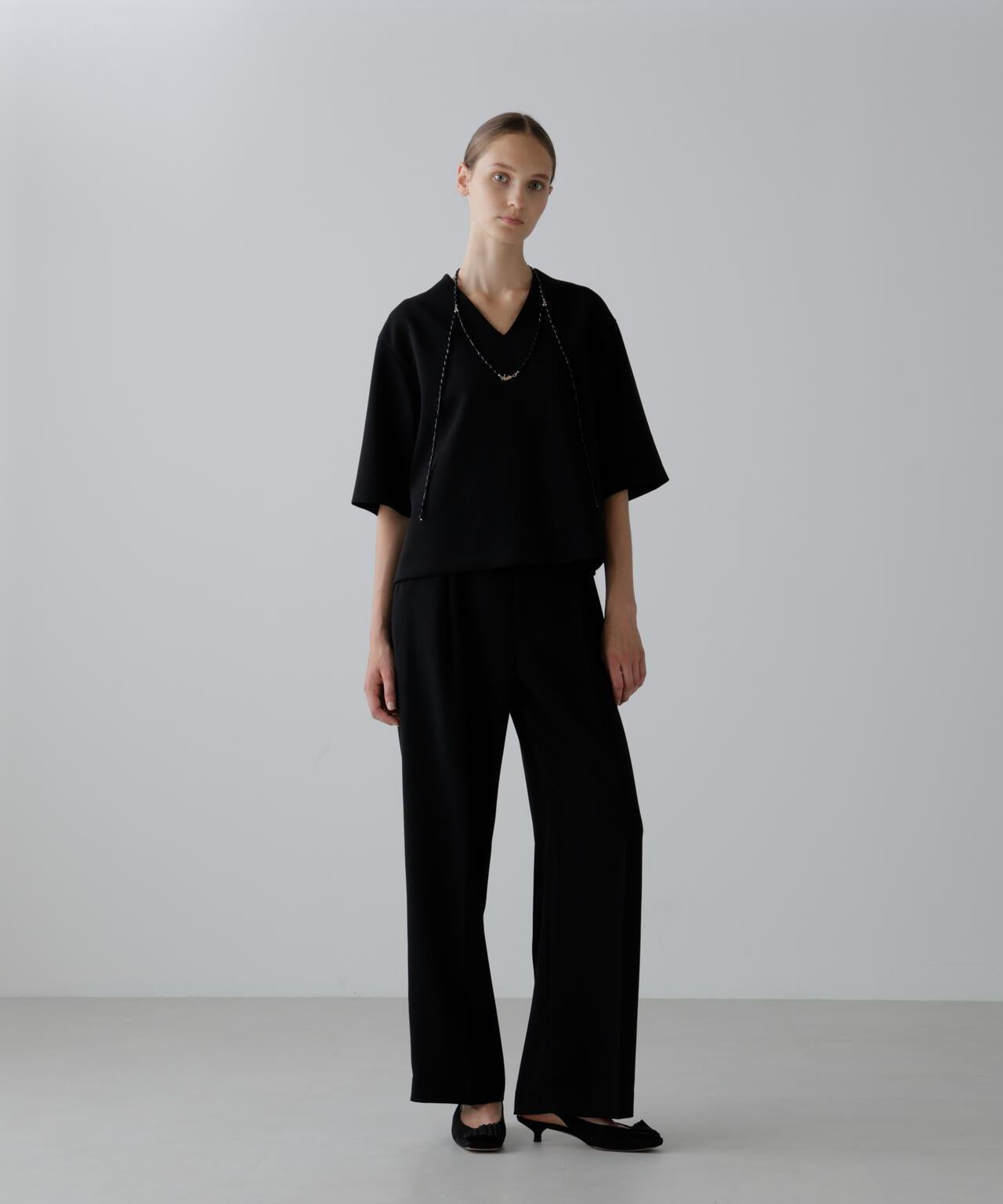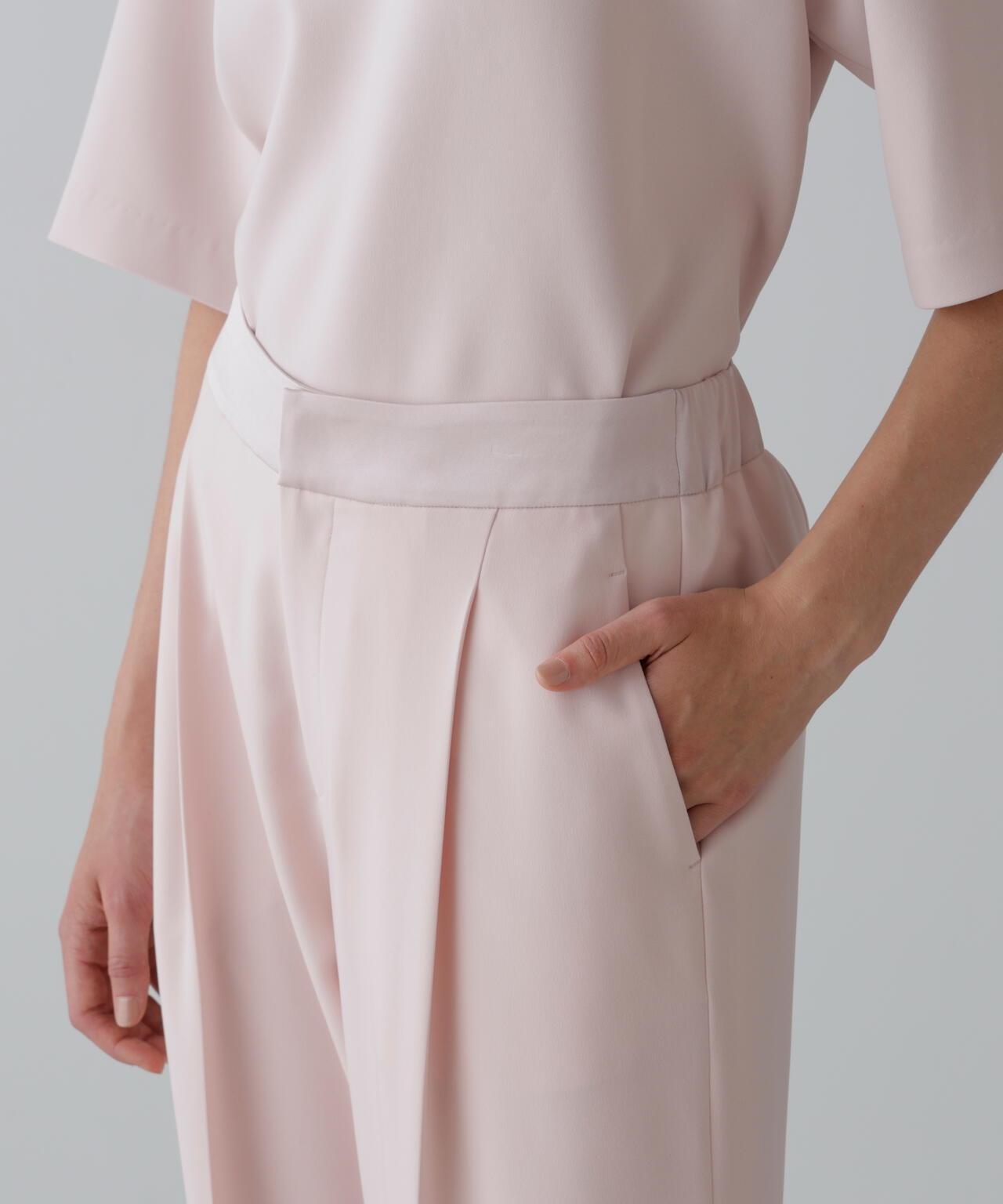 這款長褲採用彈力混紡合成纖維面料製成,具有柔軟的下墜感。長褲採用厚薄適中的直筒剪裁,後部有鬆緊腰帶。採用彈力多臂編織面料剪裁,具有高捻紗特有的輕盈觸感和柔軟度。
