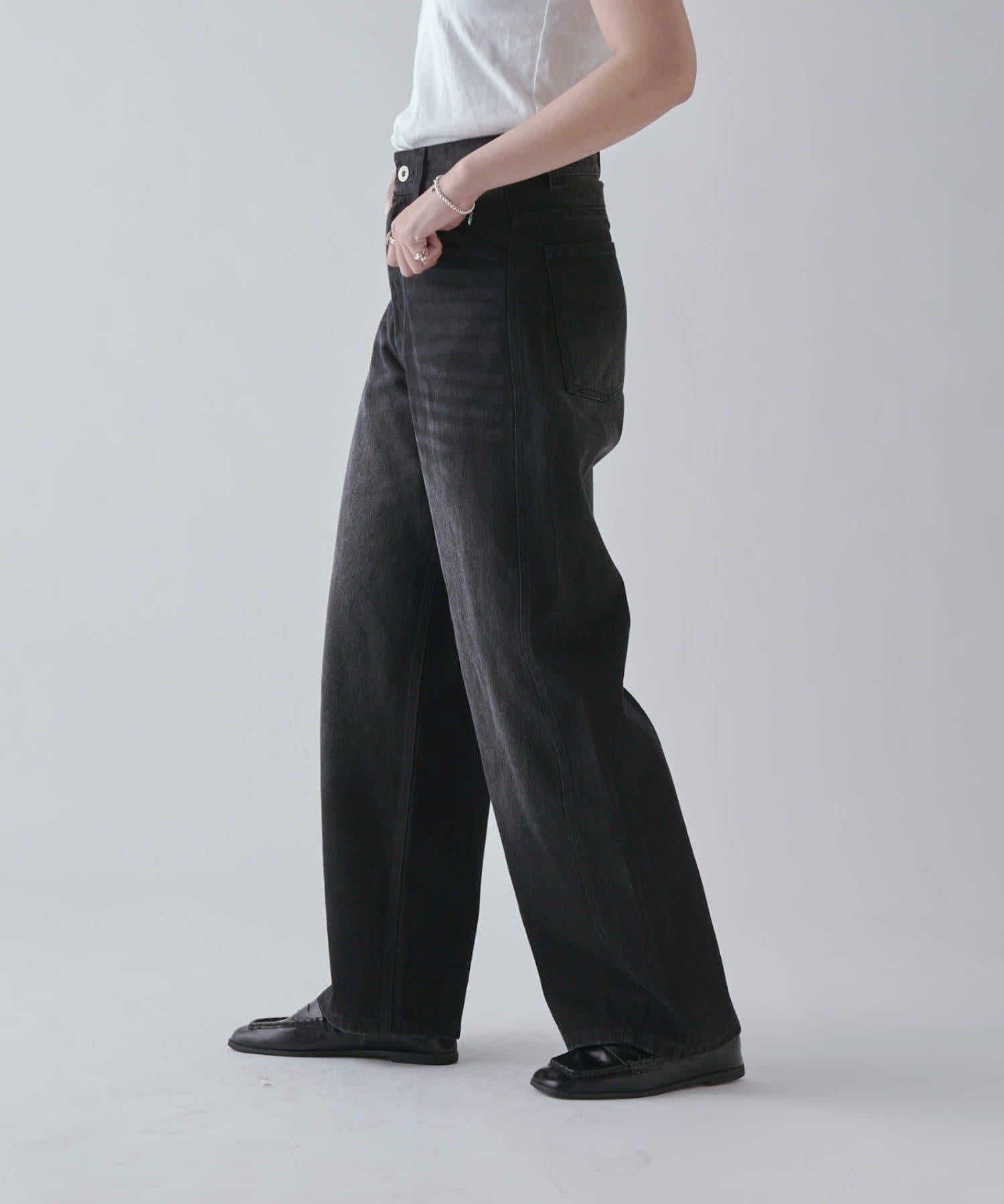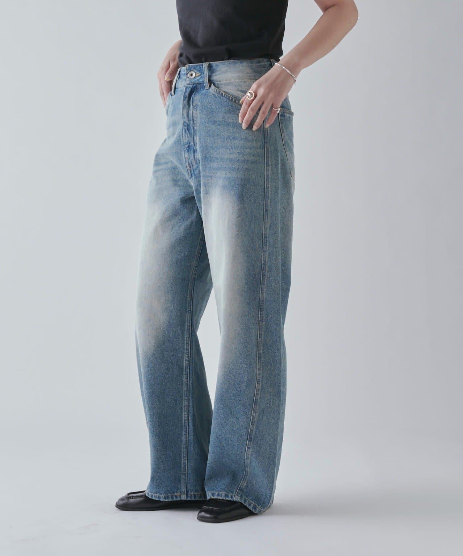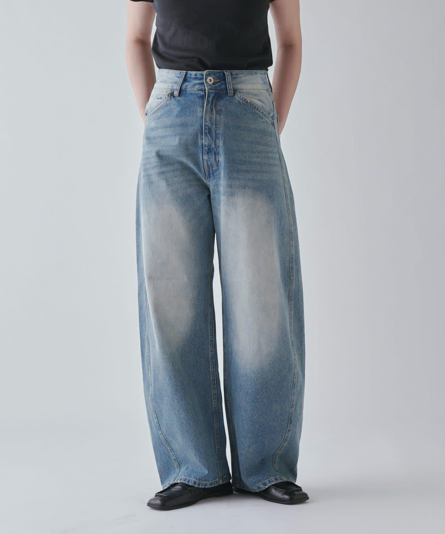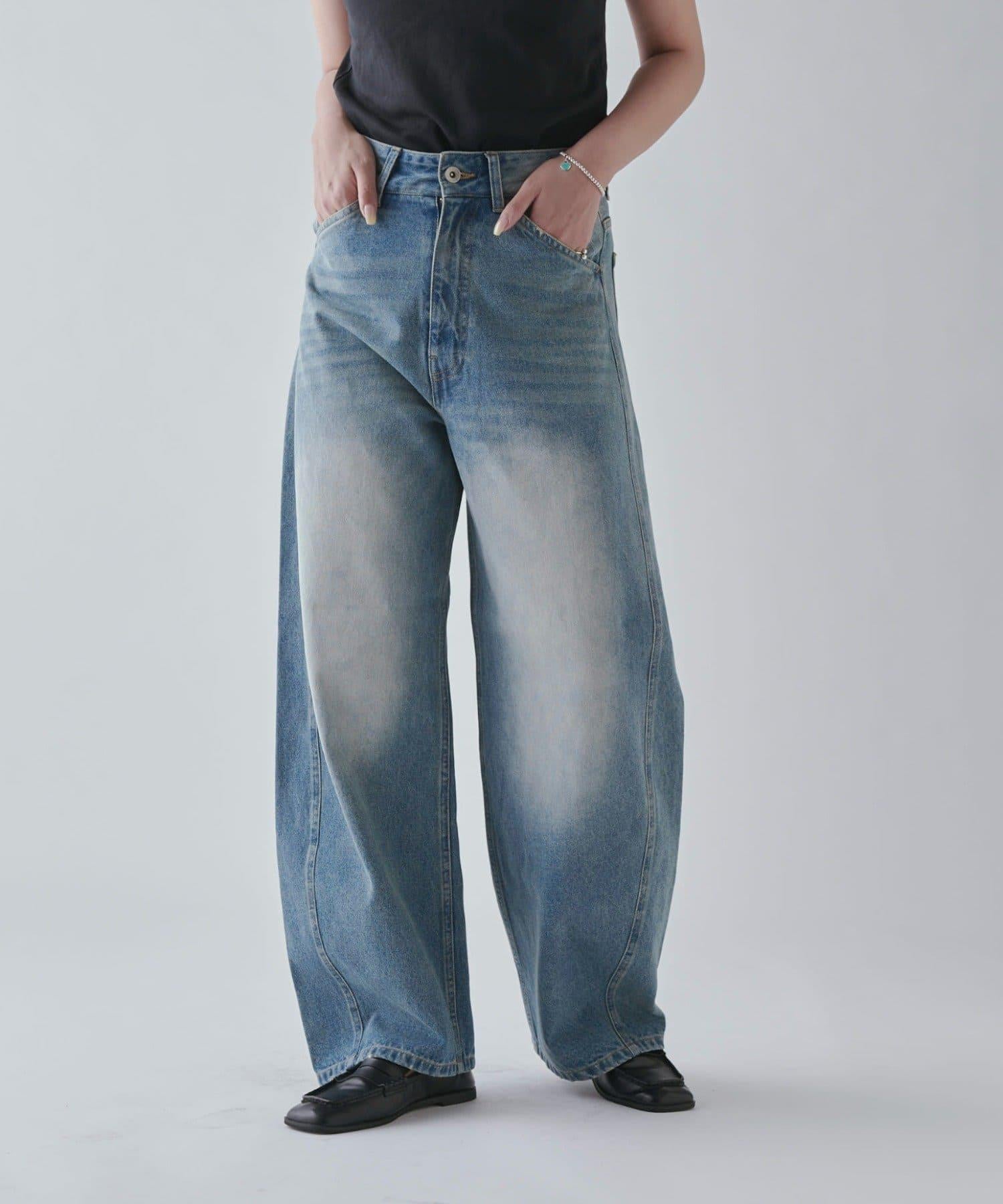 立體弧線設計的牛仔長褲,給人一種舒適的感覺。