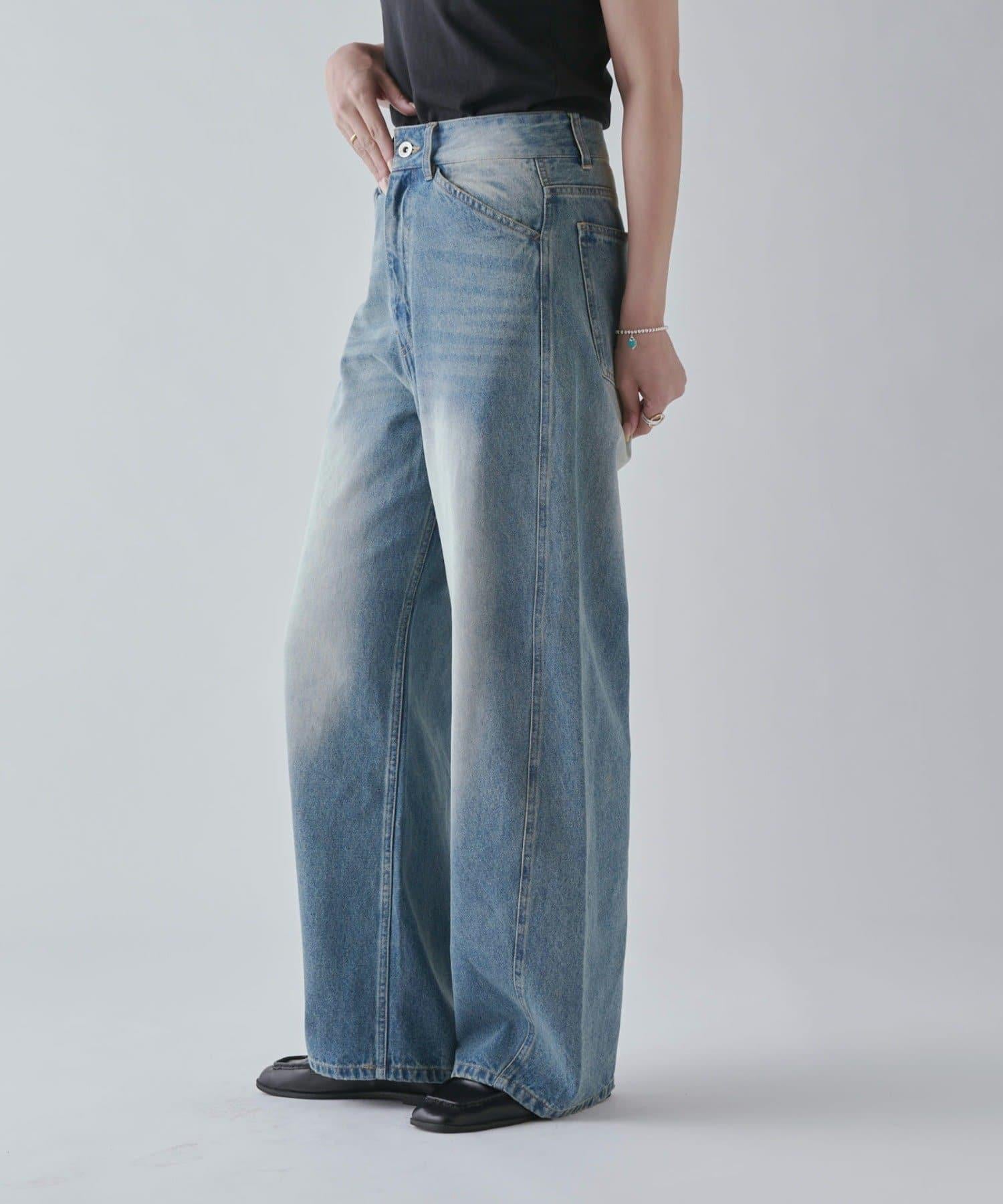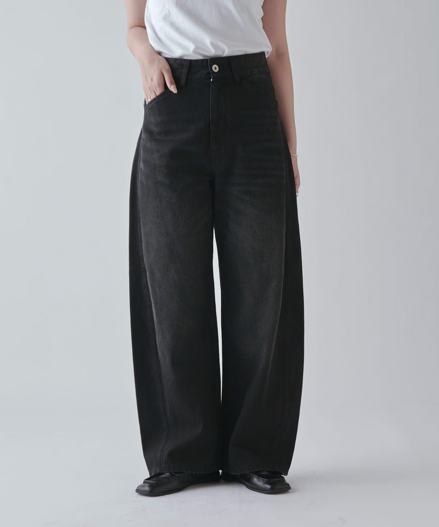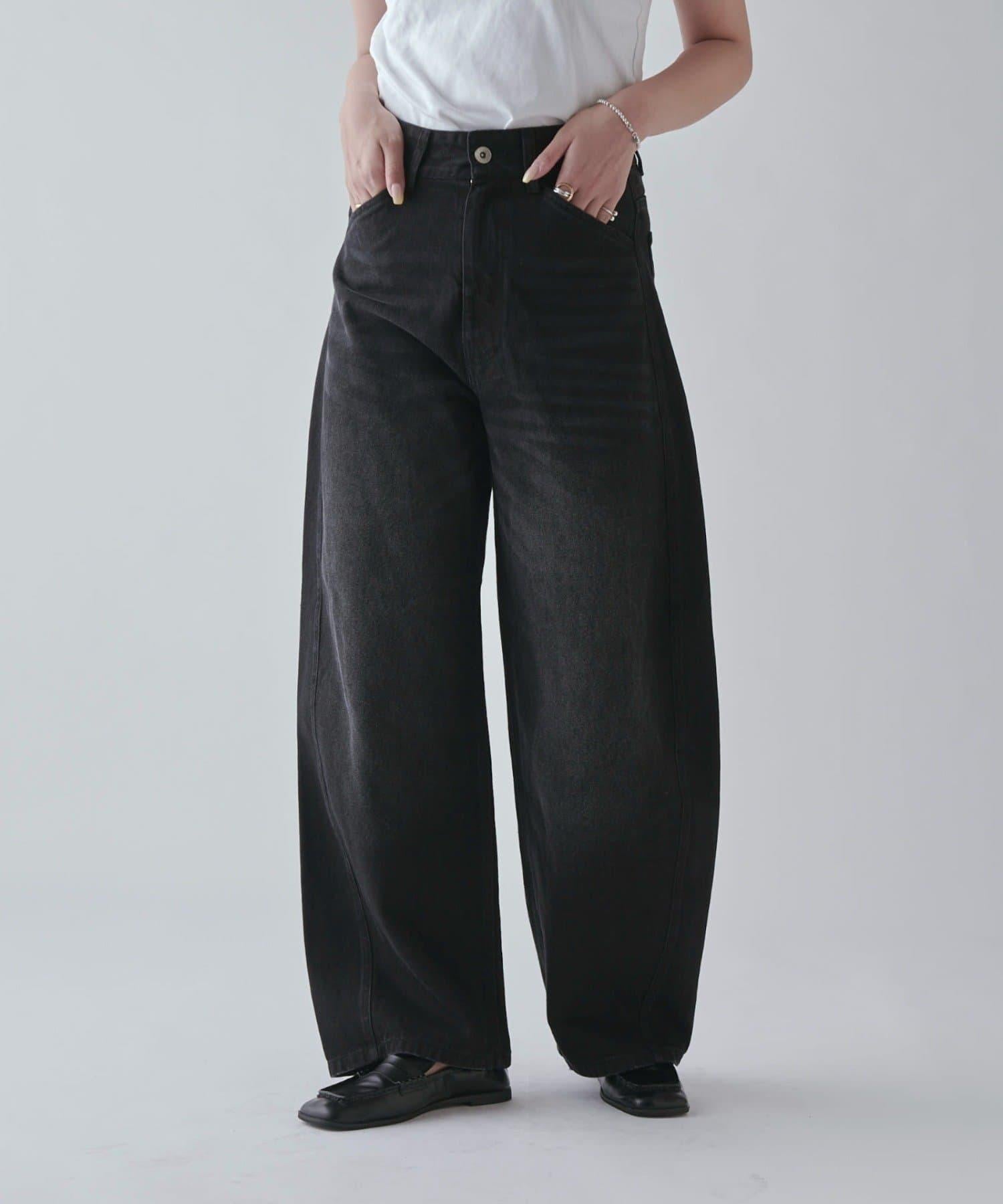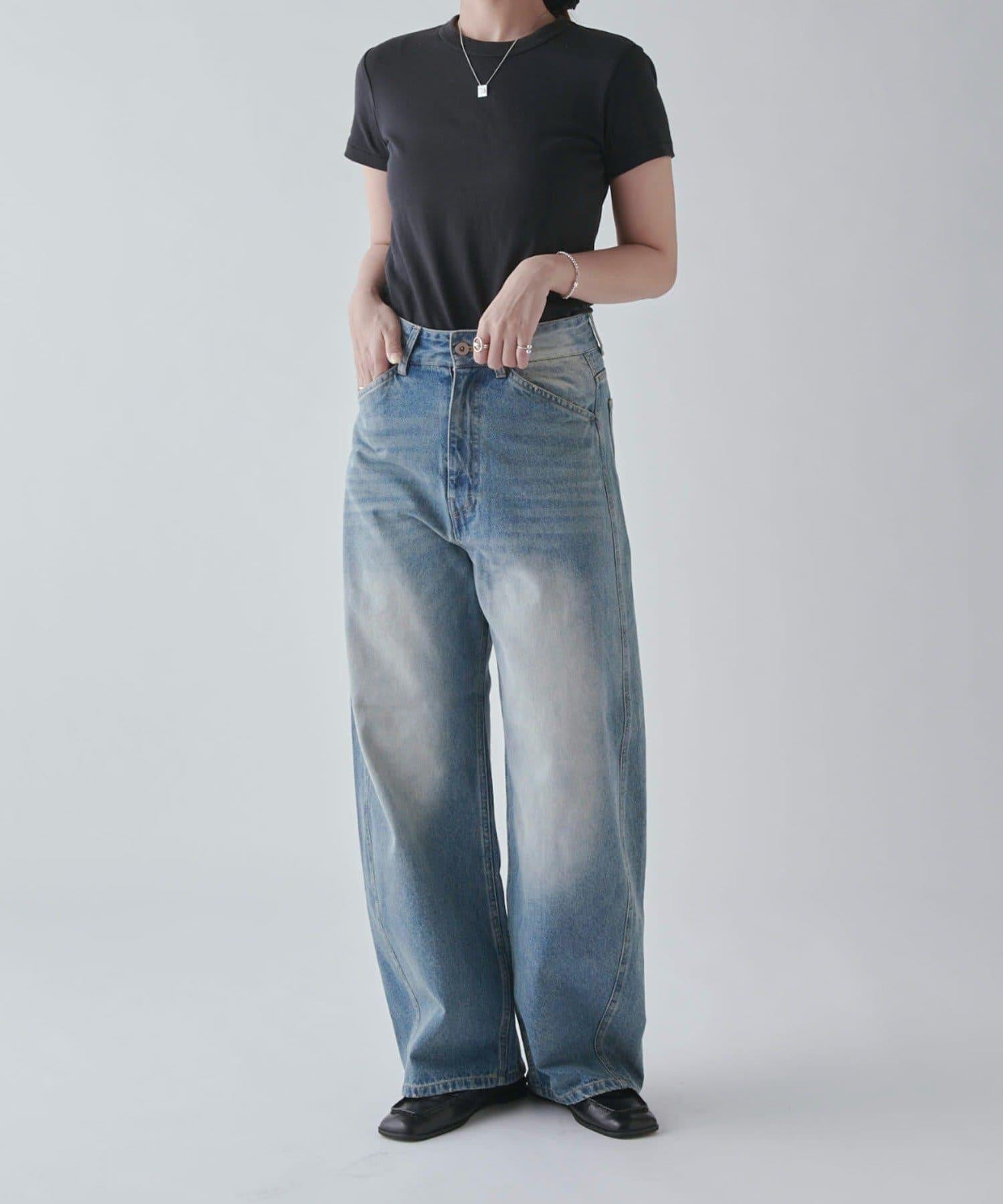 立體弧線設計的牛仔長褲,給人一種舒適的感覺。