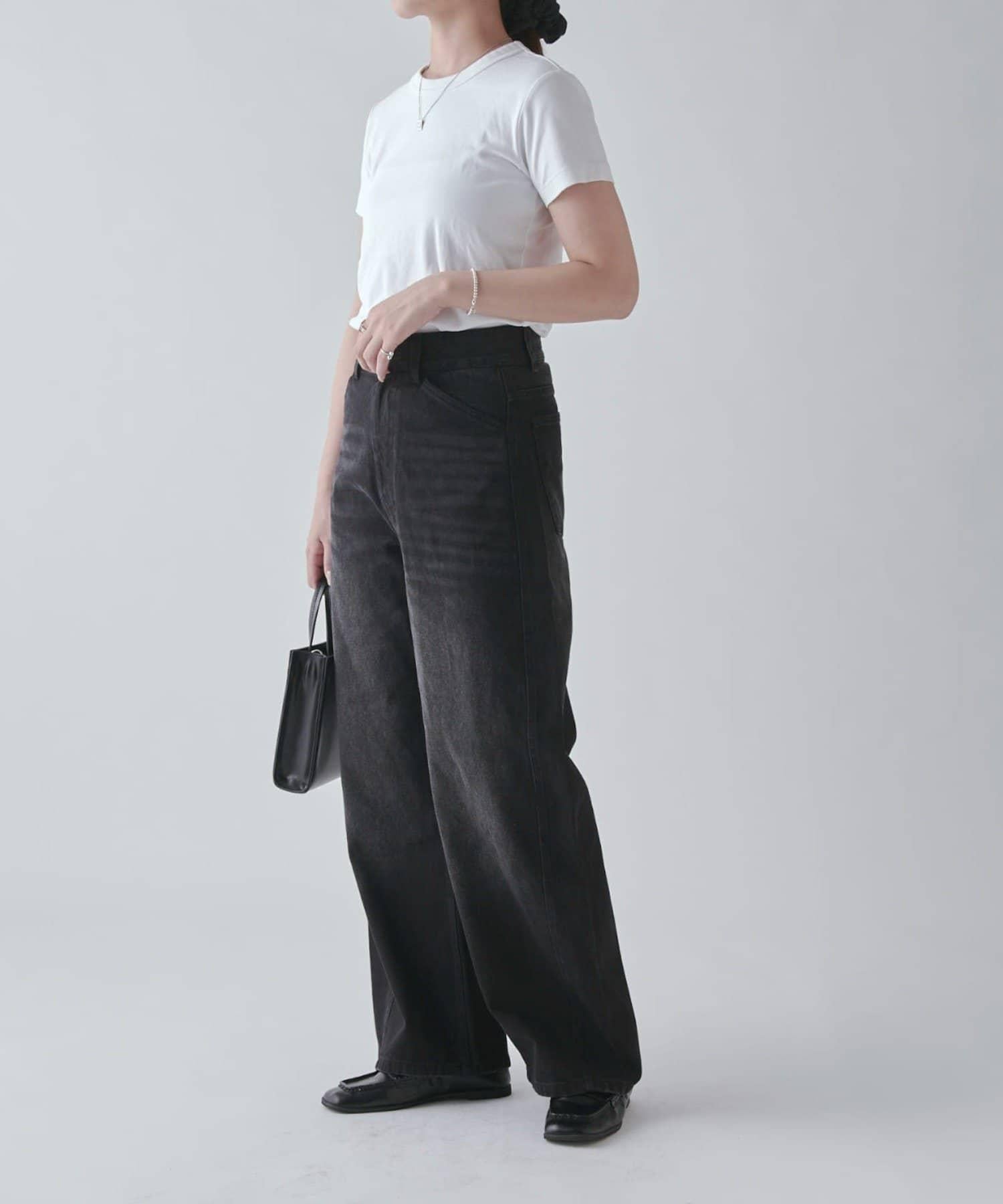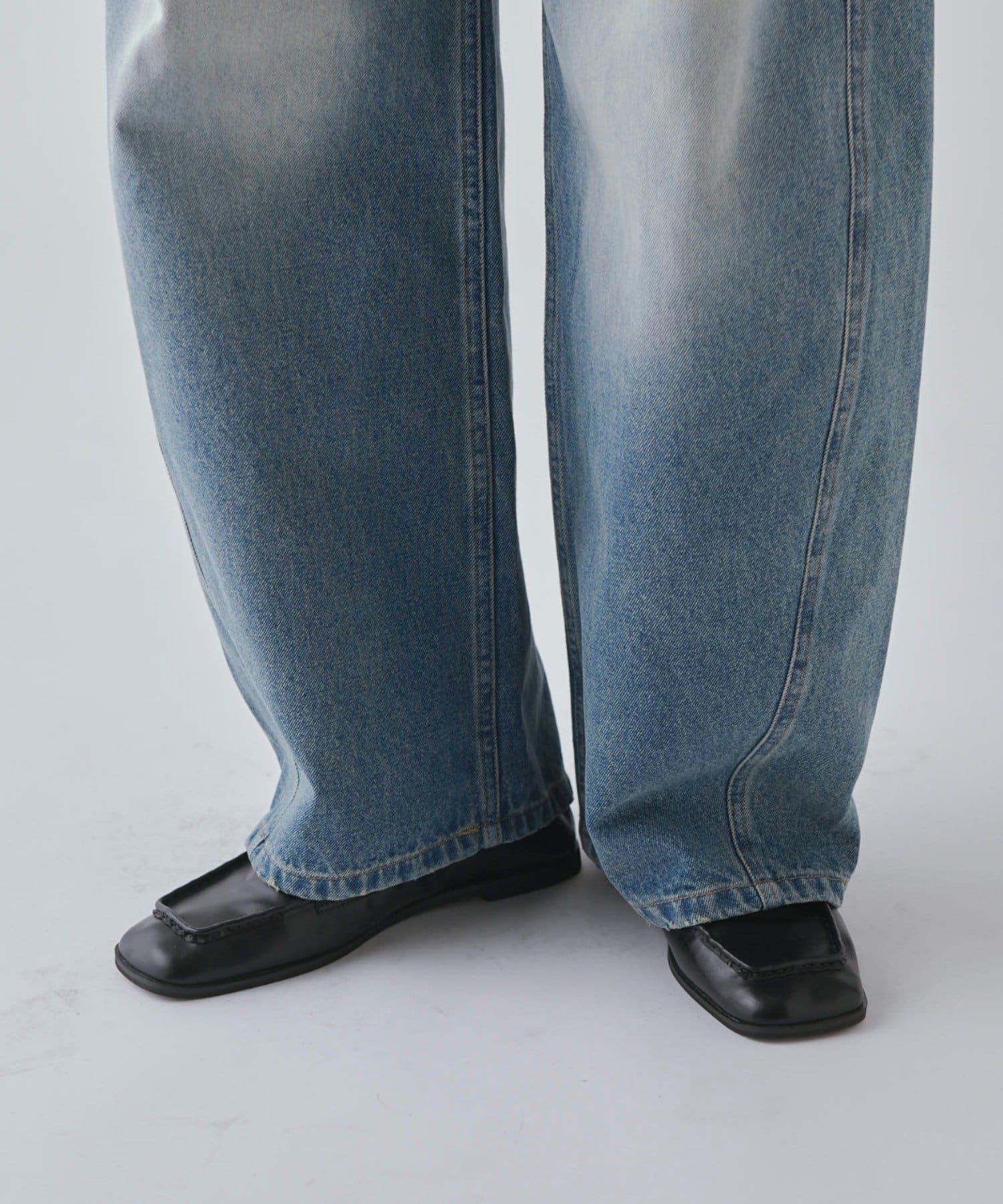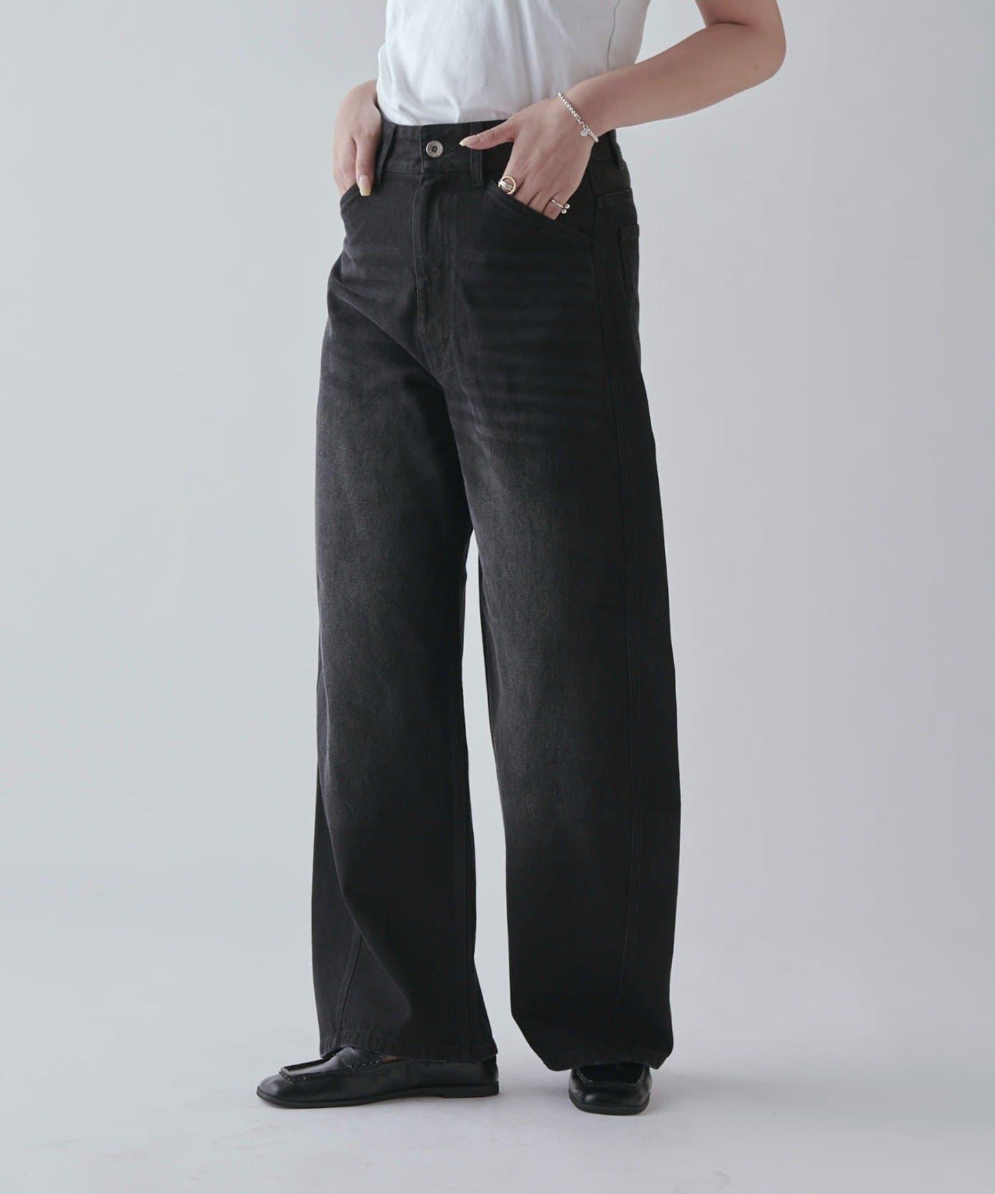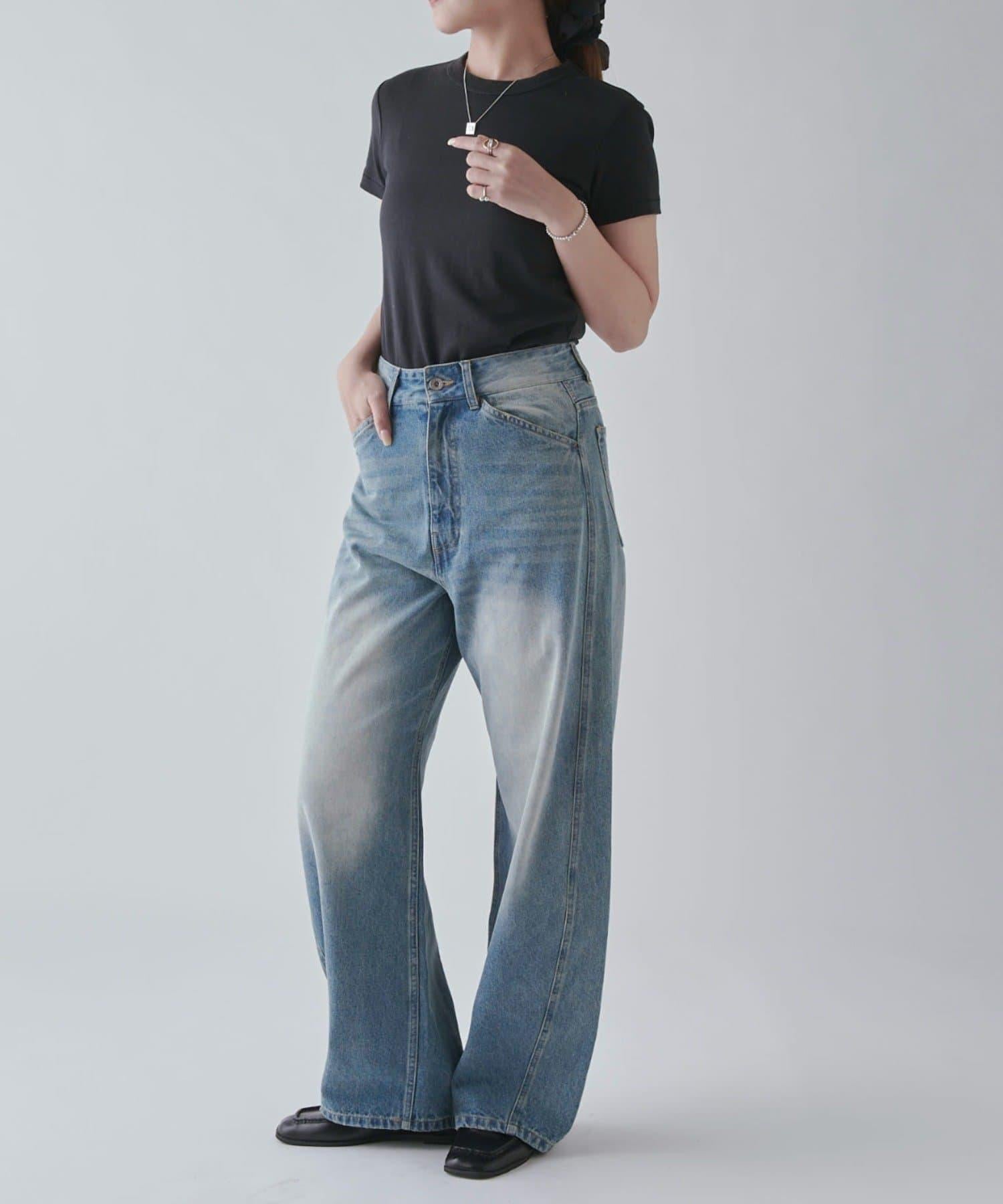 立體弧線設計的牛仔長褲,給人一種舒適的感覺。