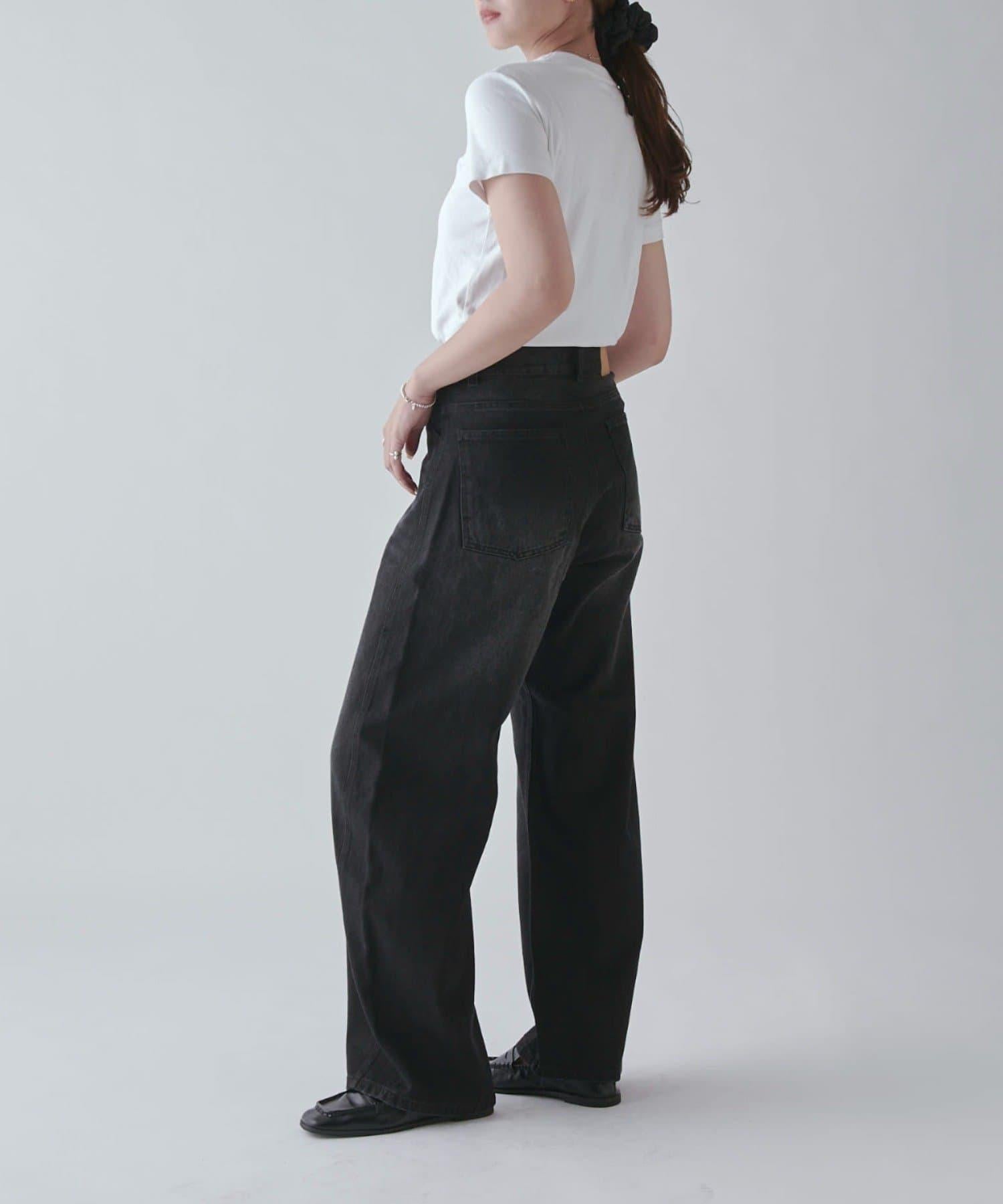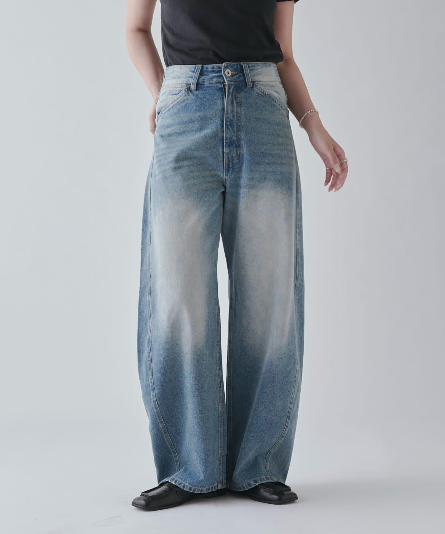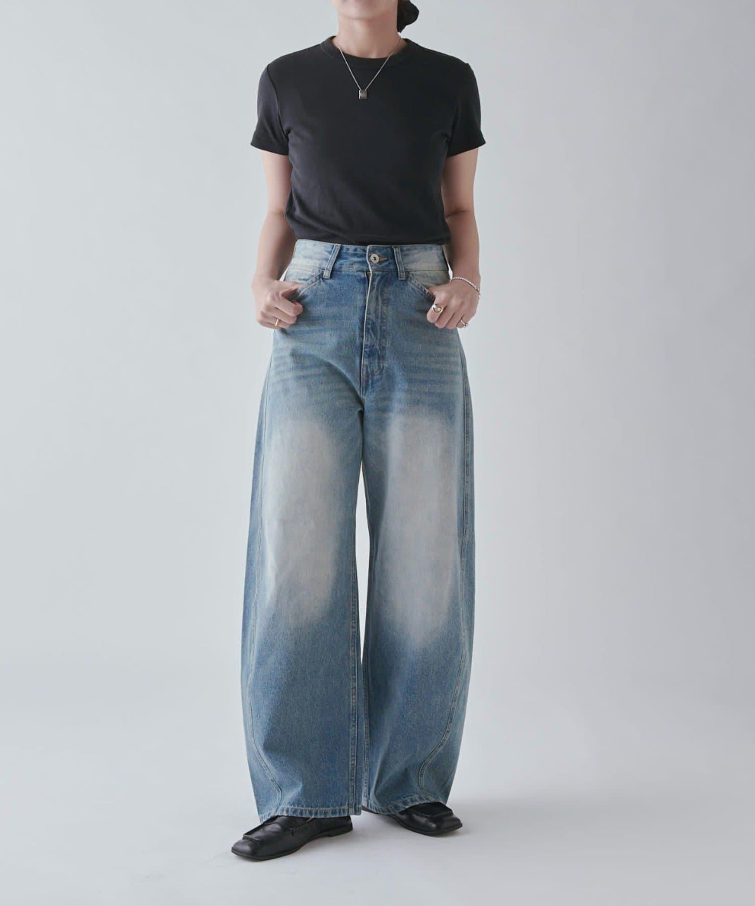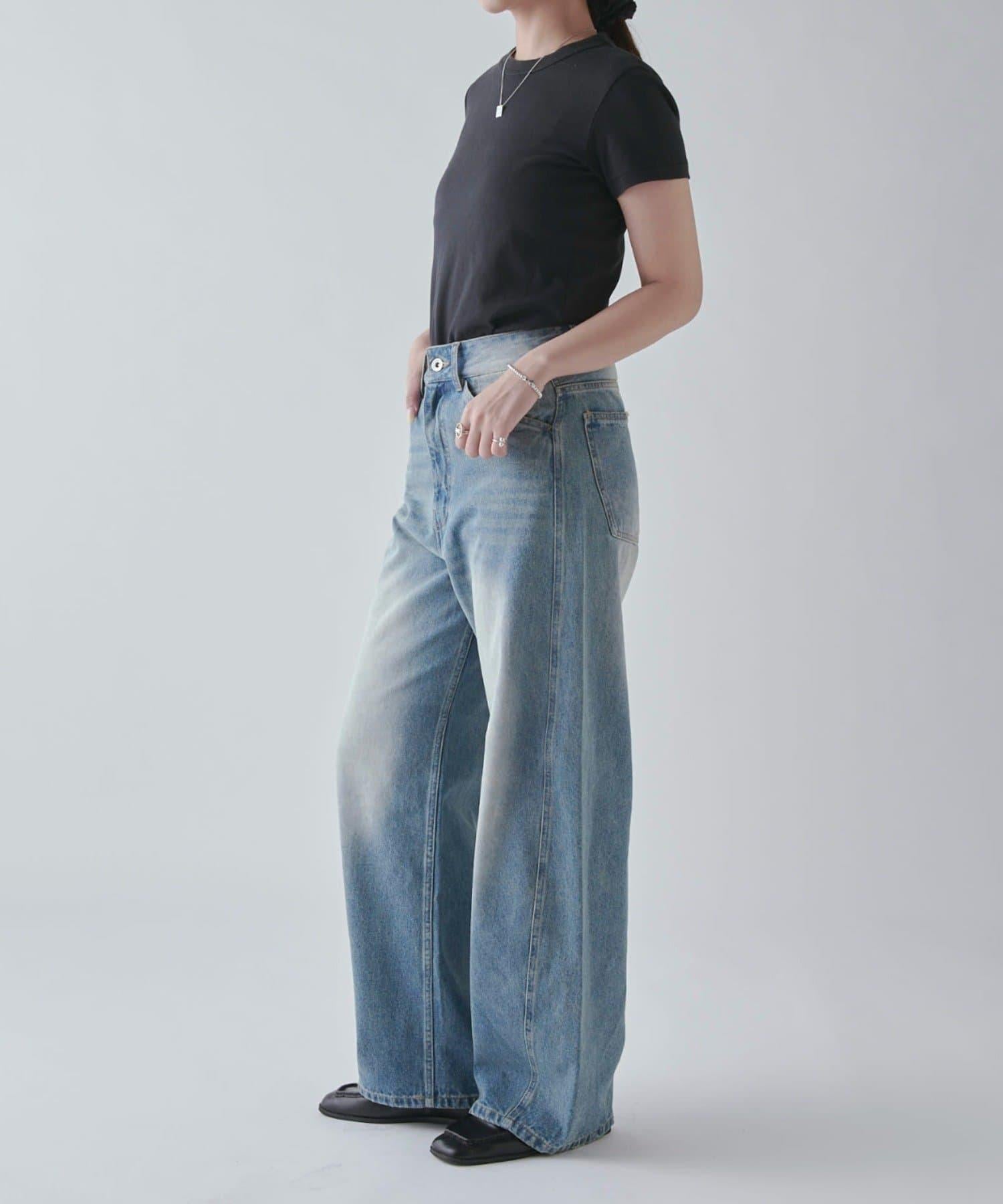 立體弧線設計的牛仔長褲,給人一種舒適的感覺。