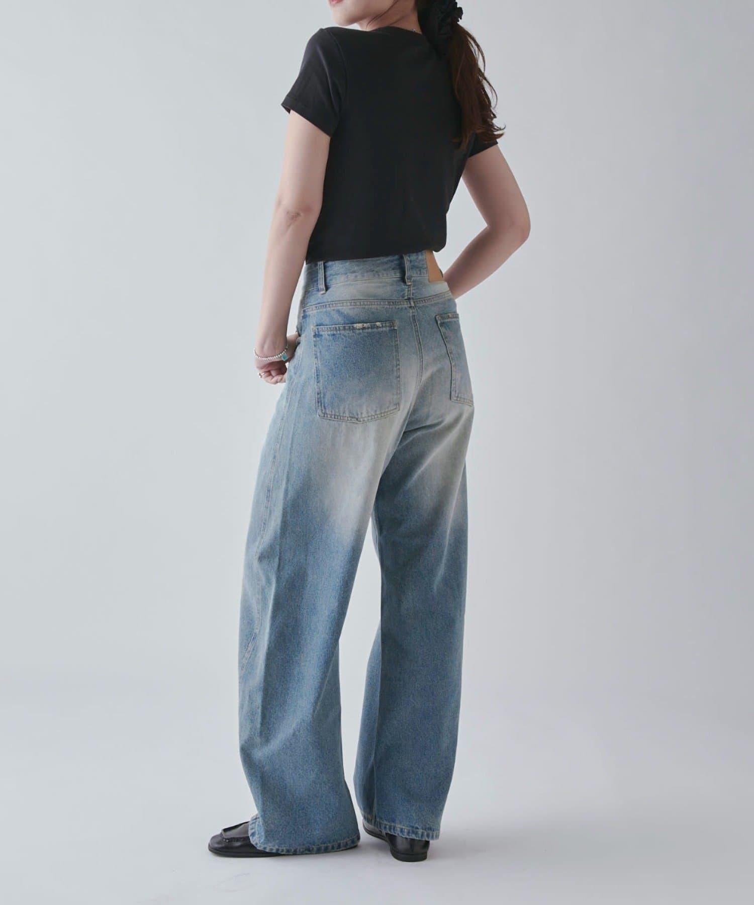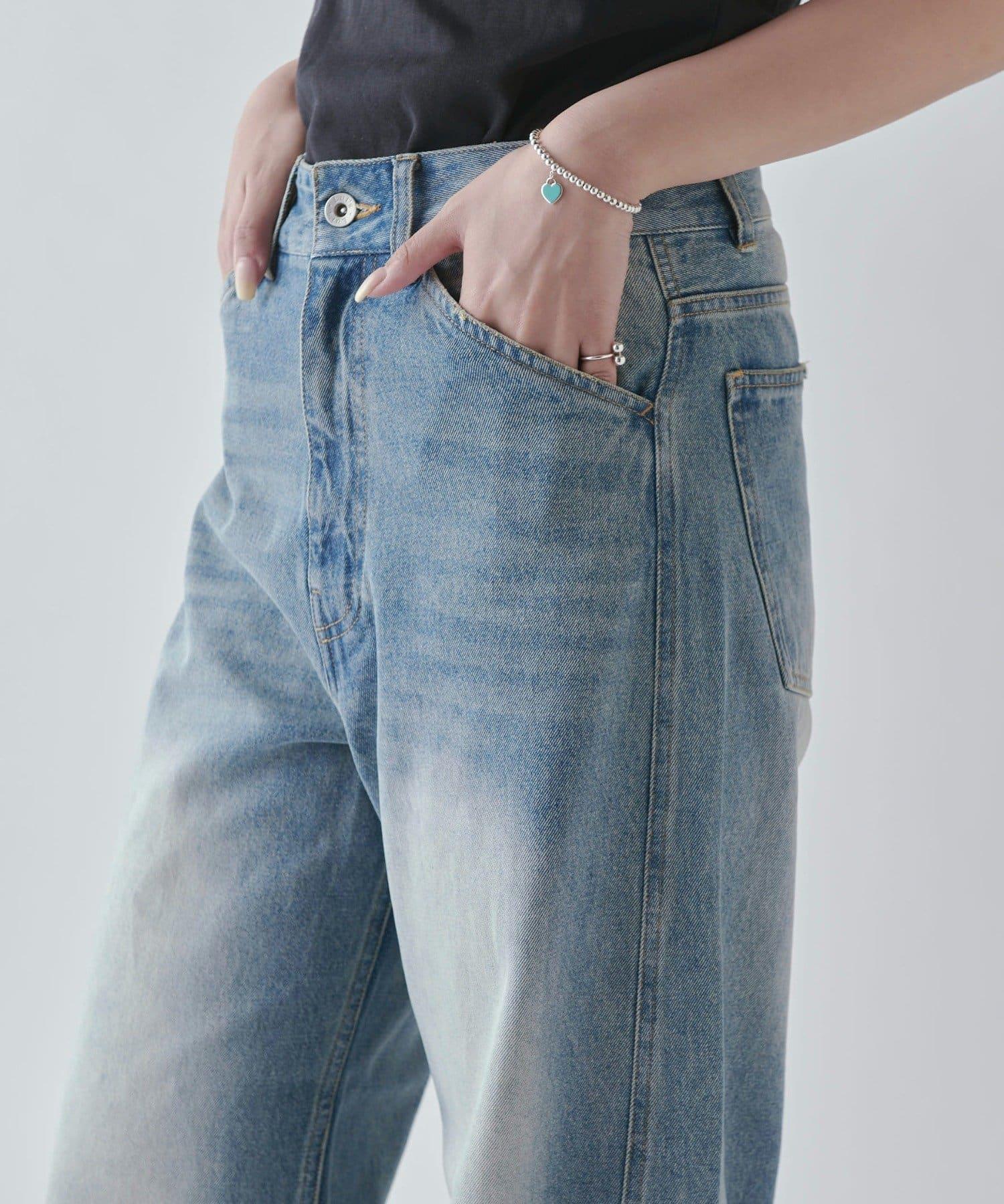 這款牛仔長褲的褲腳線條一直彎曲到下襬,讓你穿著時不用擔心腿部線條。