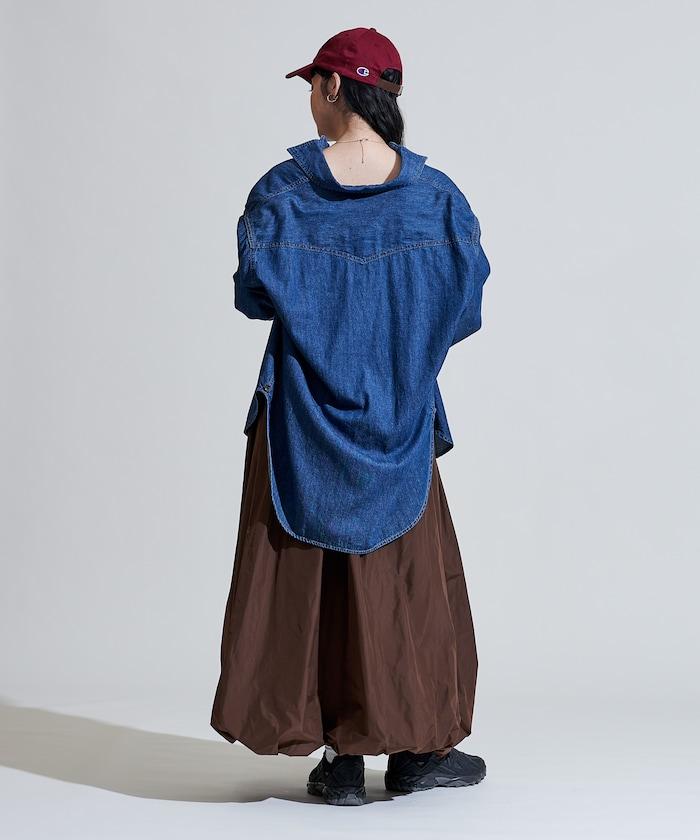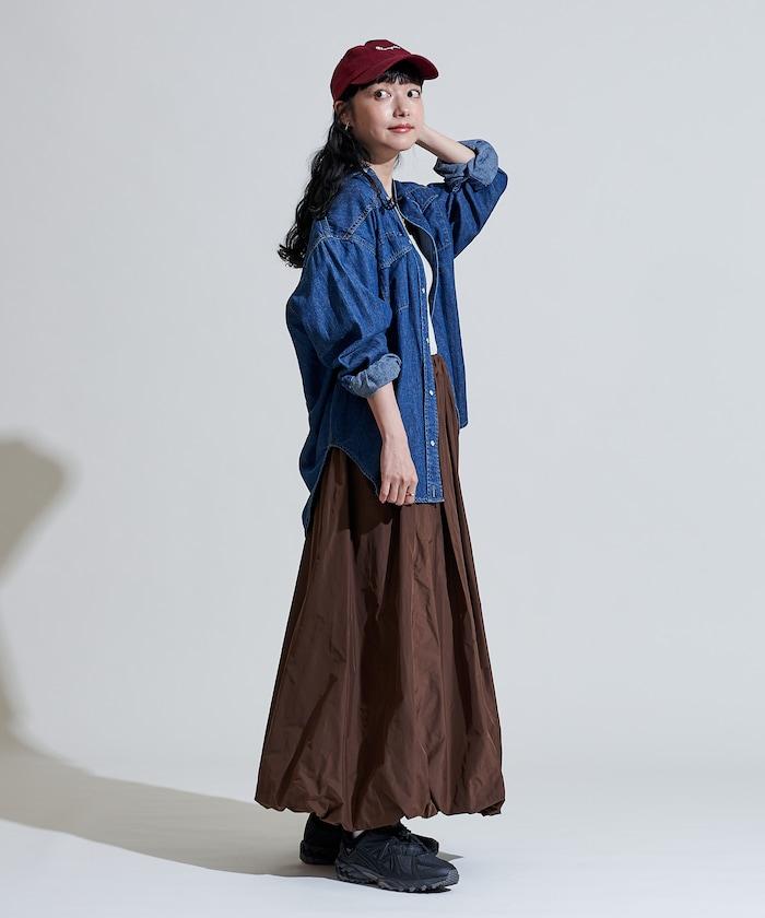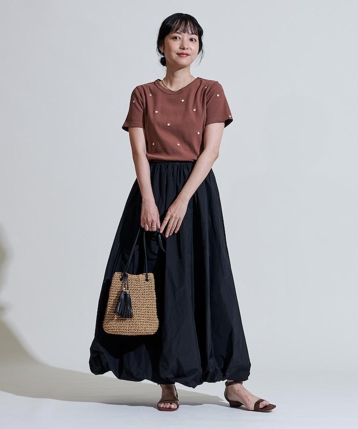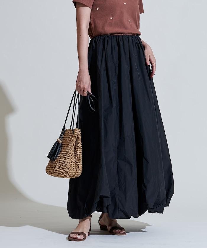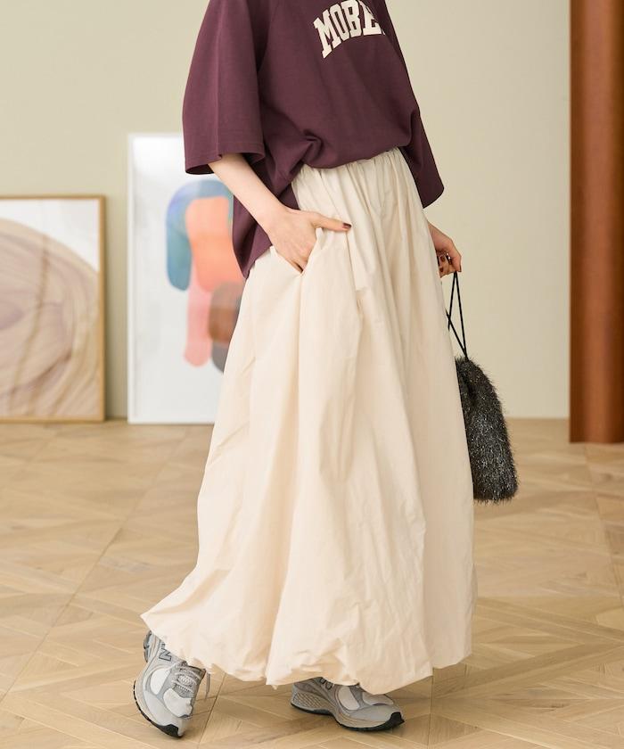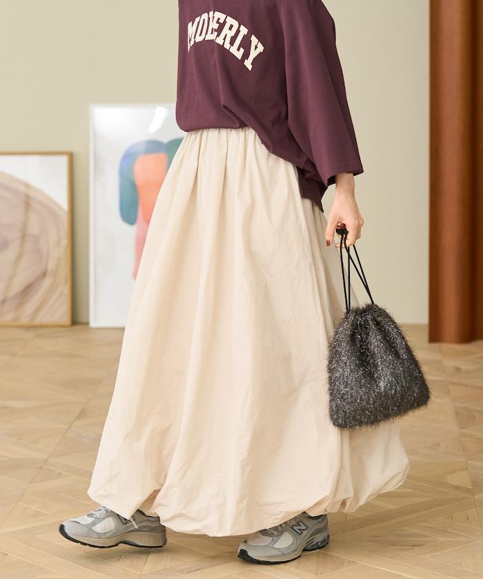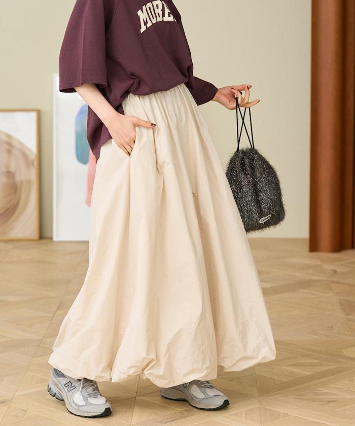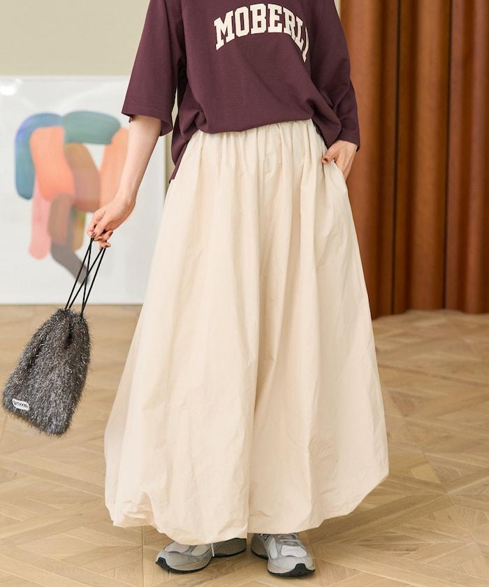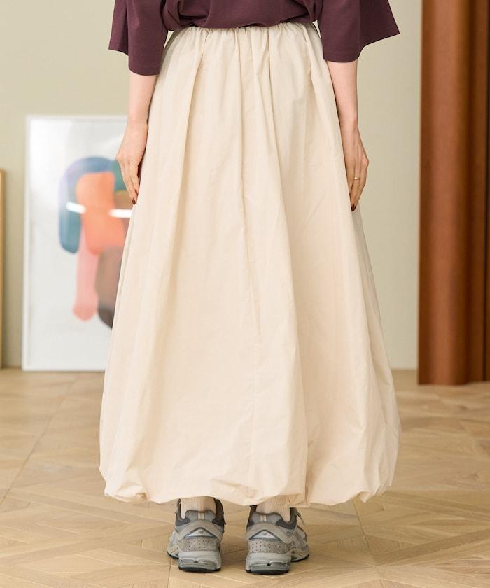 裙襬的體積感讓上半身和腿部看起來乾淨利落,充滿女性魅力。