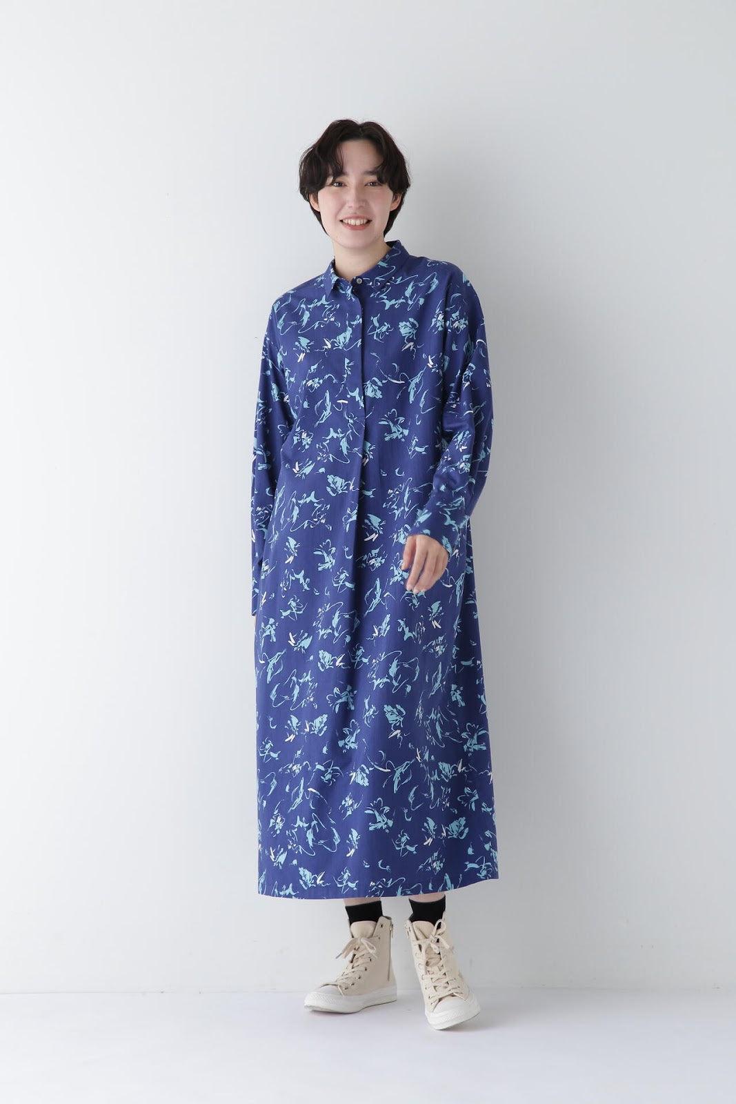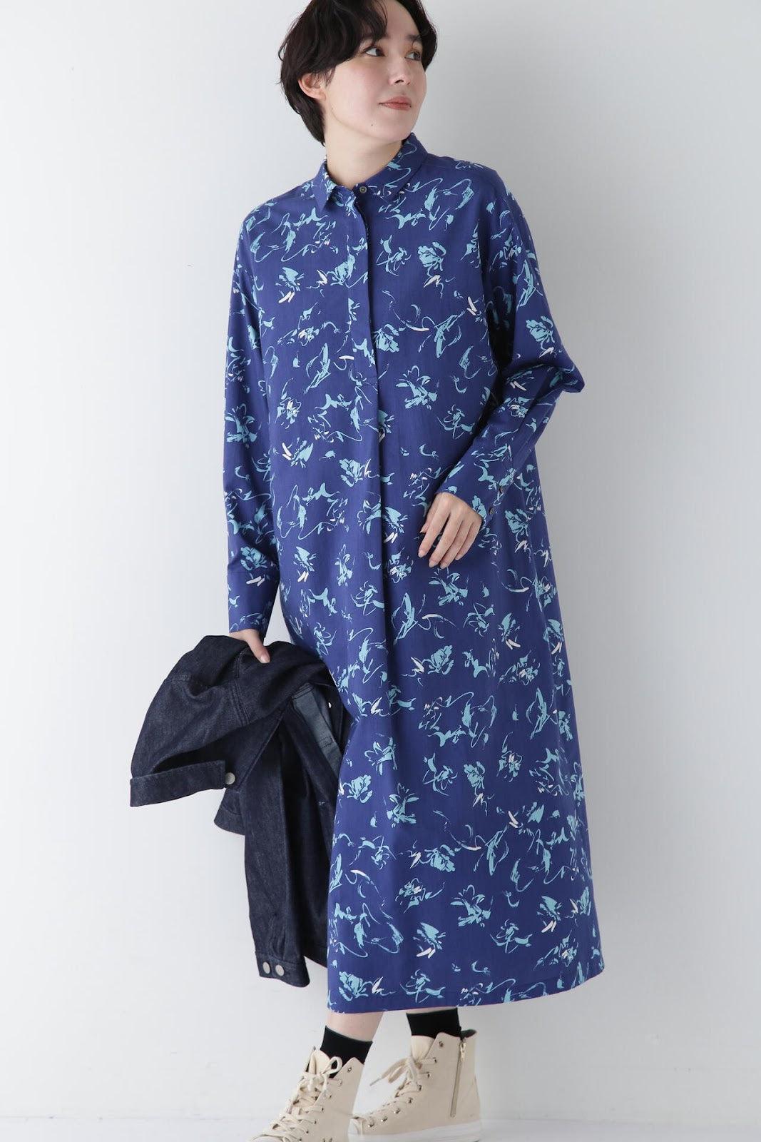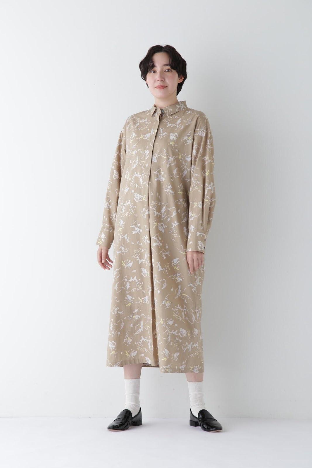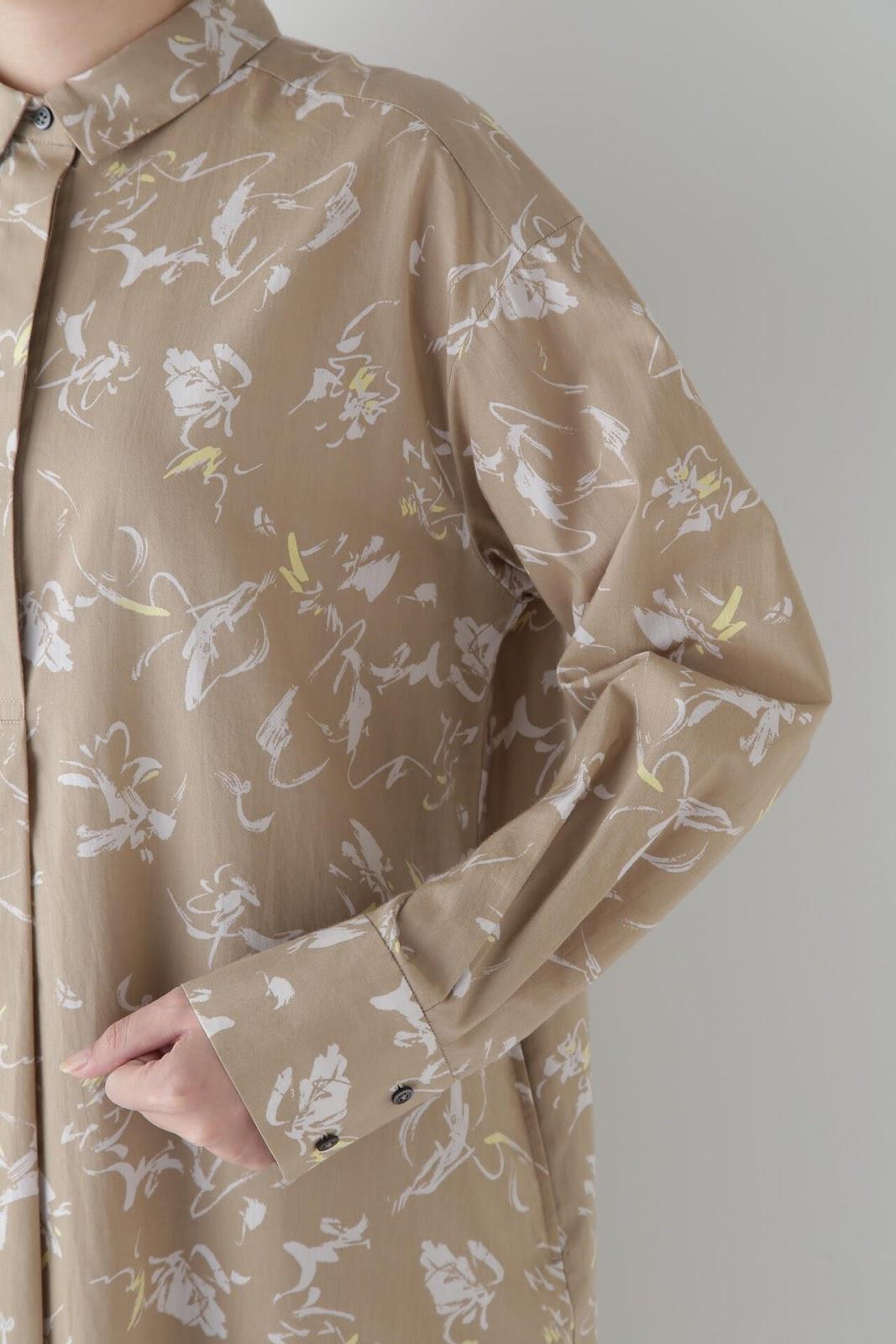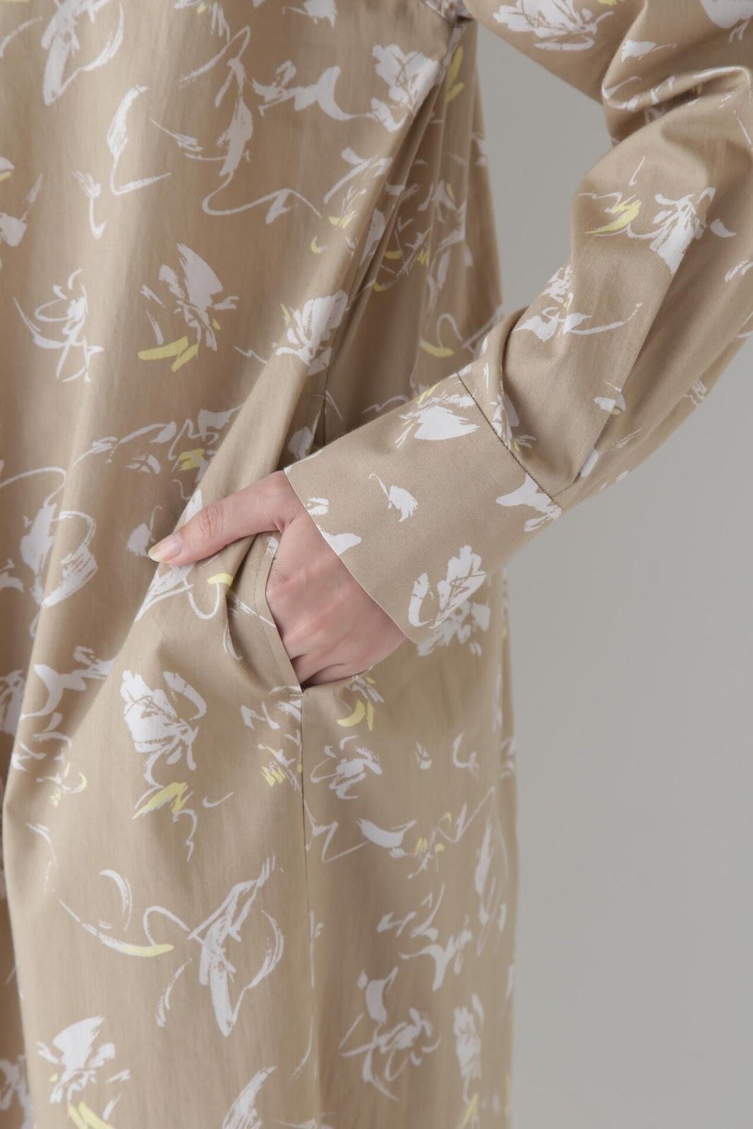 這款襯衫裙的印花獨具匠心,質感細膩。原創印花帶有今年的典型風格--線描顏料觸感。印花的底部由纖維素棉製成,具有良好的張力和墜感。連衣裙由纖維素棉製成,印花下襬具有良好的張力和墜感。在寒冷的天氣裡,它可以疊穿在針織衫外面,適合長季節穿著。