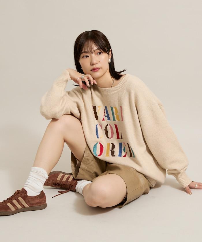 套頭針織衫上繡有醒目的彩色徽標。