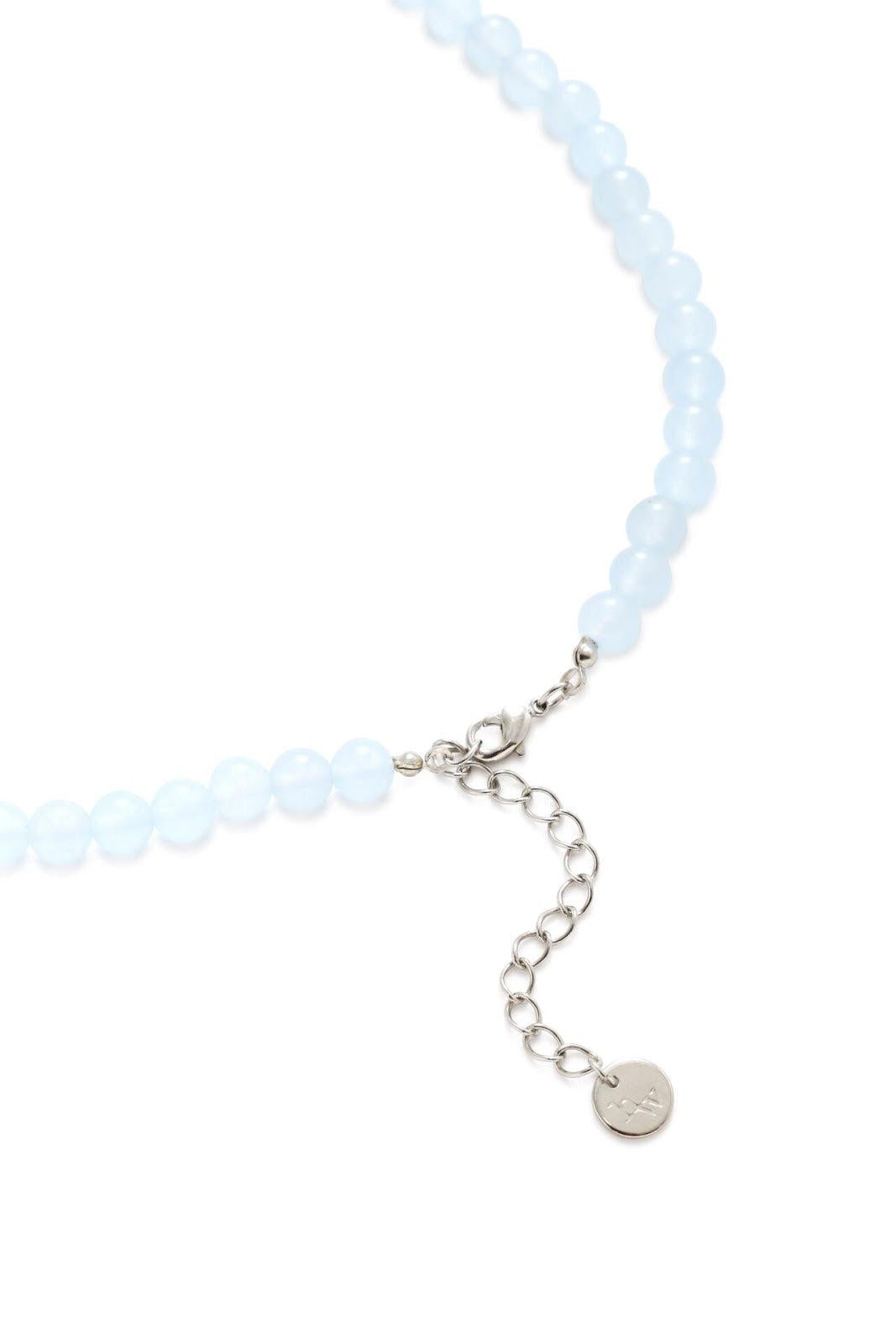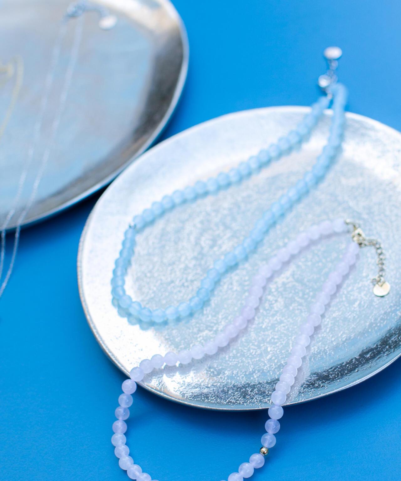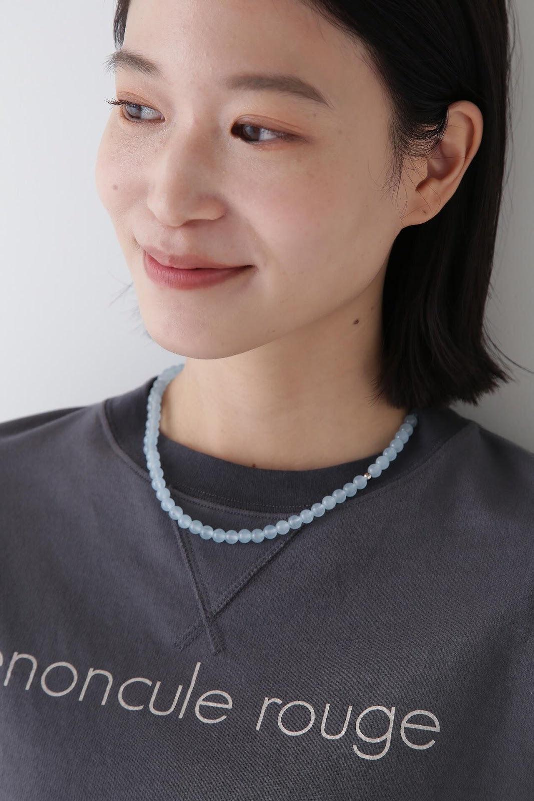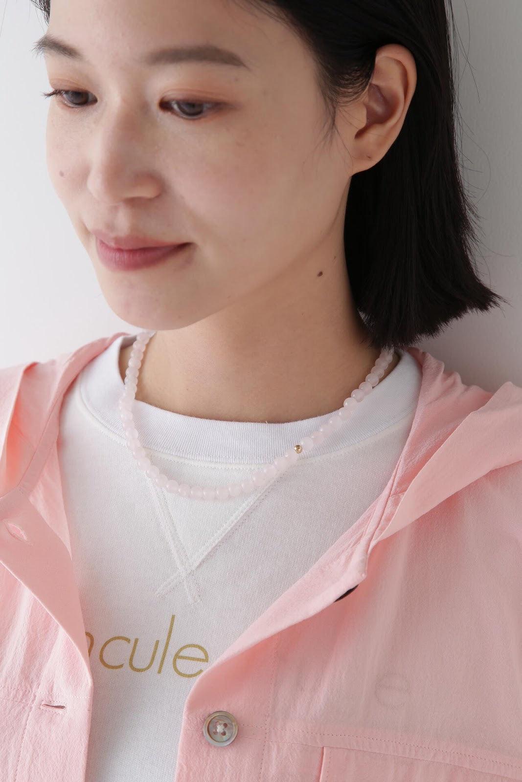 色調柔和的天然石材彩石項鍊 [設計要點] 這是一條清新、新穎的項鍊,珠子是春天般的天然石材綵球。中間的黃銅球是點綴。項鍊由符合當季主要色彩的天然石材製成。有粉色(玫瑰石英)x 金色和淺藍色(淺藍玉)x 銀色可供選擇。這條項鍊可以搭配簡單的上衣作為點綴。建議搭配同色系天然寶石吊墜。