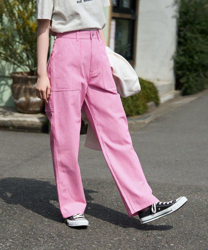 高腰廓形、多彩縫線和可愛色彩,讓這款彩繪長褲雖然是男裝類單品,卻能與各種品味的單品完美搭配。