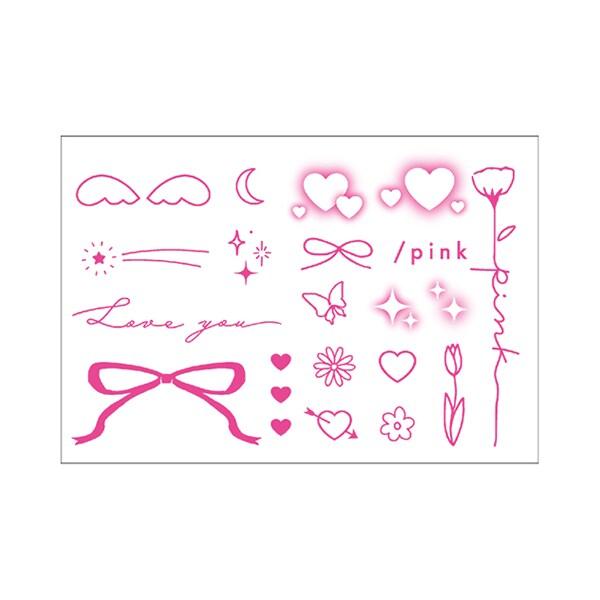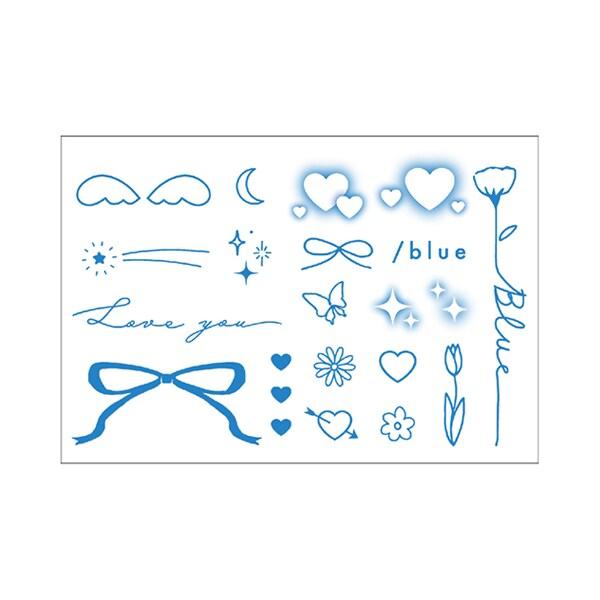 紋身貼紙上有各種圖案,如花朵和絲帶,設計風格各異。
