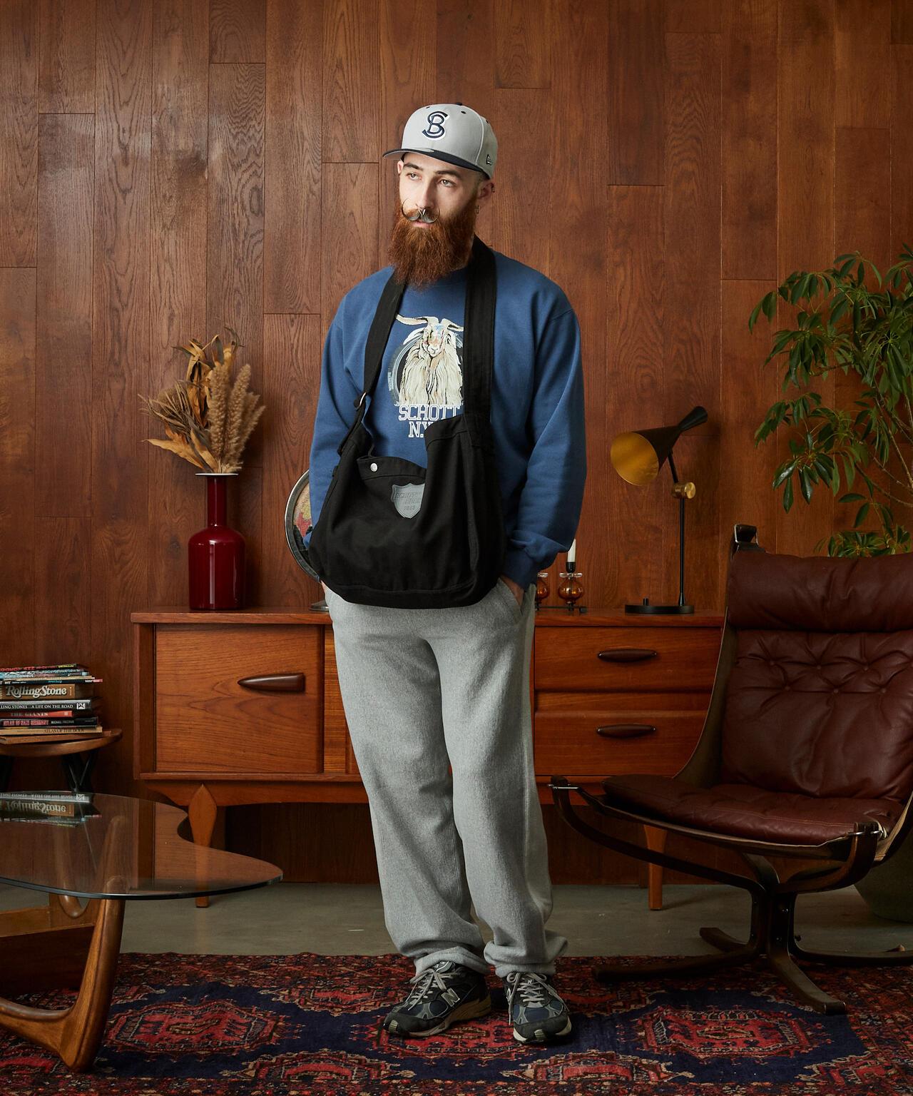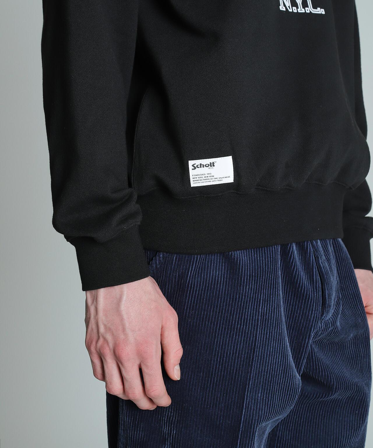 其設計靈感來自上世紀四五十年代的訓練服,採用 50%棉和 50%聚酯纖維製成,輕便快乾,易於打理。滌綸的缺點是起球,但我們也成功地將這種惱人的起球現象降到了👍。這種技術在古董 T 恤和古董運動衫上經常可以看到。蓬鬆的絨片附著在織物上,因此可以創造出不同於油墨印花技術的產品氛圍。肖特] 肖特是騎手夾克的代名詞,其歷史始於 1913 年紐約的歐文-肖特和傑克-肖特兄弟。