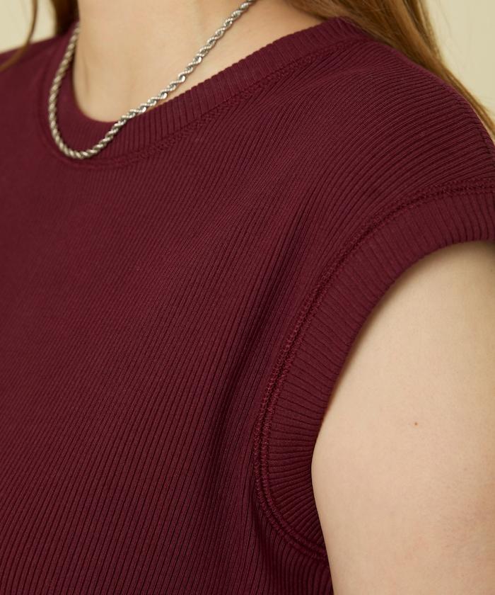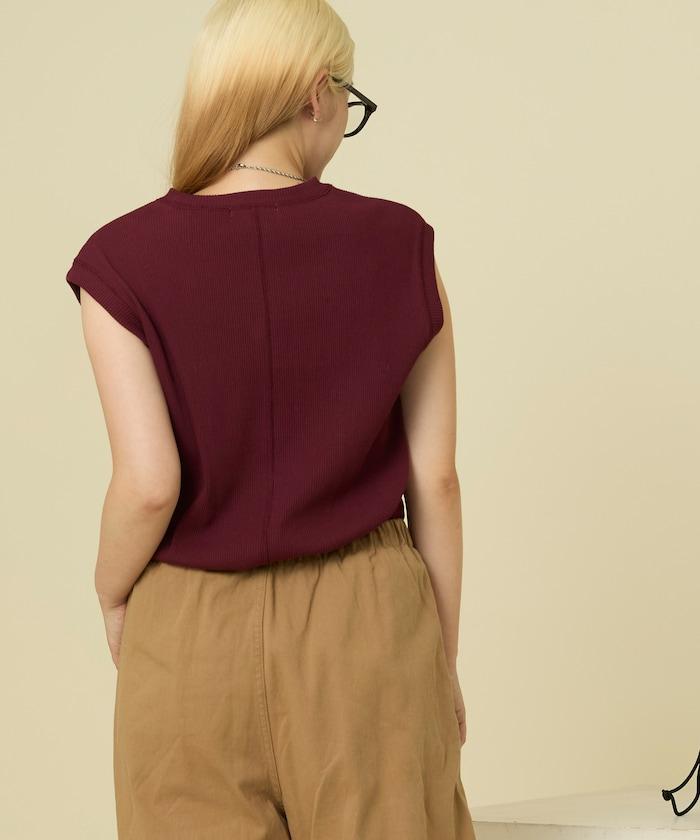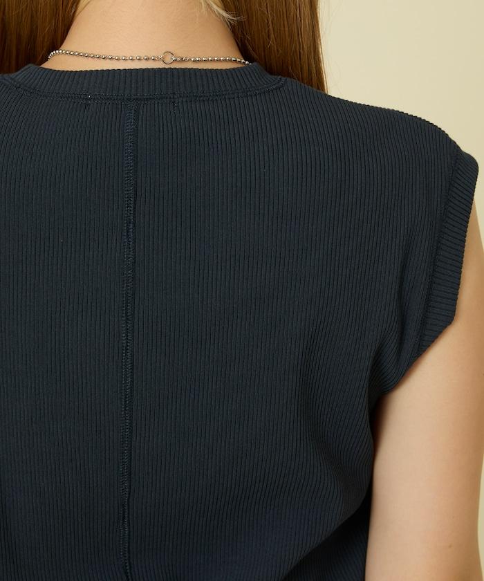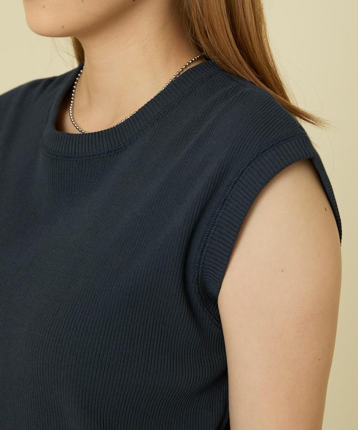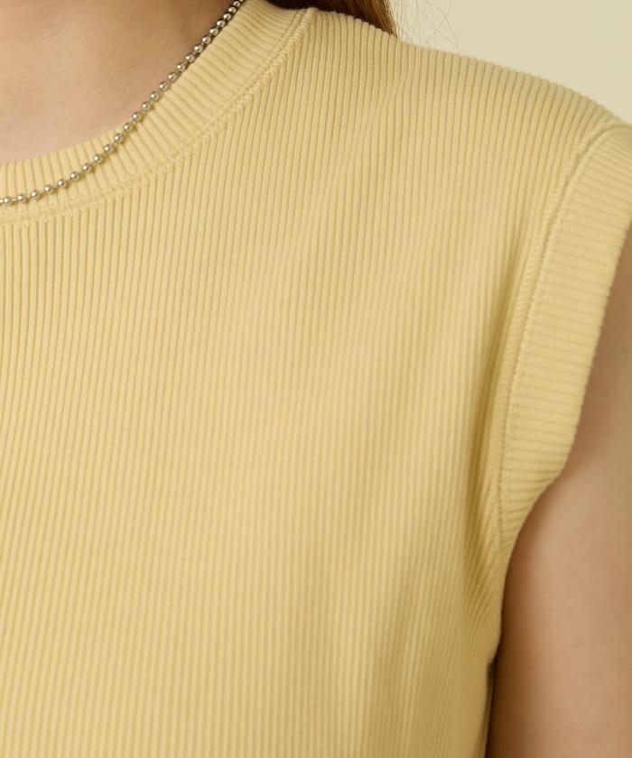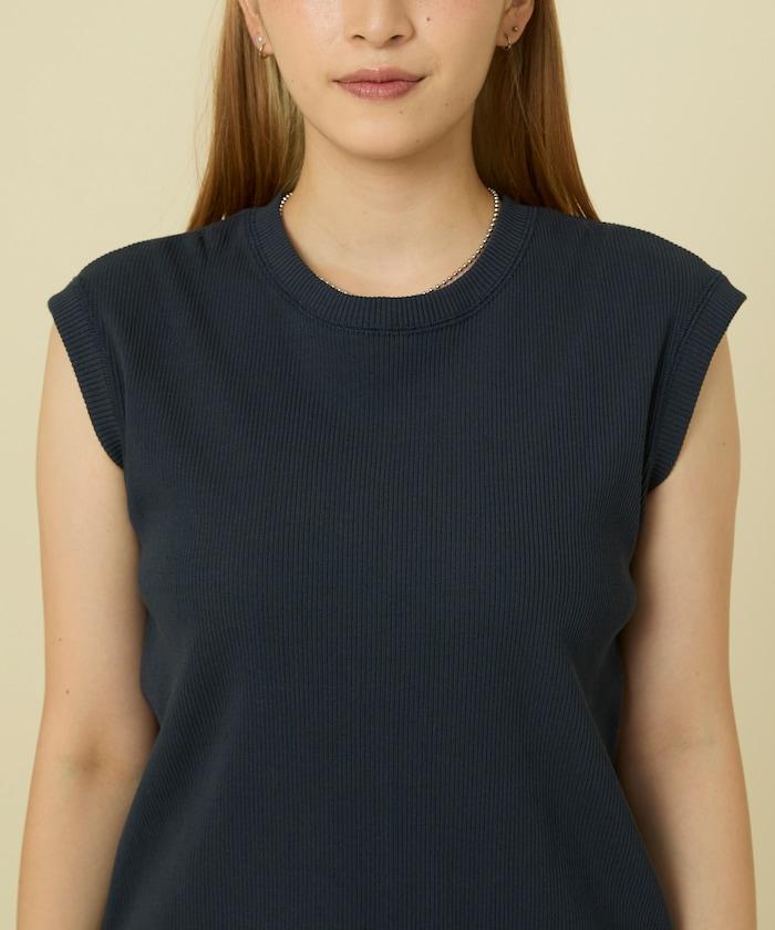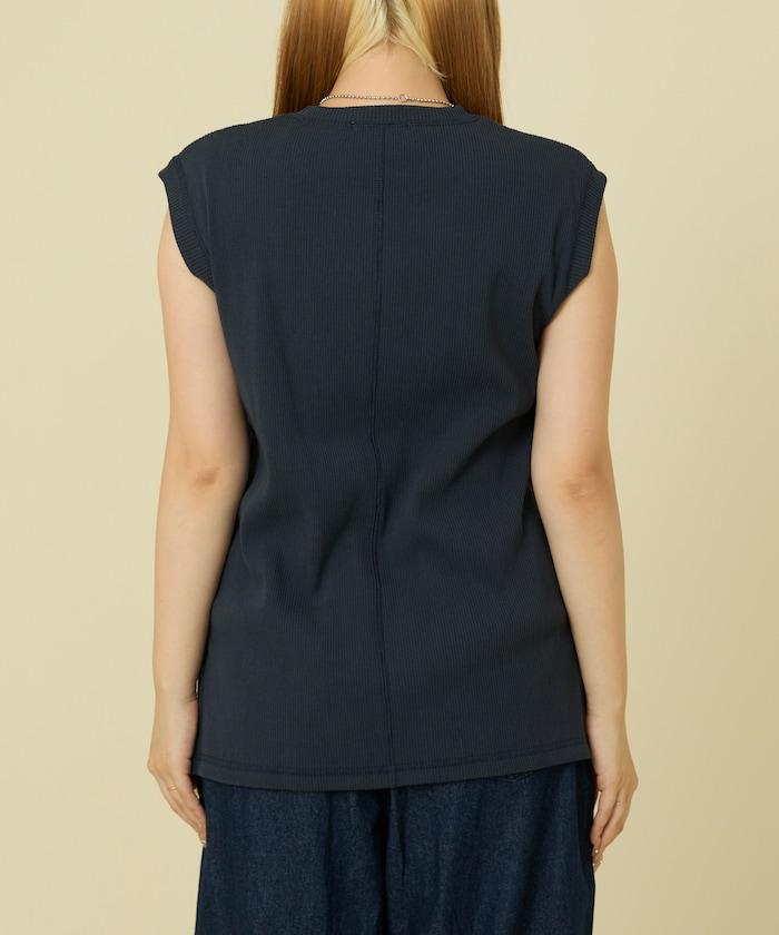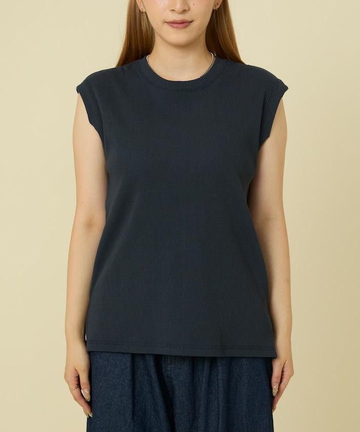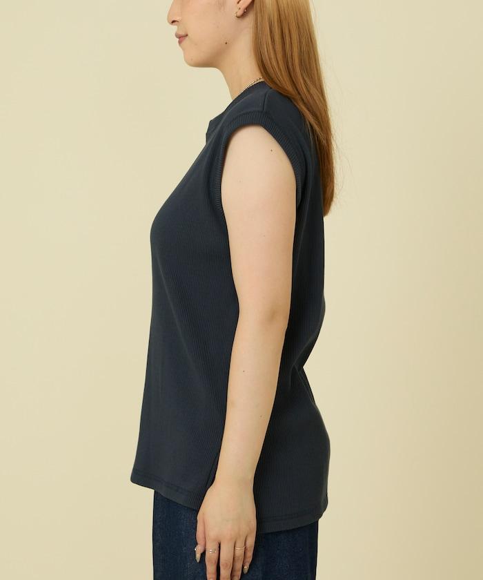 無袖 T 恤採用稍厚的緊密羅紋面料製成。