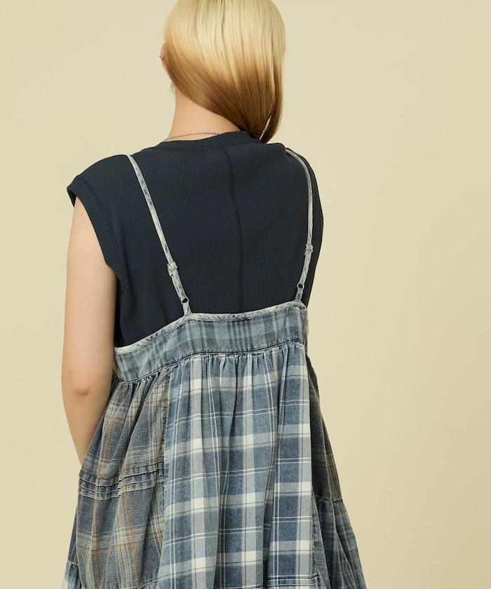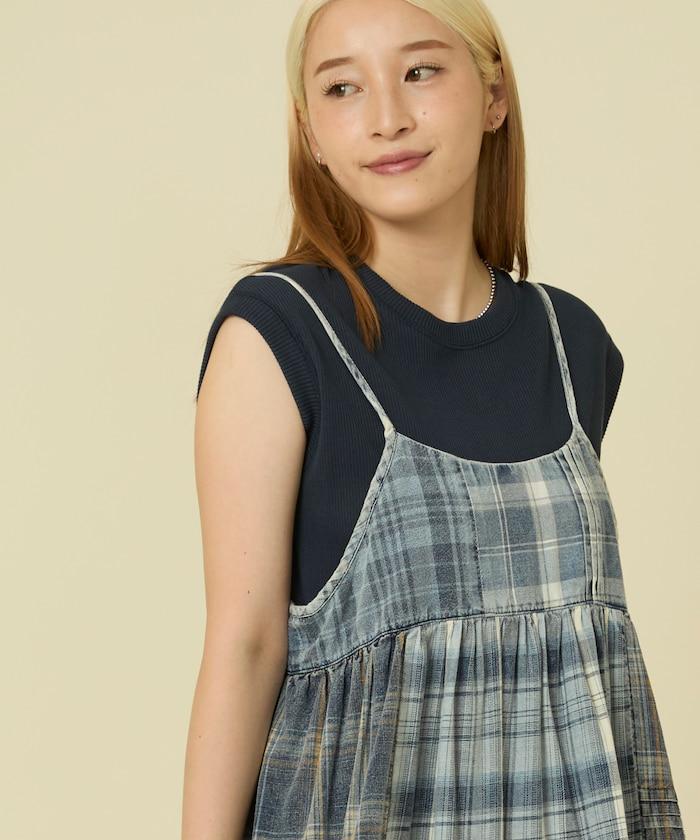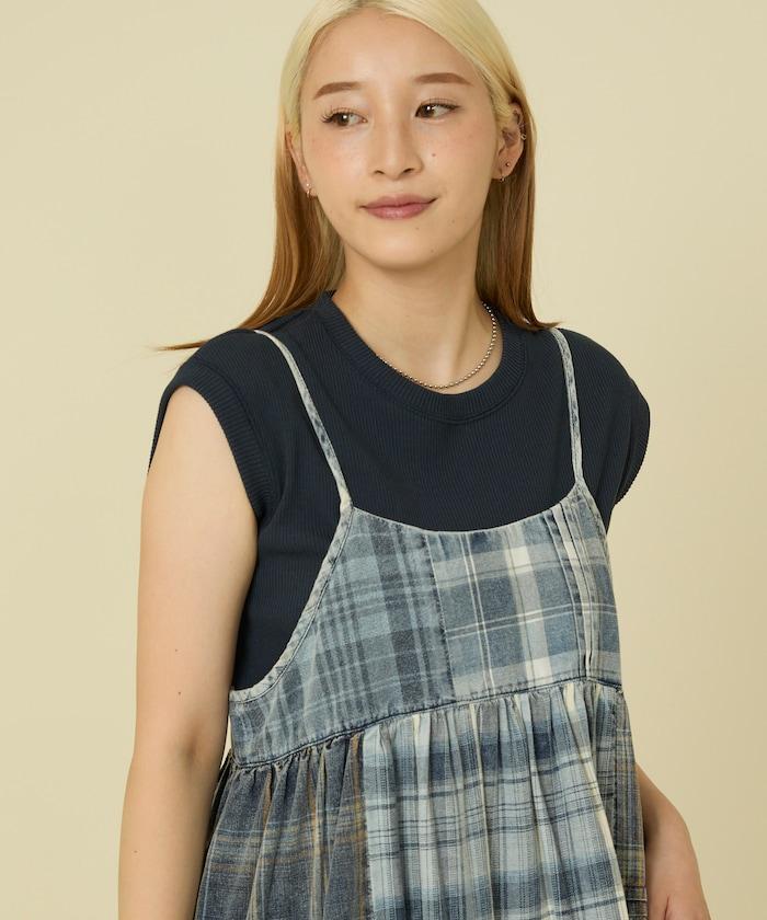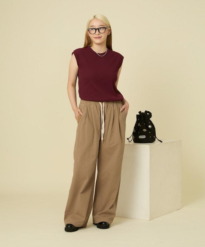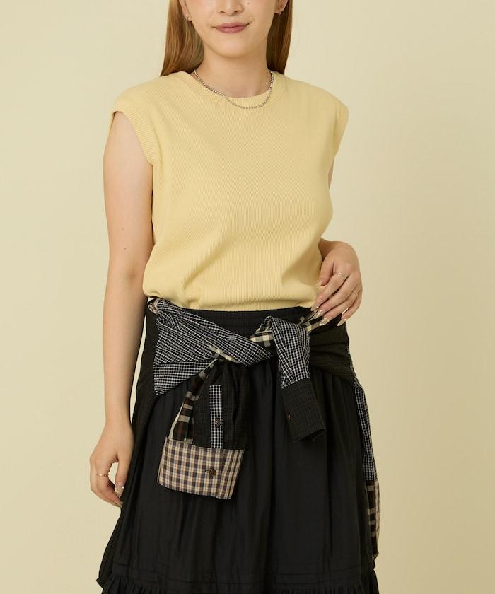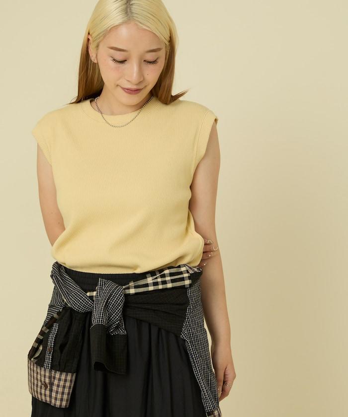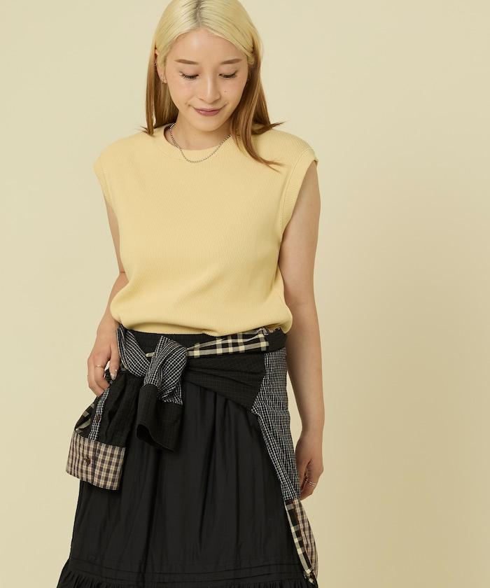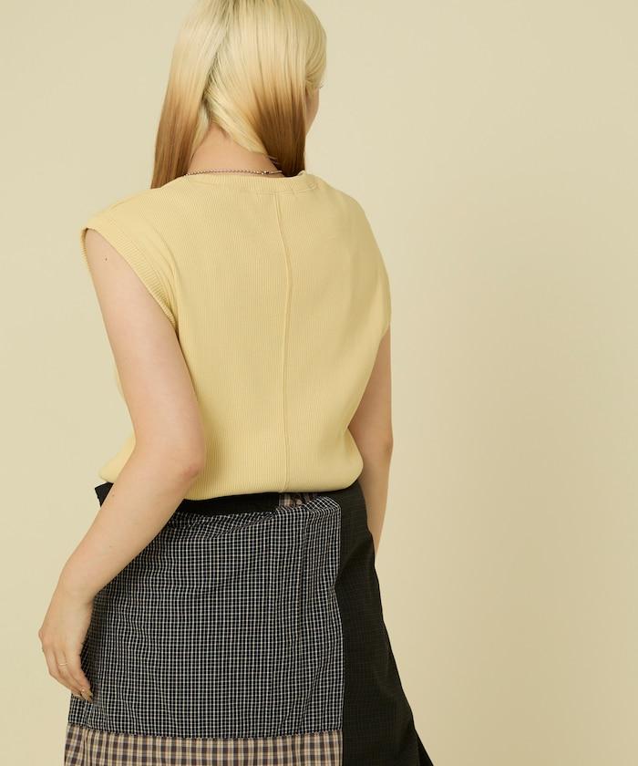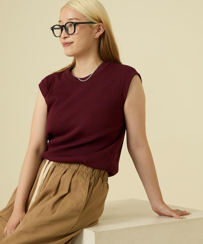 無袖 T 恤採用稍厚的緊密羅紋面料製成。