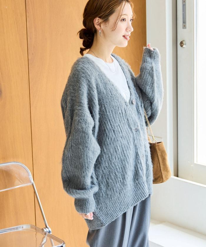 絨毛開衫,採用女性化的絨毛針織面料,絨毛材質十分搶眼。