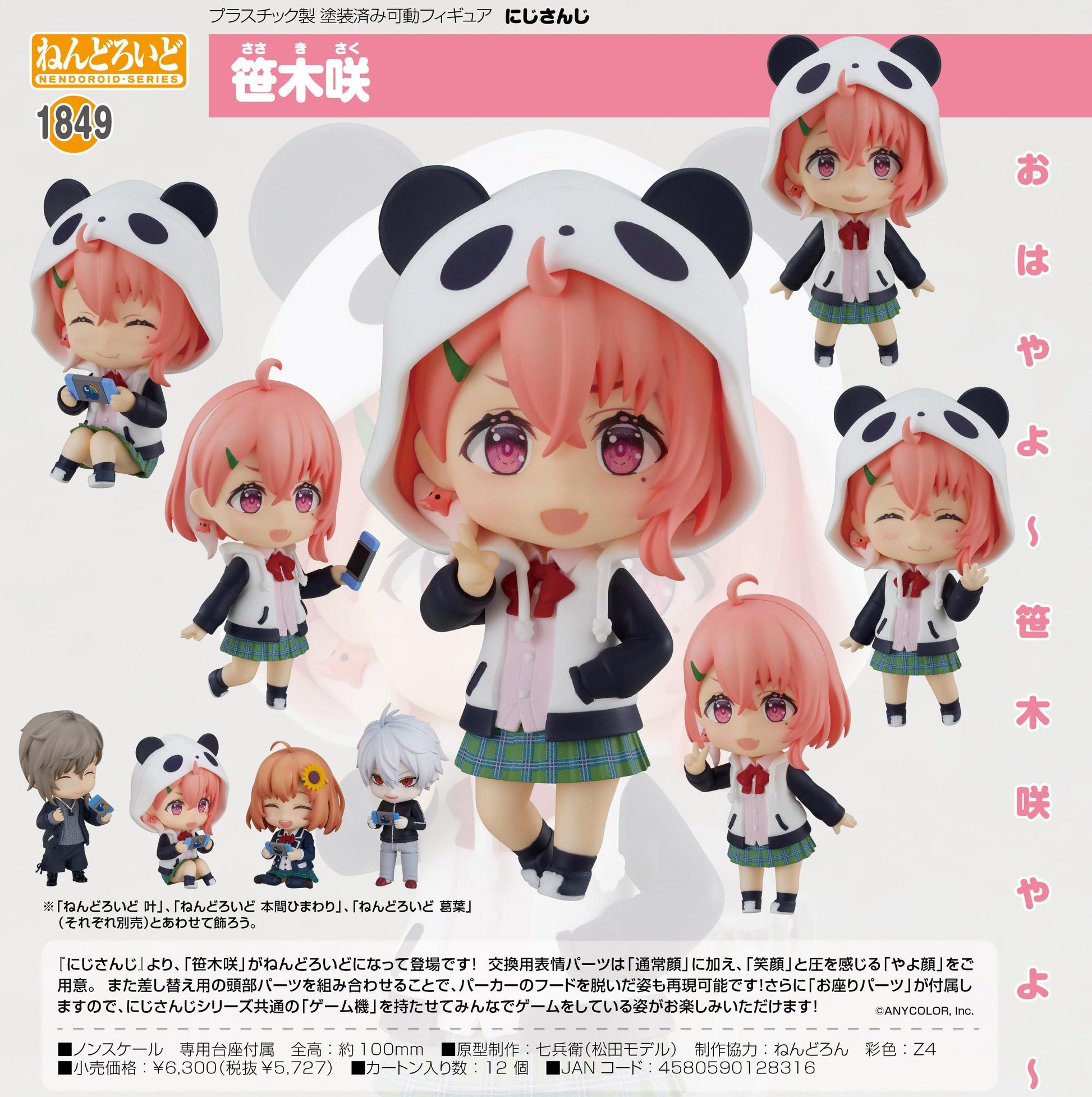 來自人氣虛擬車手組合 "Niji Sanji "的笹木咲的 Nendoroid,她是一個喜歡遊戲和水族館的女孩! 她有三種表情--標準表情、微笑表情和緊張表情。 她還配有一個可更換的頭部部件,讓您可以在不脫下連帽衫的情況下襬姿勢!她還配有一個額外的坐姿部分,讓您可以讓她手持 Nendoroid Nendoroid 系列中常見的遊戲機,與 Nendoroid Nendoroid 系列中的每個人一起玩遊戲! 請務必將她與 Nendoroid 卡諾(另售)擺放在一起!