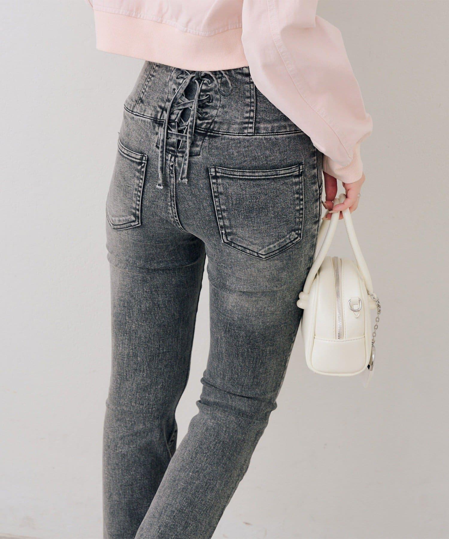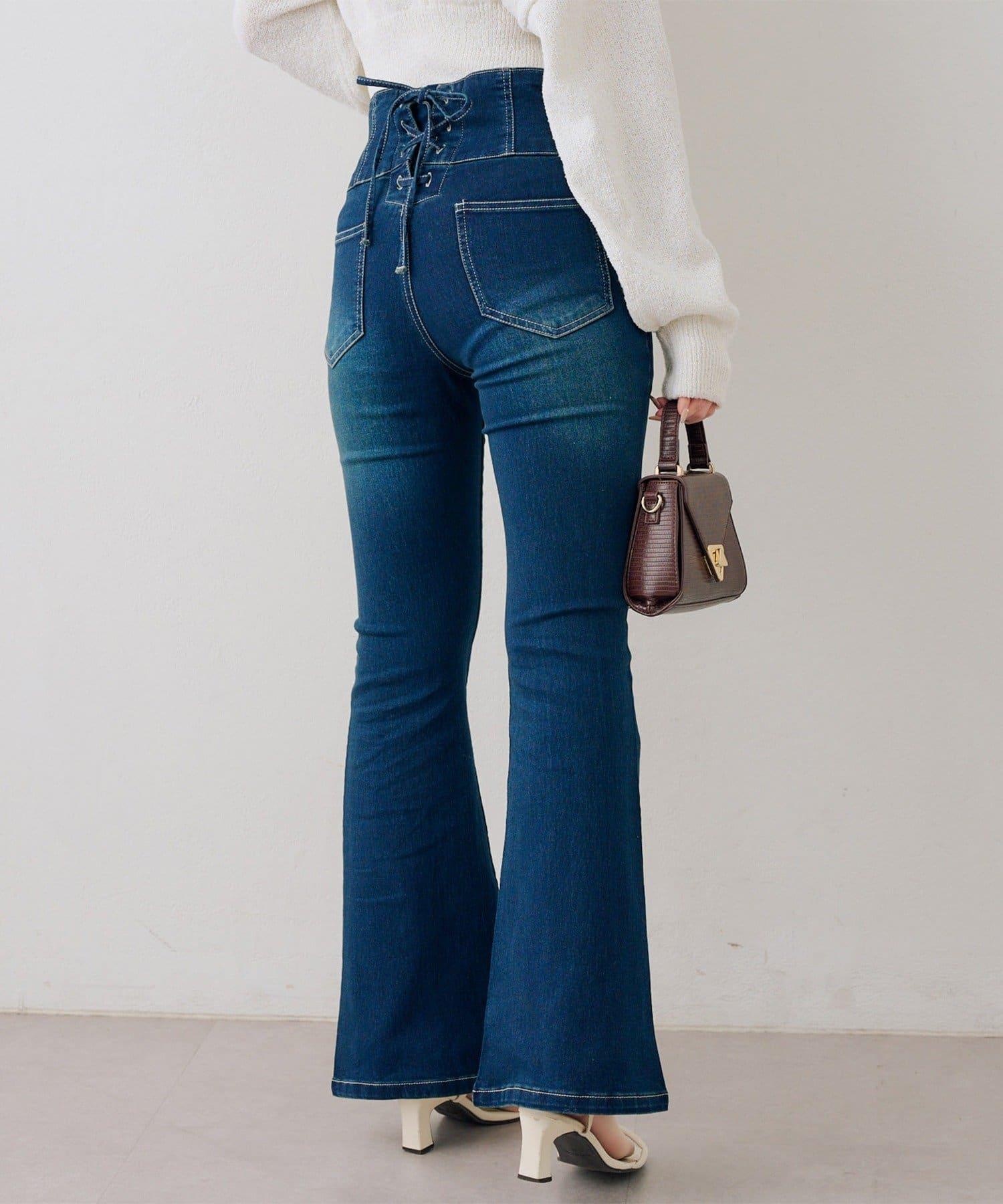 後レースアップフレアパンツ