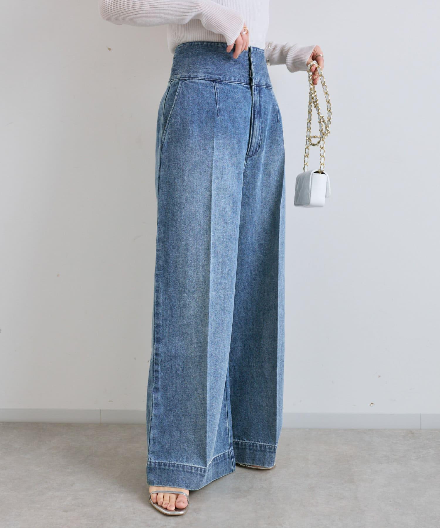 後背係扣裝寬鬆牛仔褲