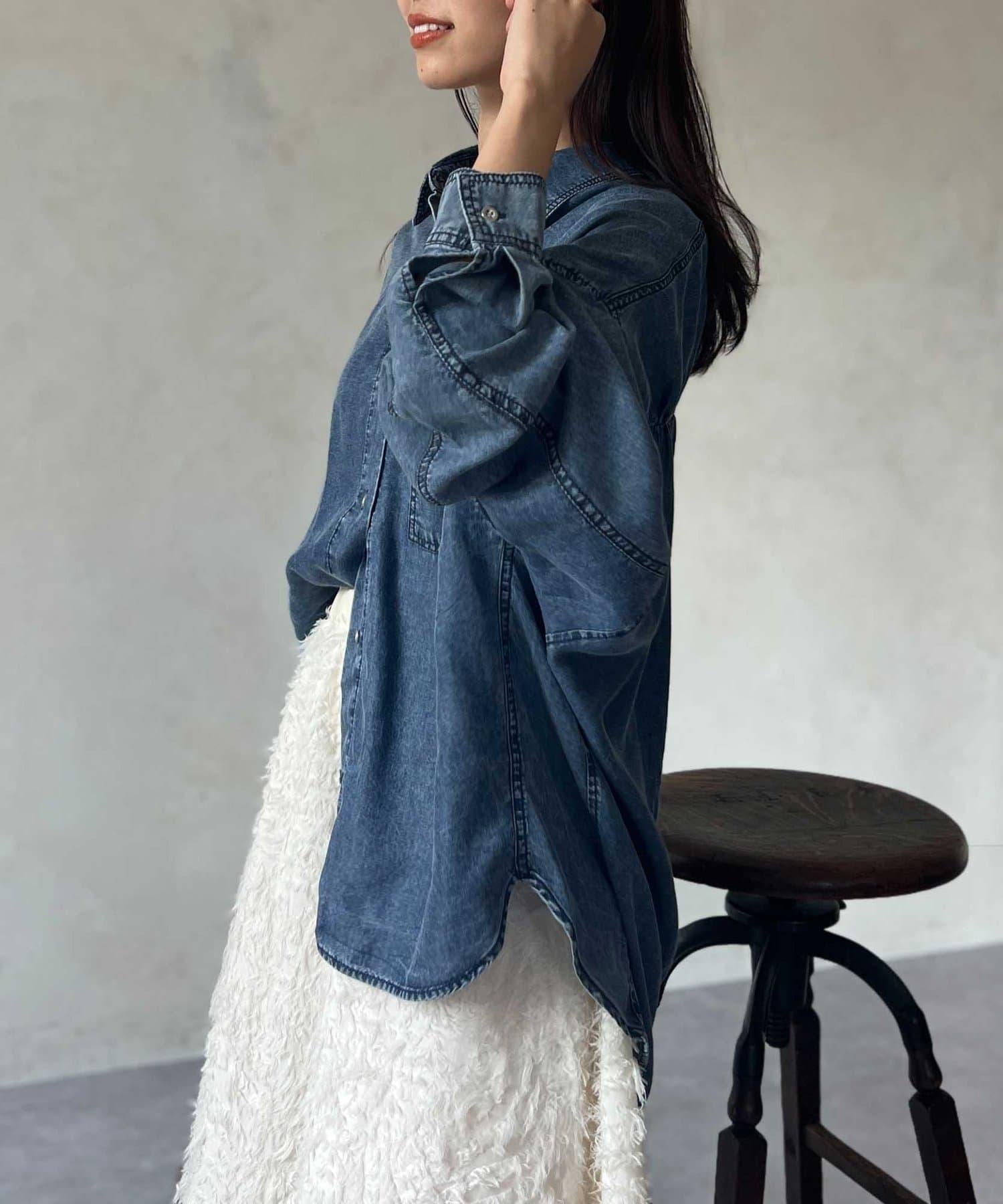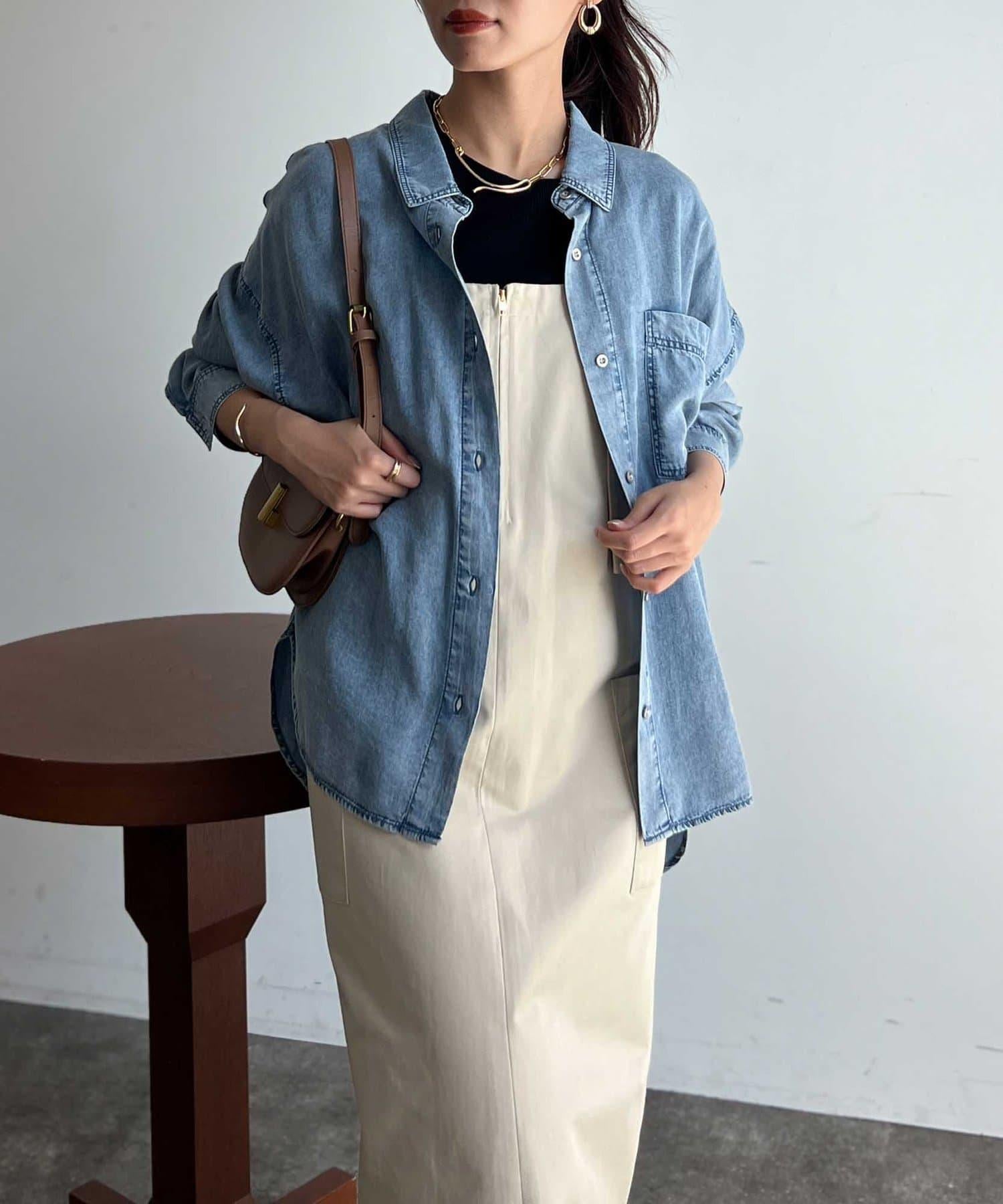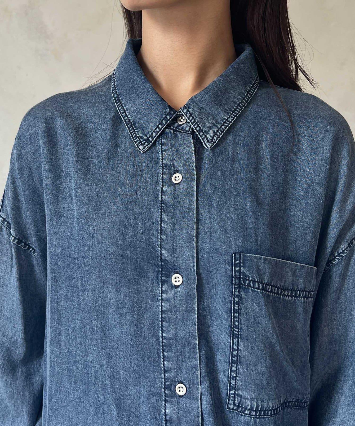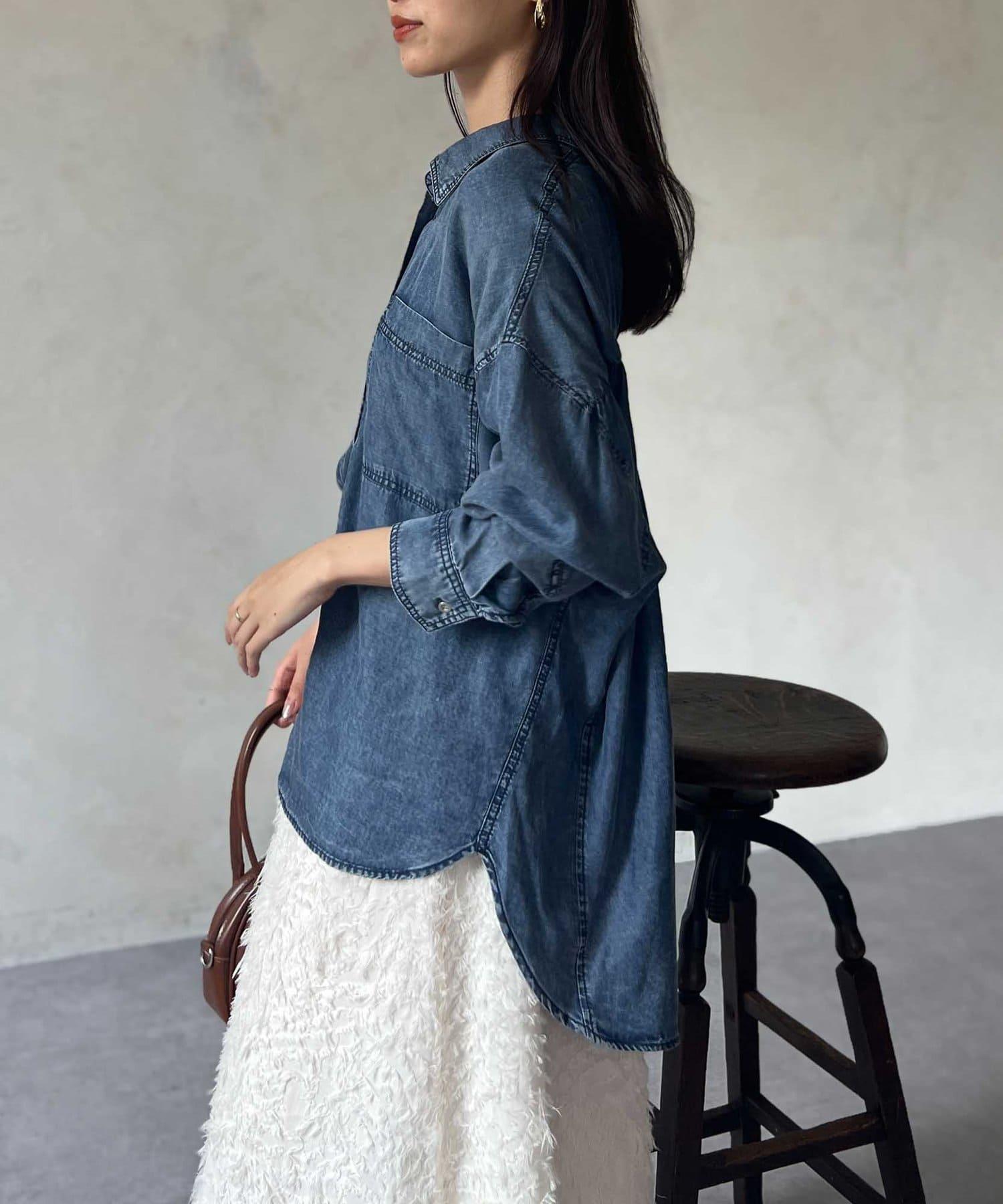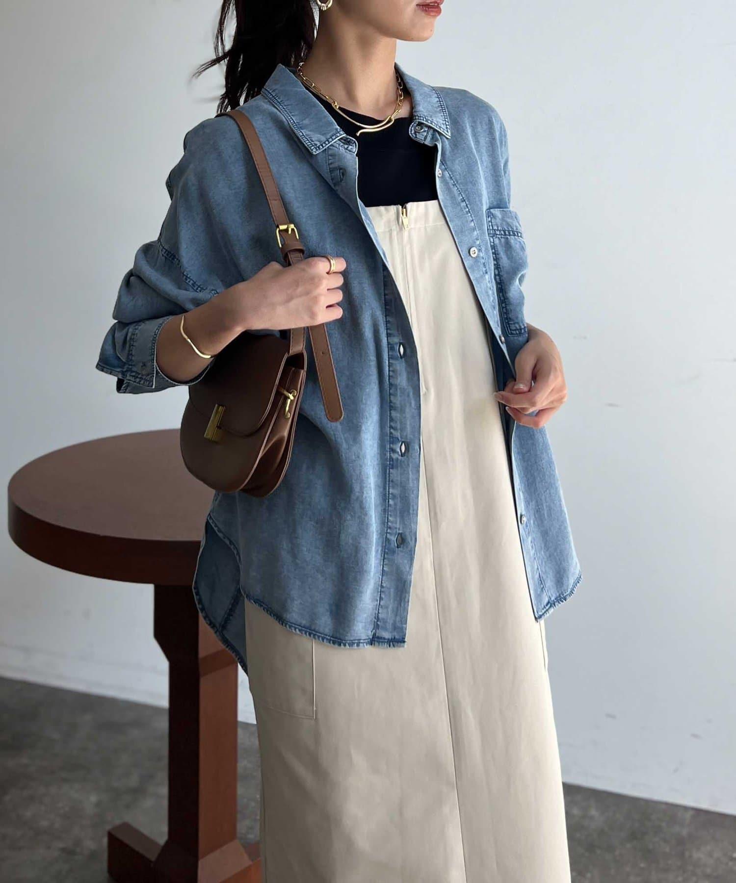 牛仔襯衫。採用天絲牛仔布,具有柔軟的秋季特色