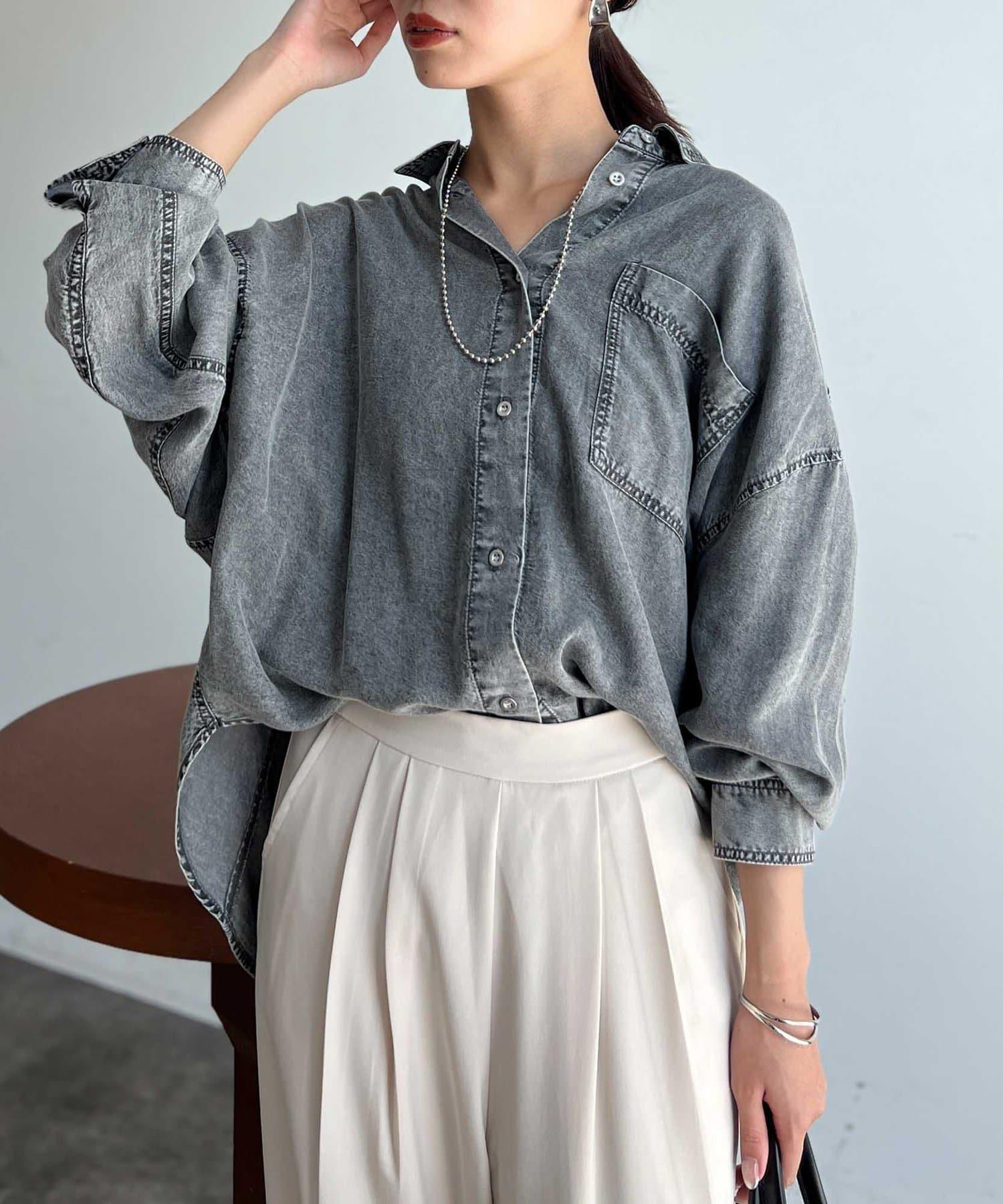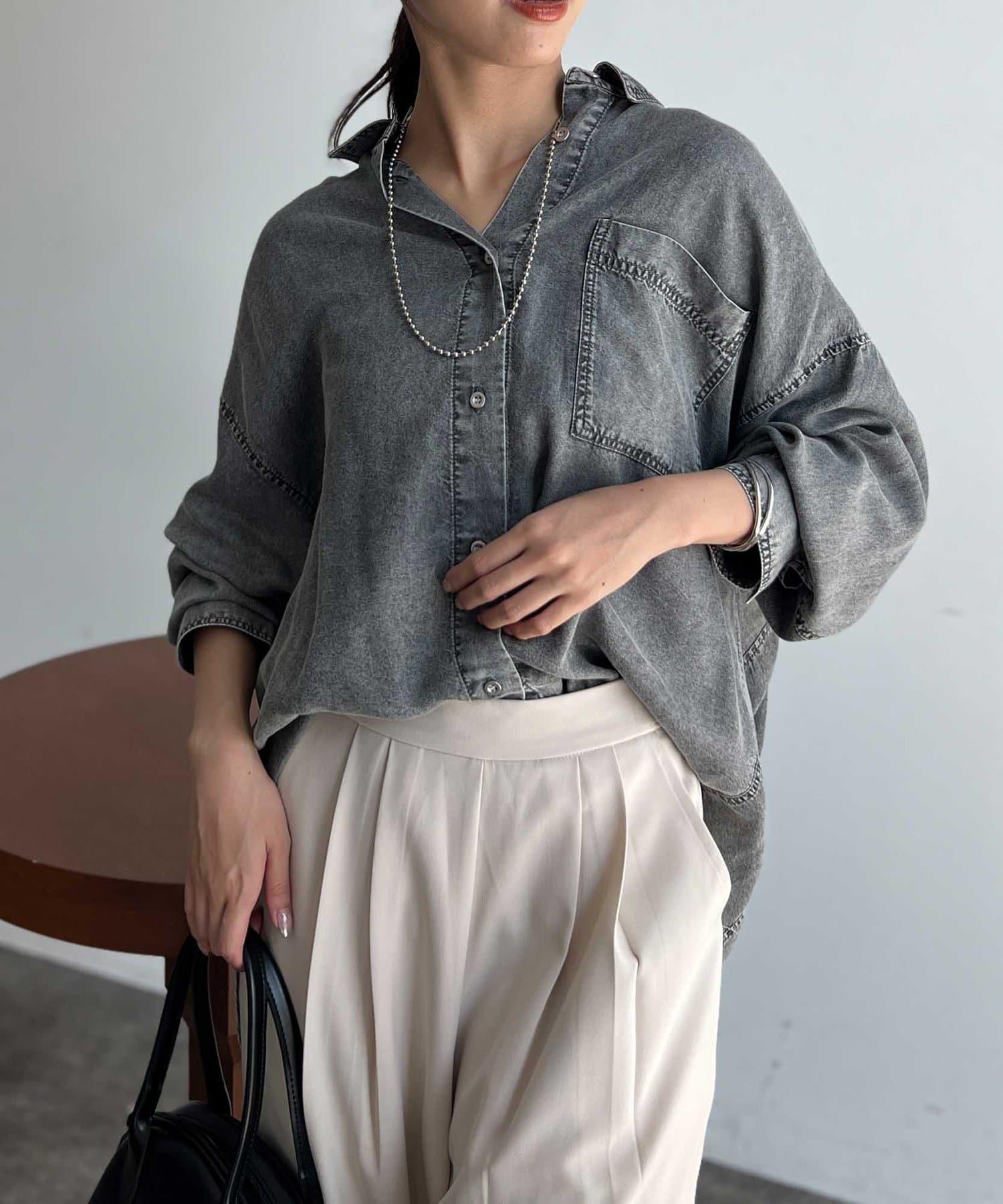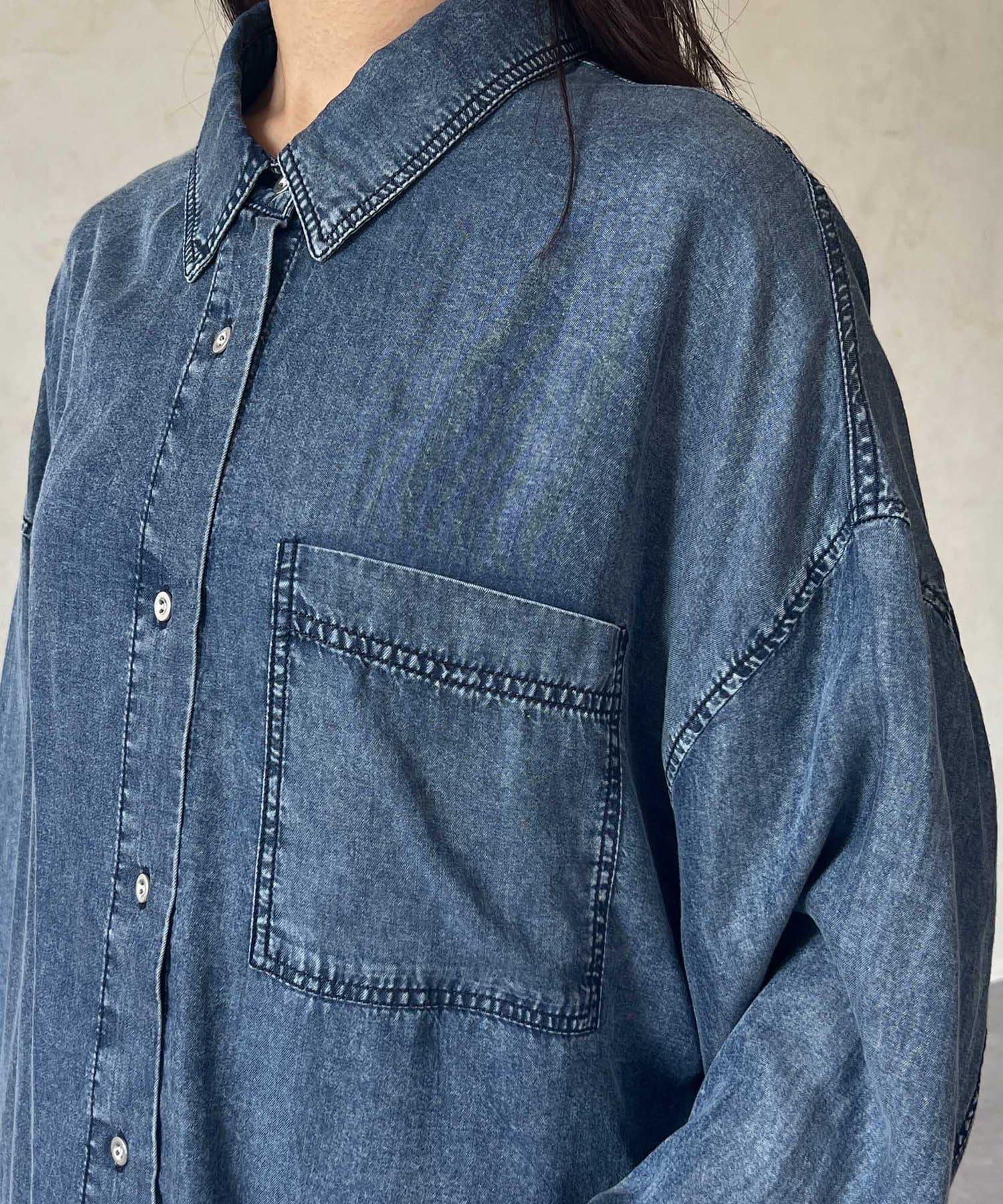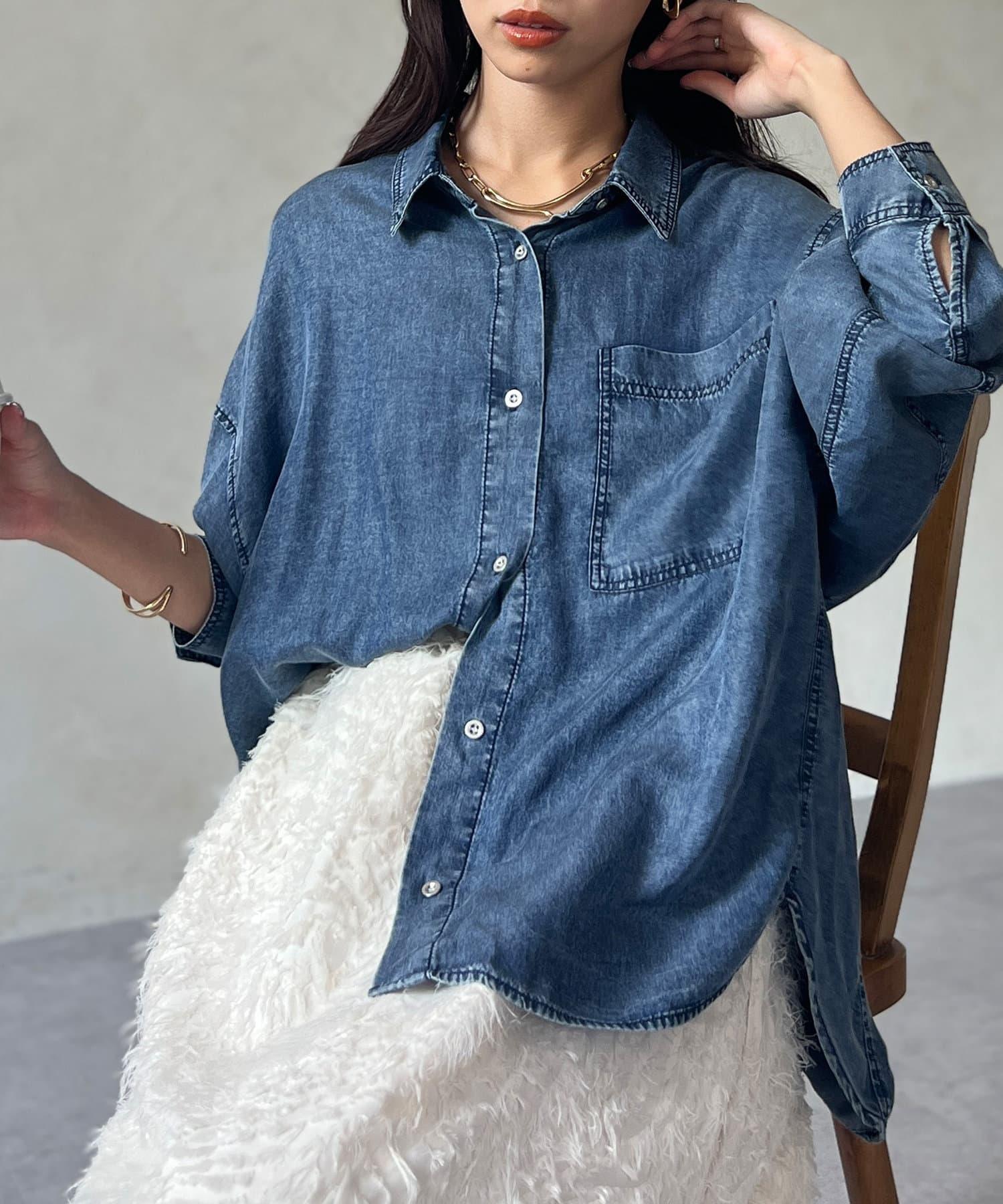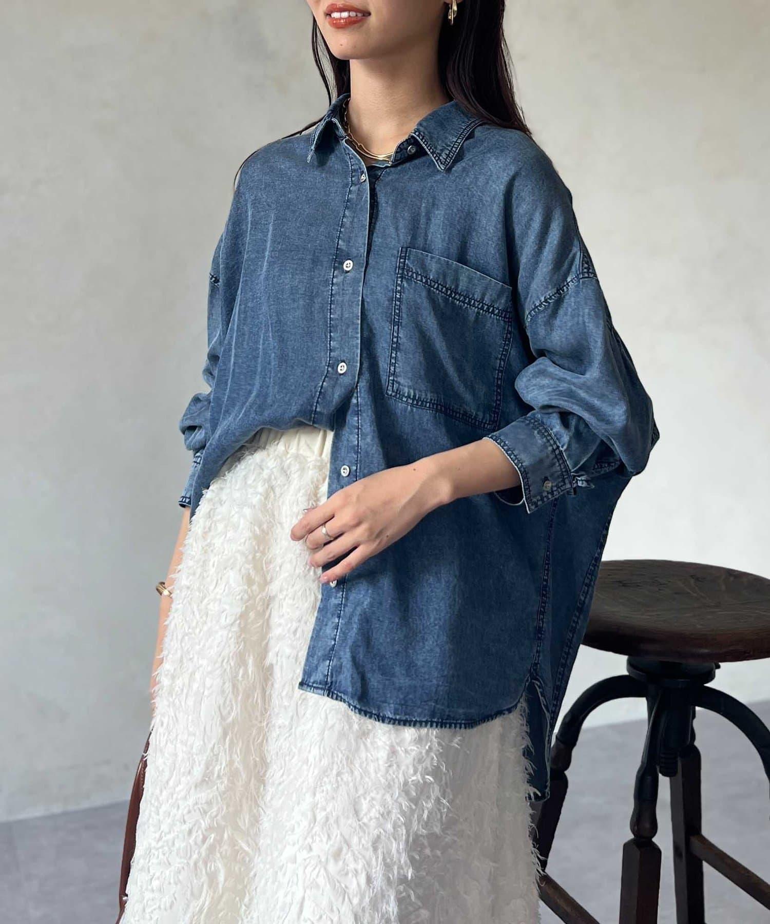 牛仔襯衫。採用天絲牛仔布,具有柔軟的秋季特色