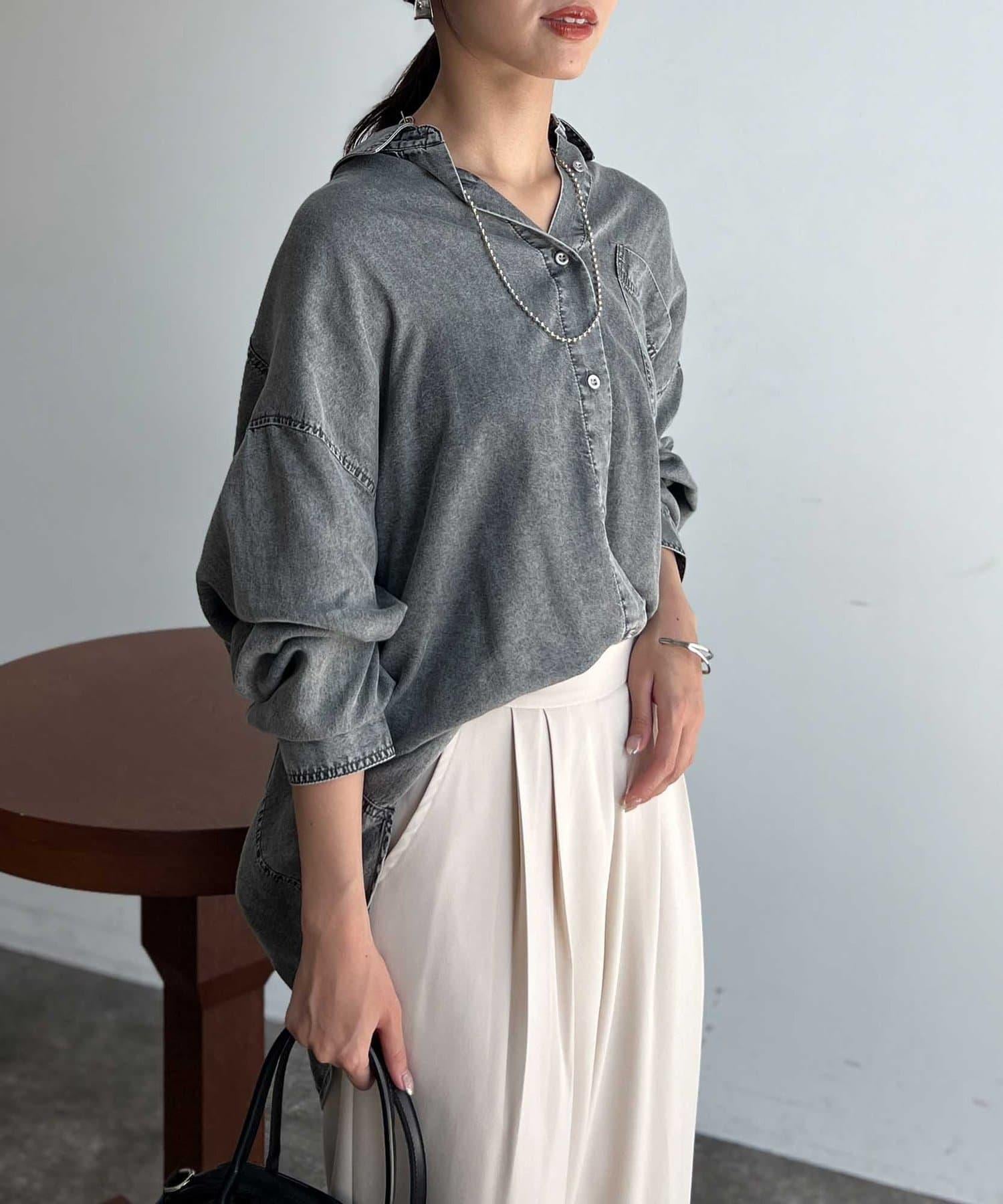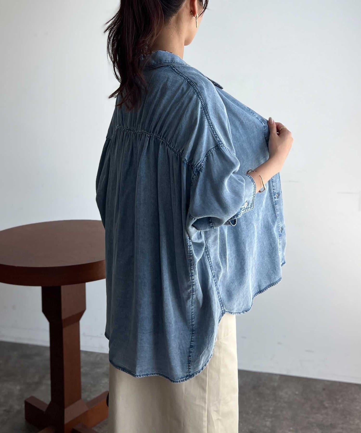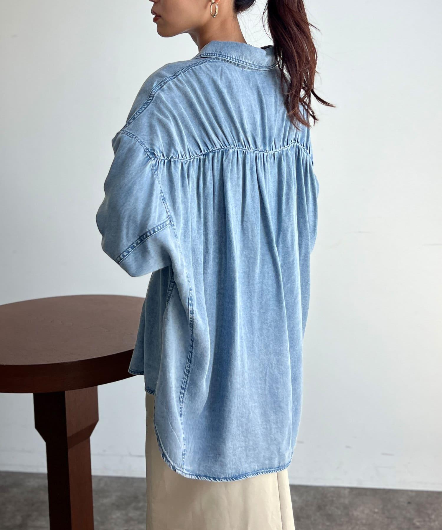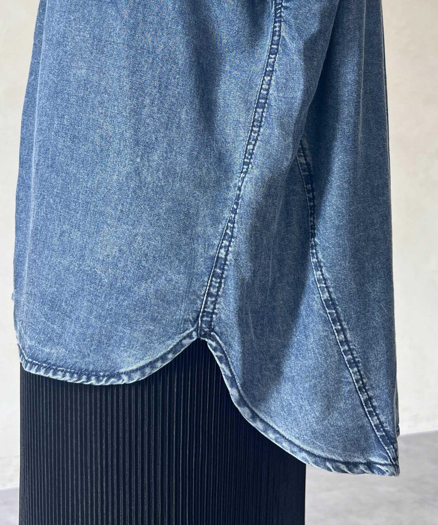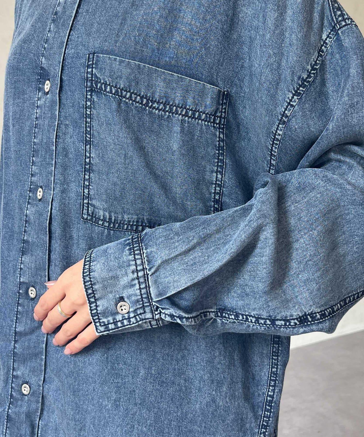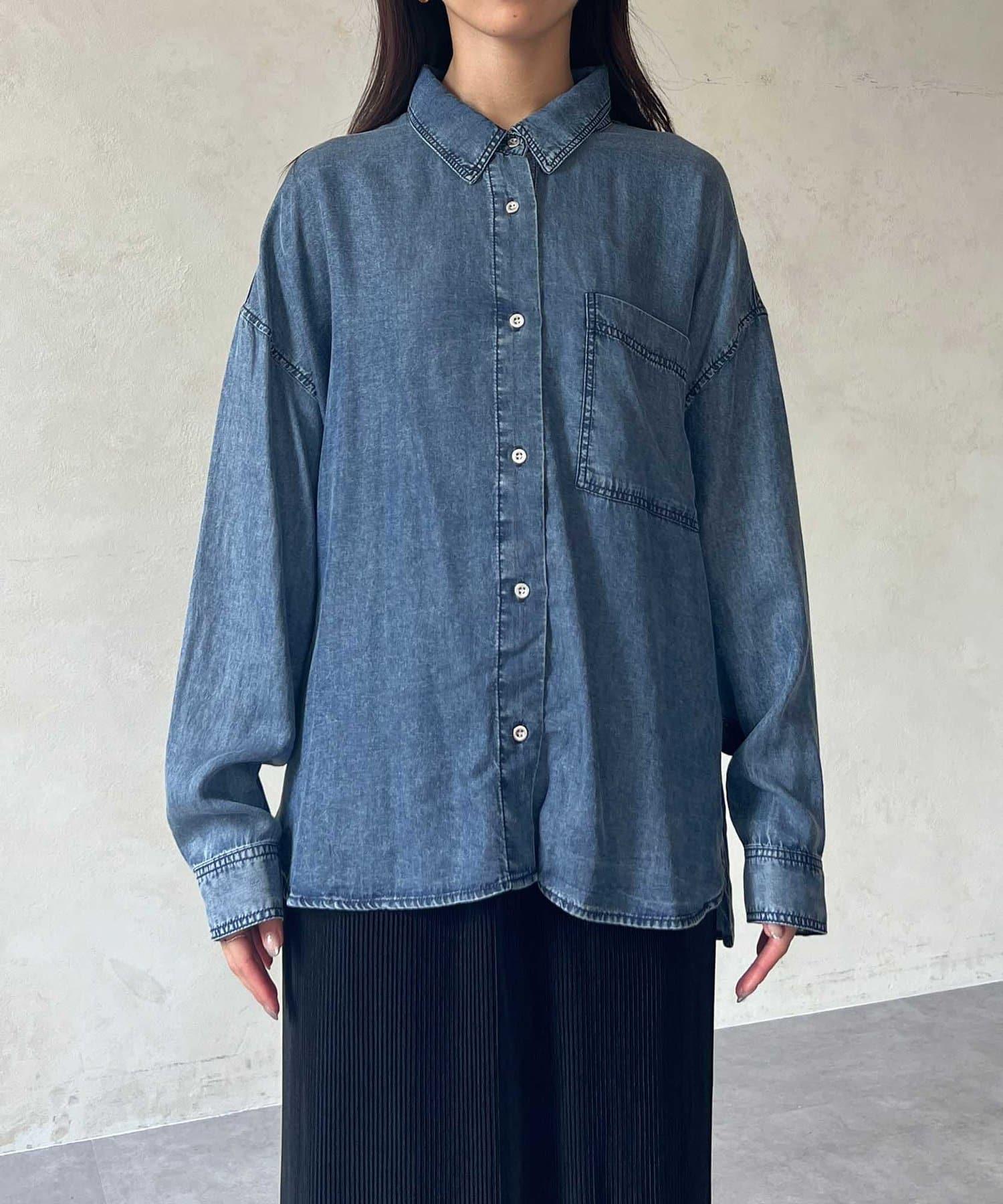 牛仔襯衫。採用天絲牛仔布,具有柔軟的秋季特色