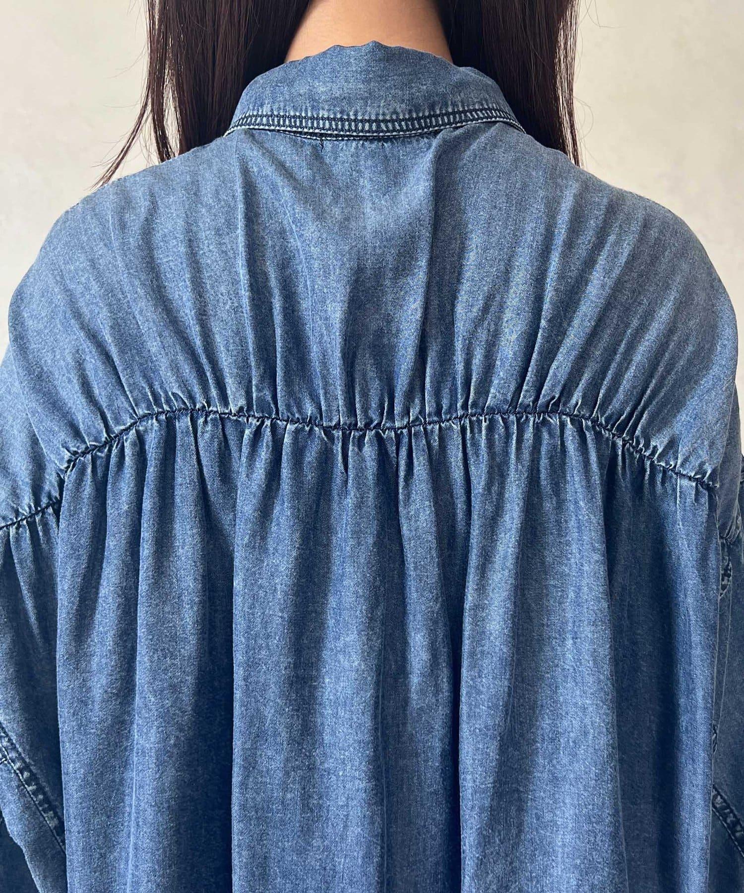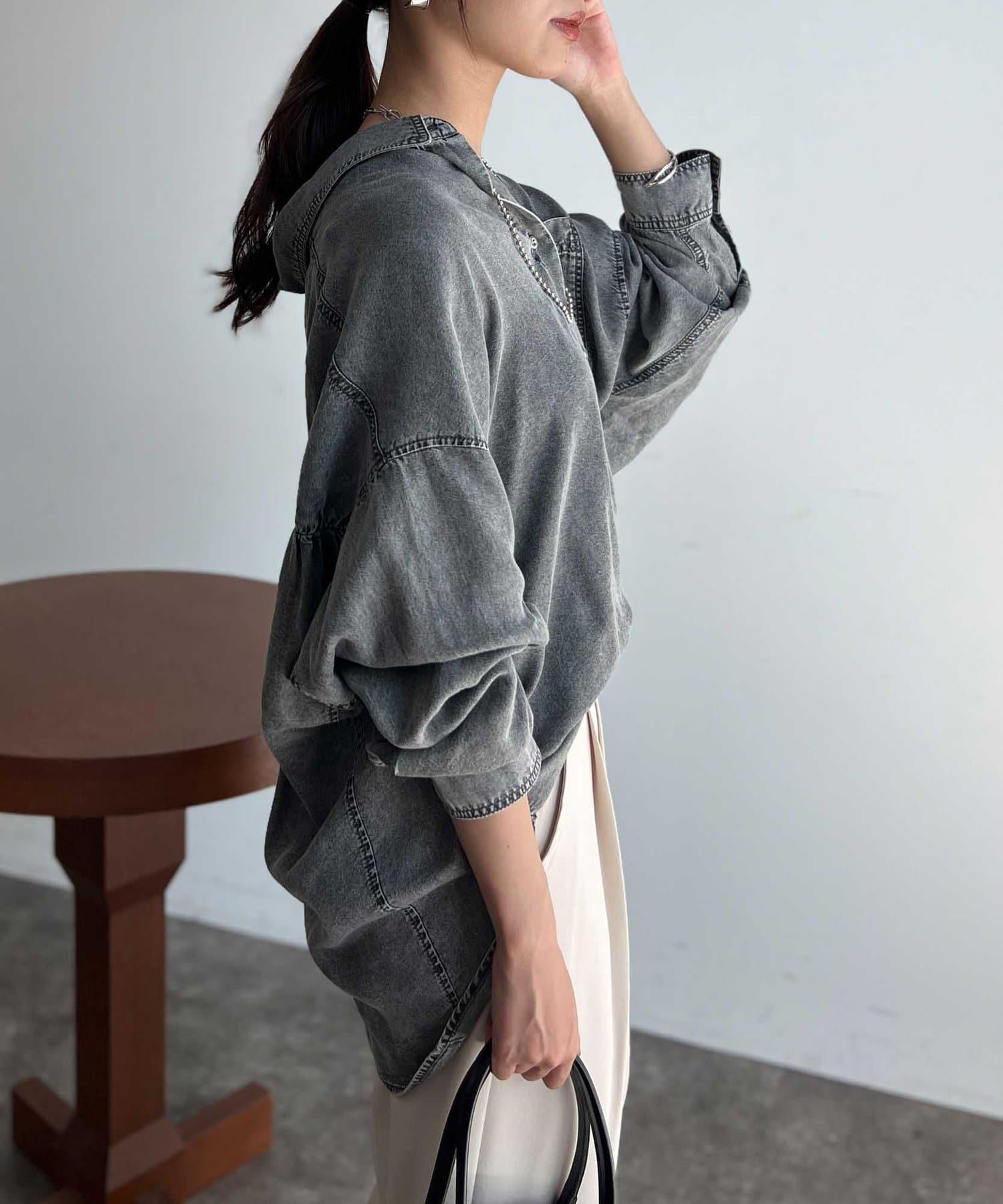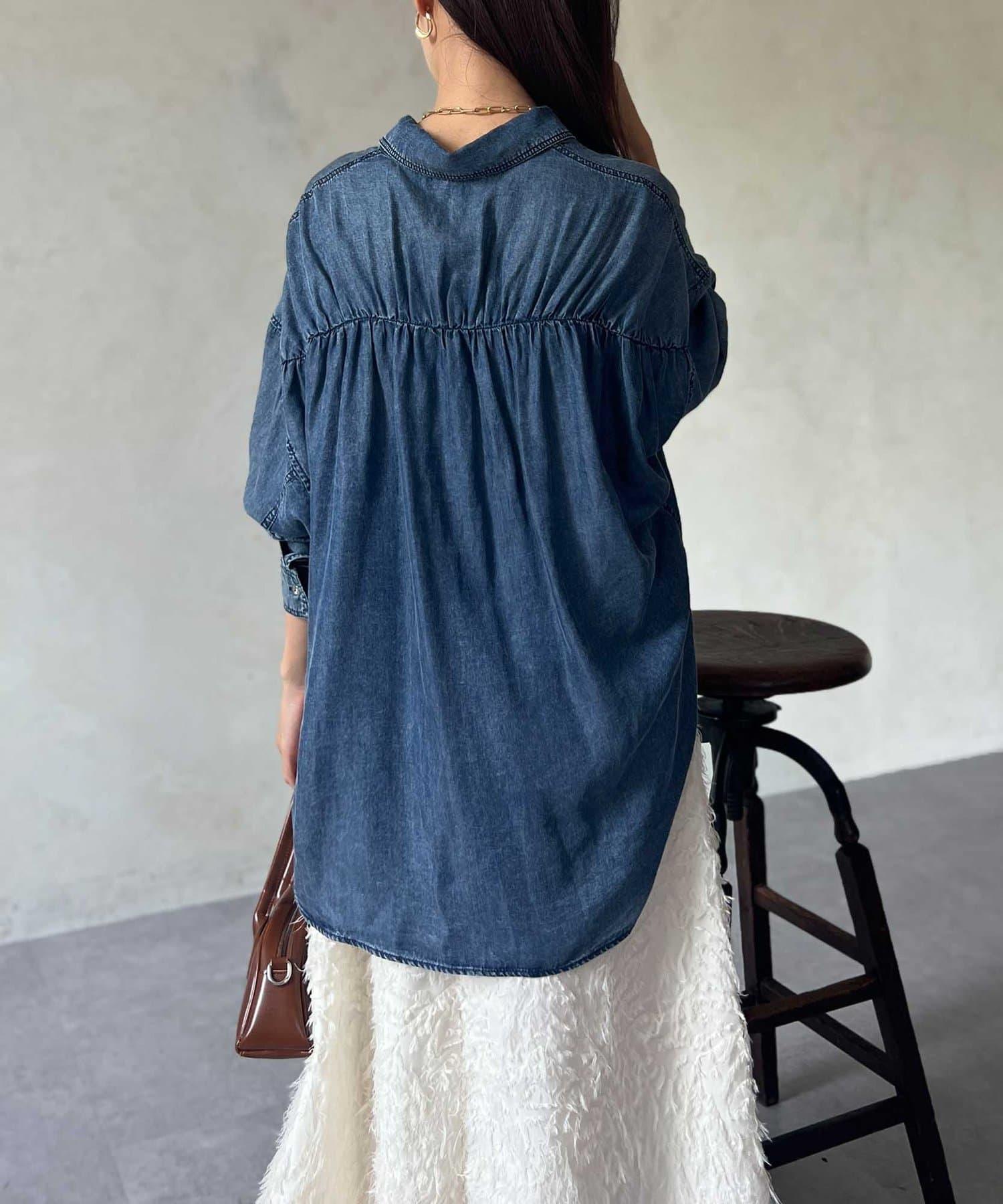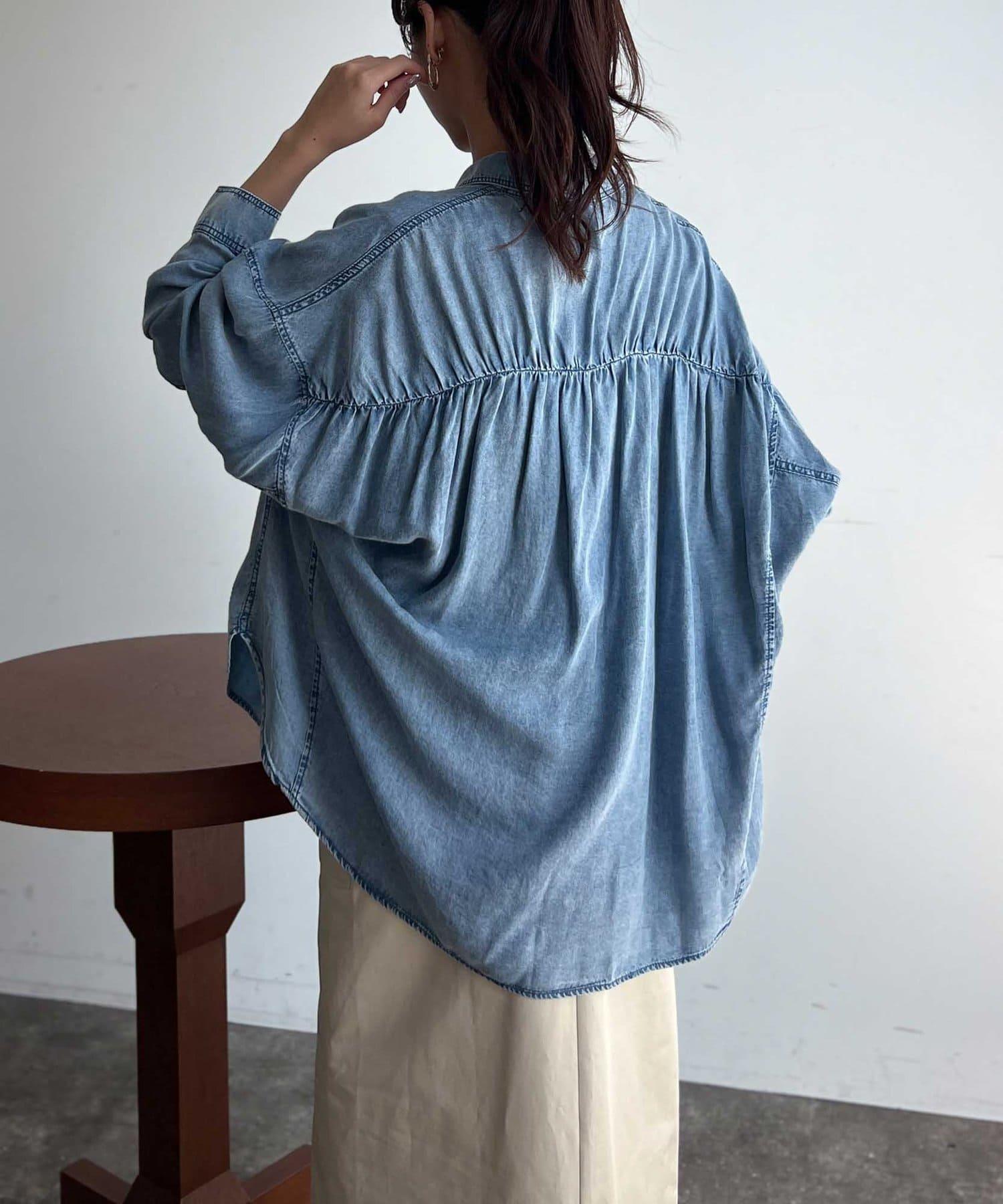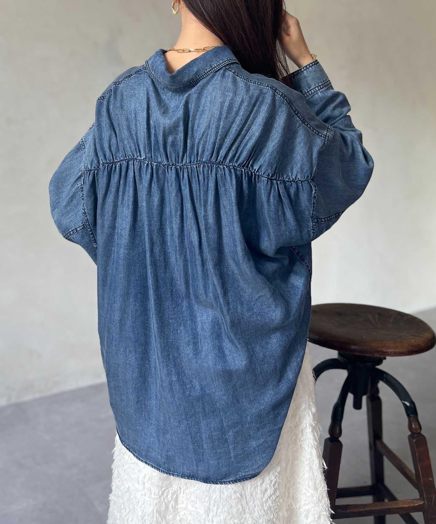 牛仔襯衫。採用天絲牛仔布,具有柔軟的秋季特色