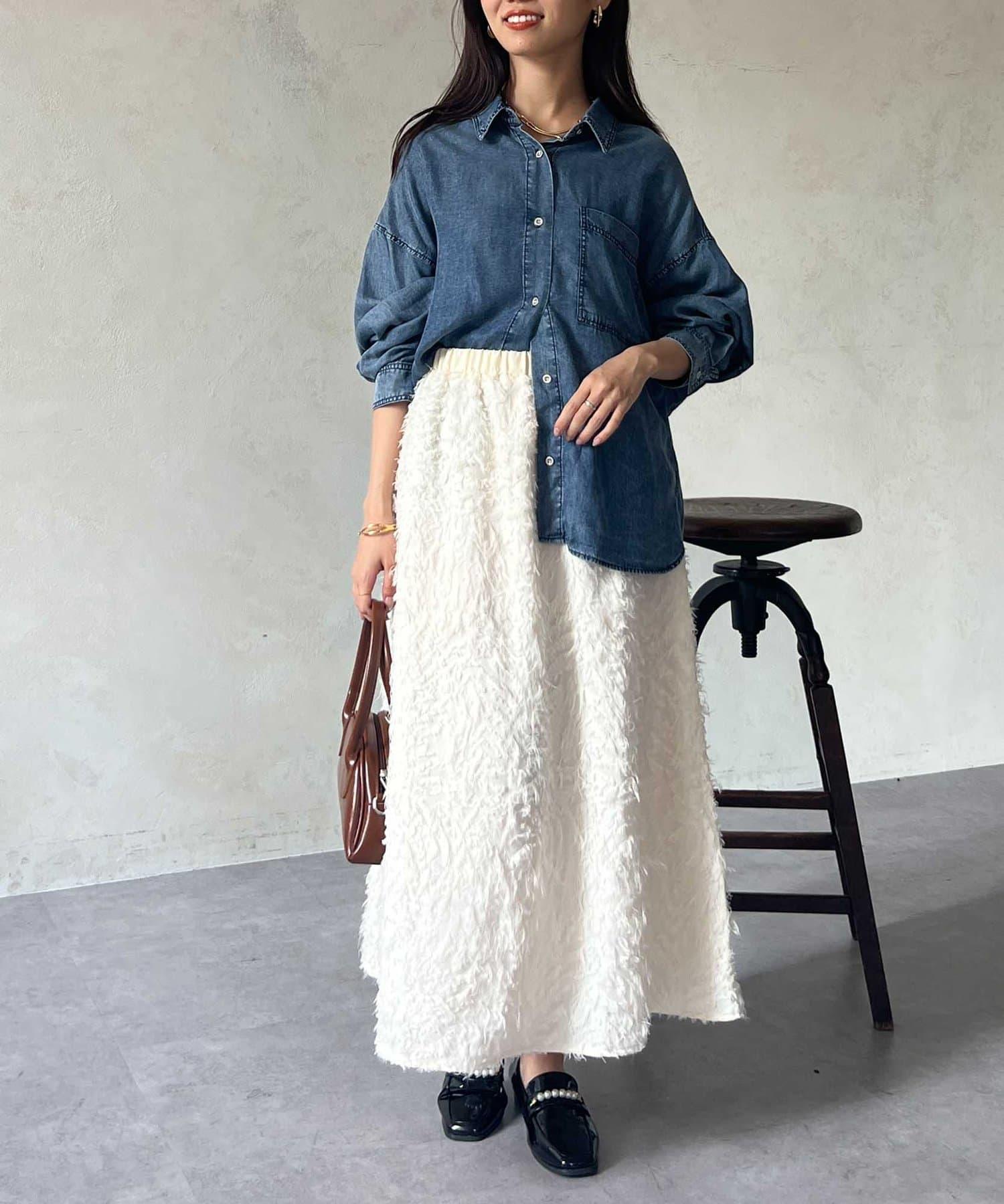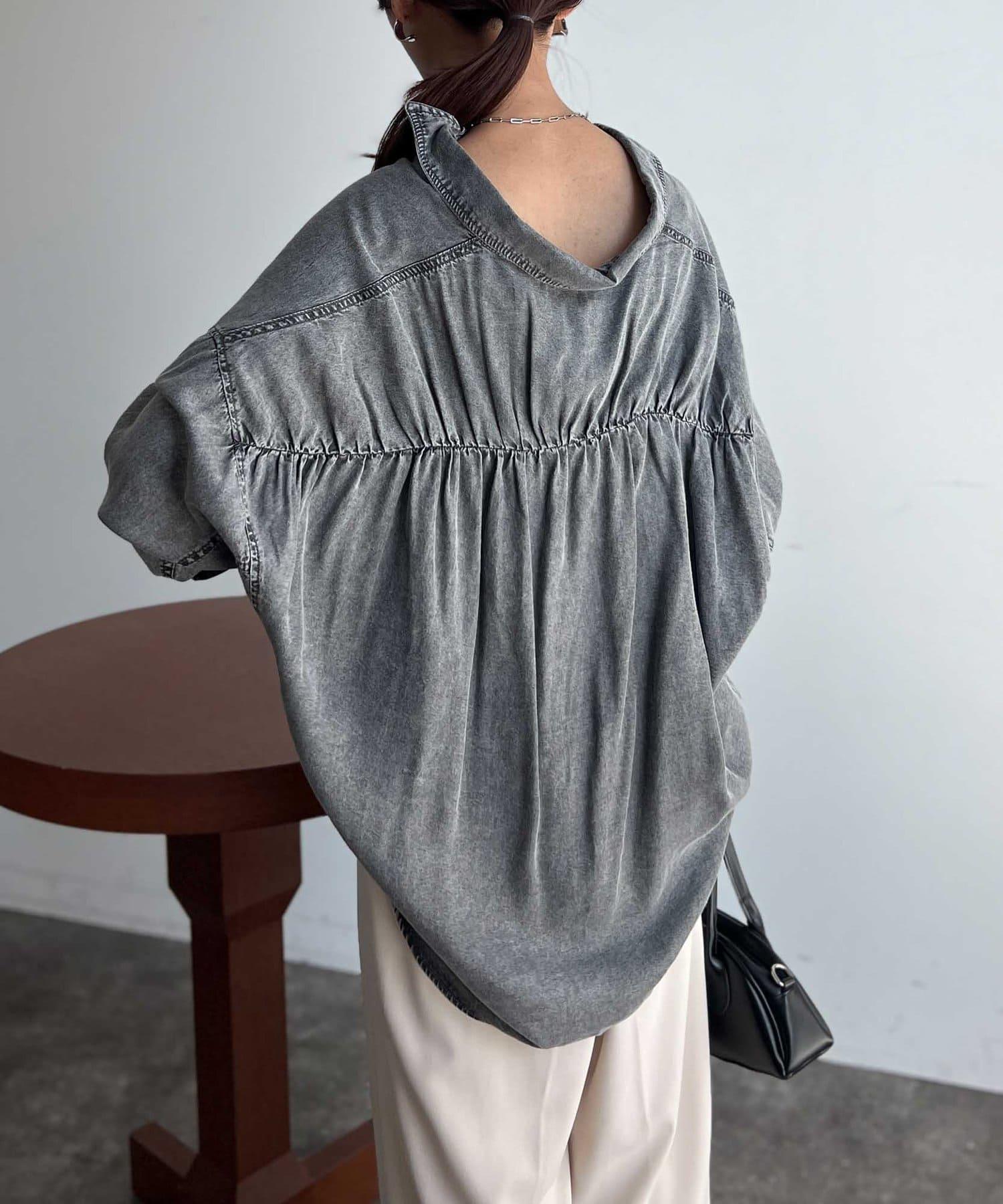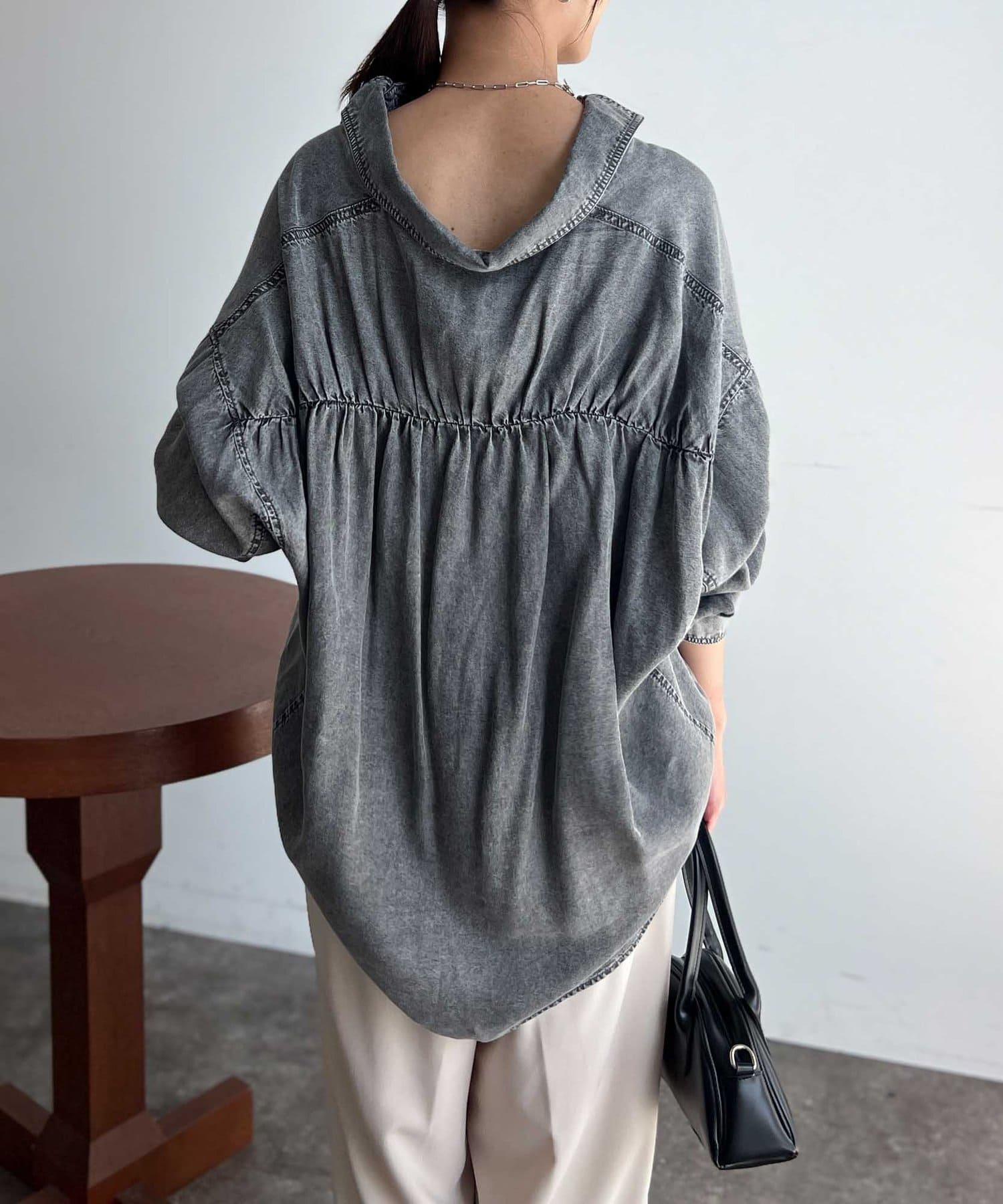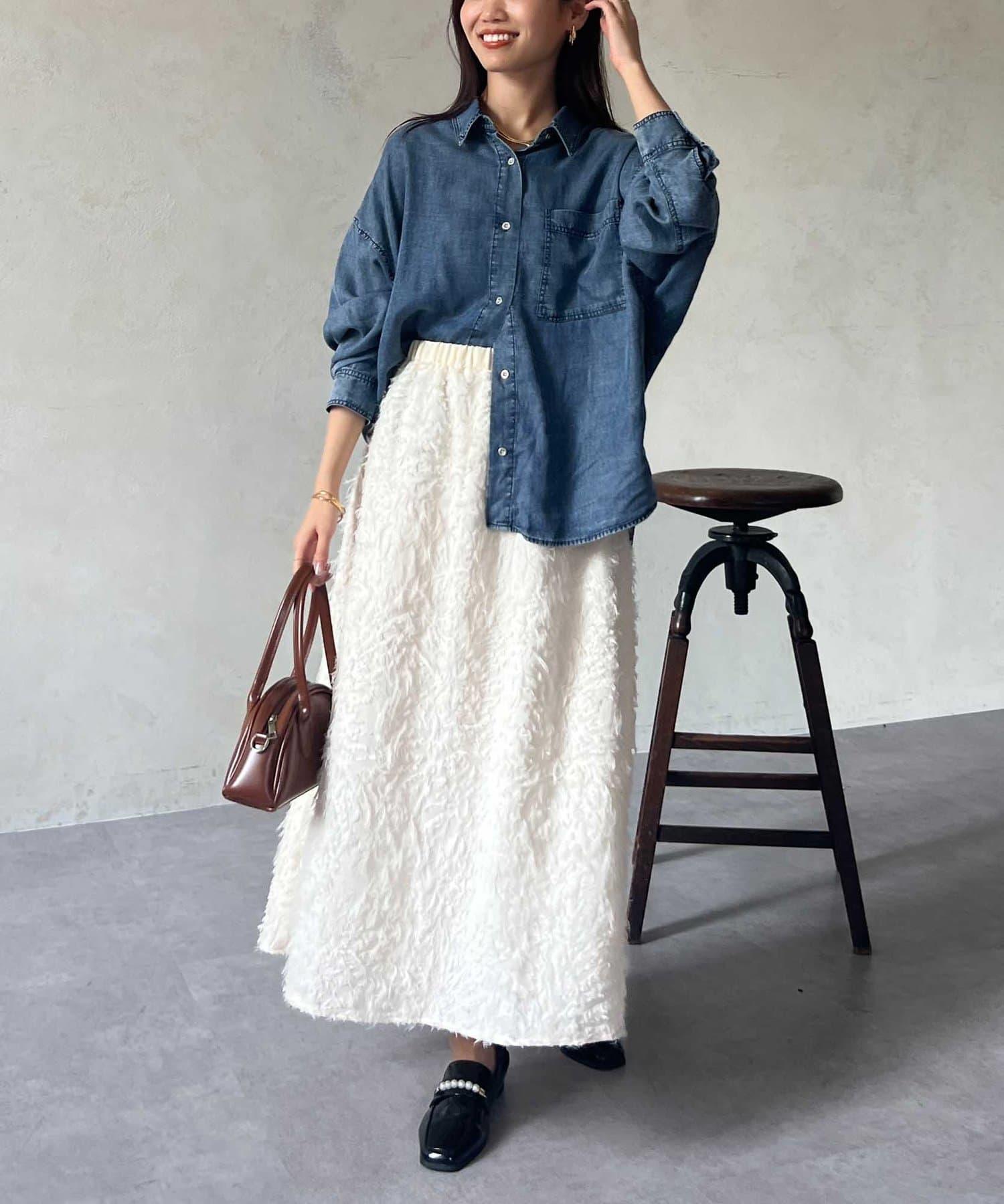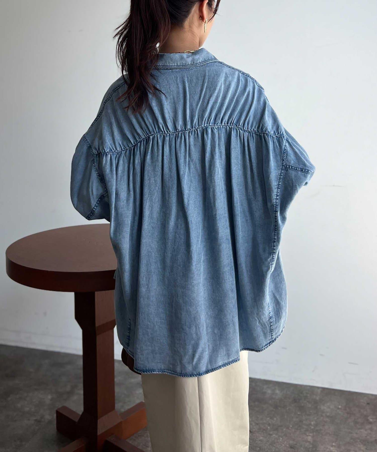 牛仔襯衫。採用天絲牛仔布,具有柔軟的秋季特色