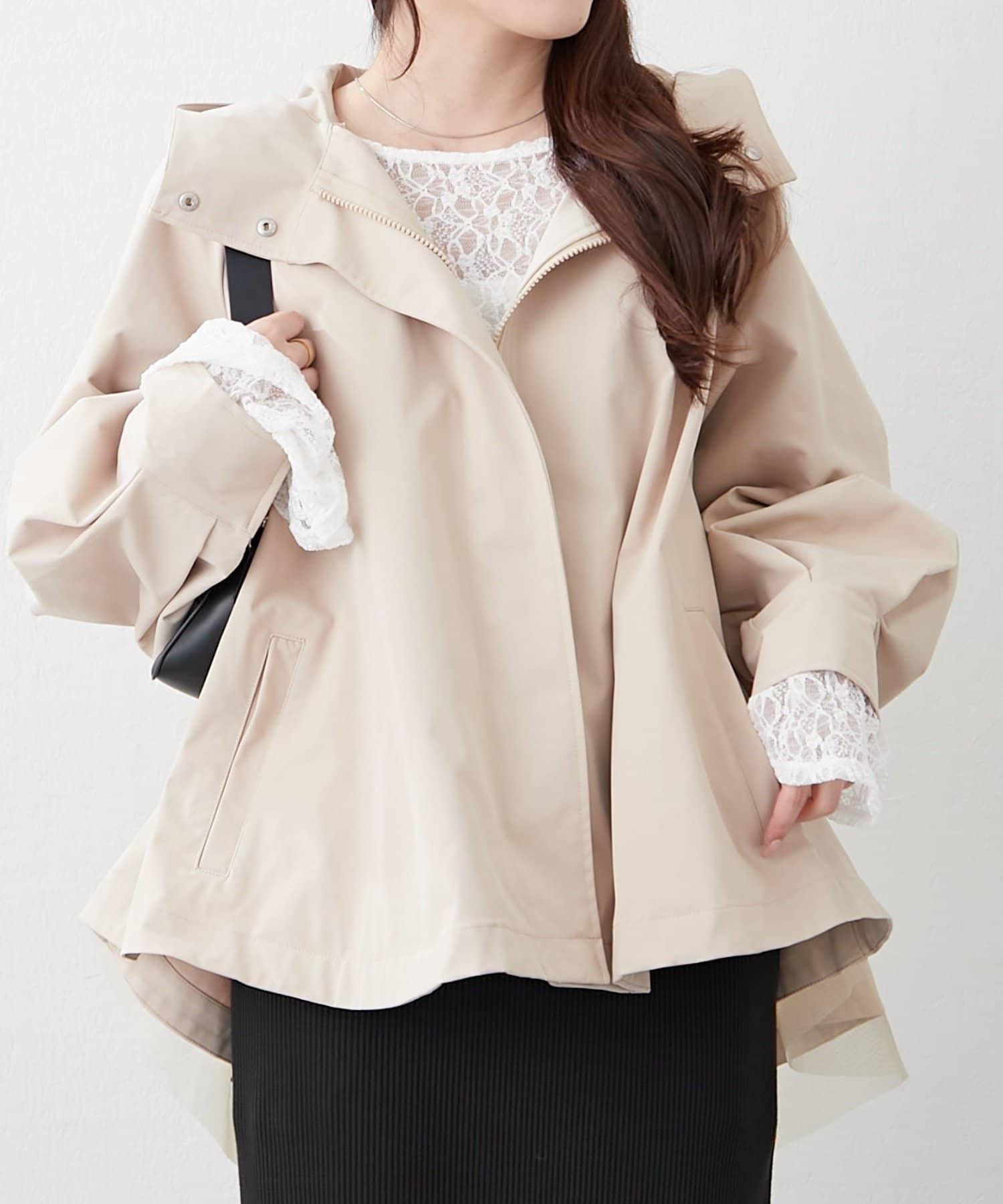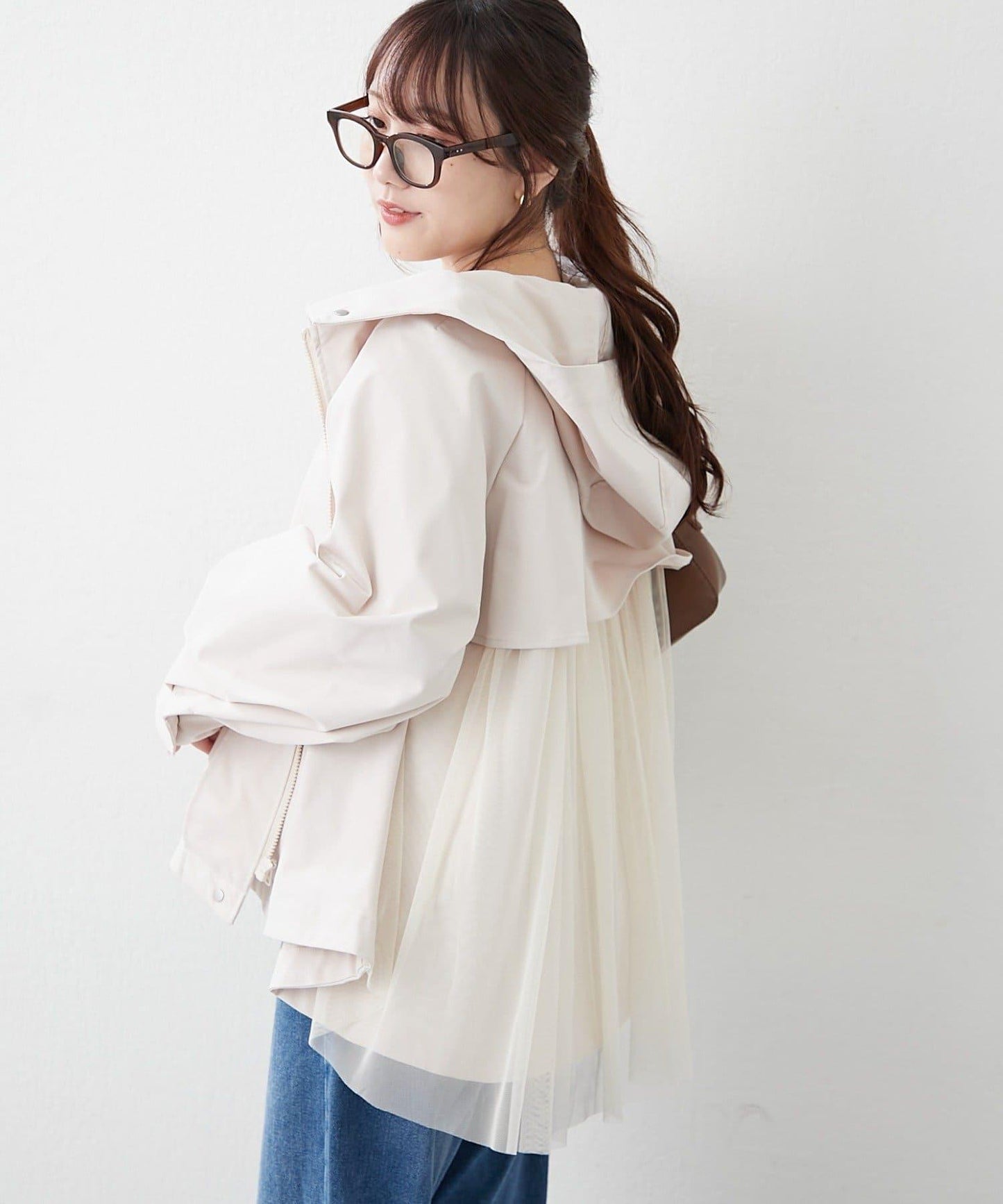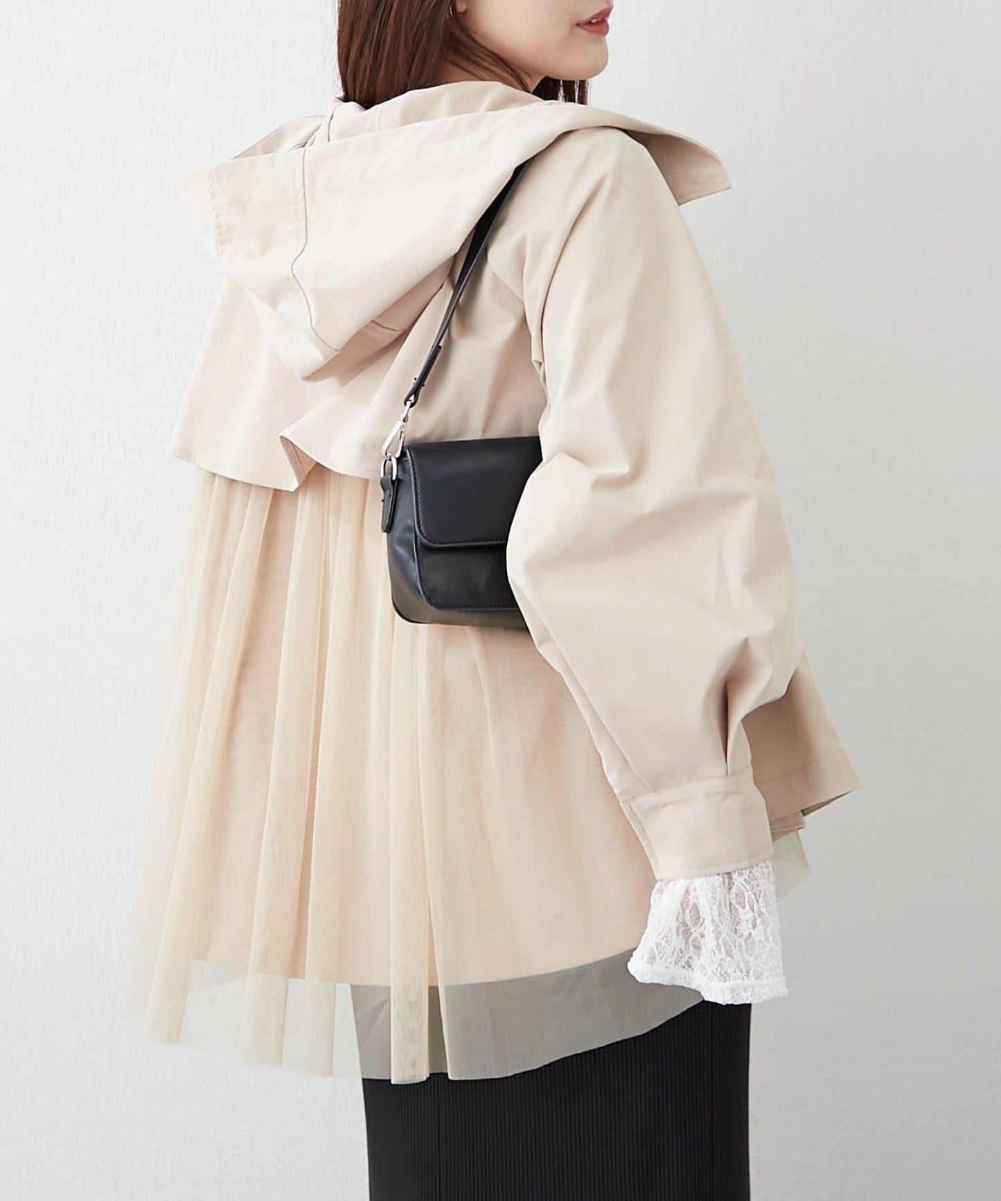 背部薄紗設計的山地風雪大衣,一直到背部都很可愛。