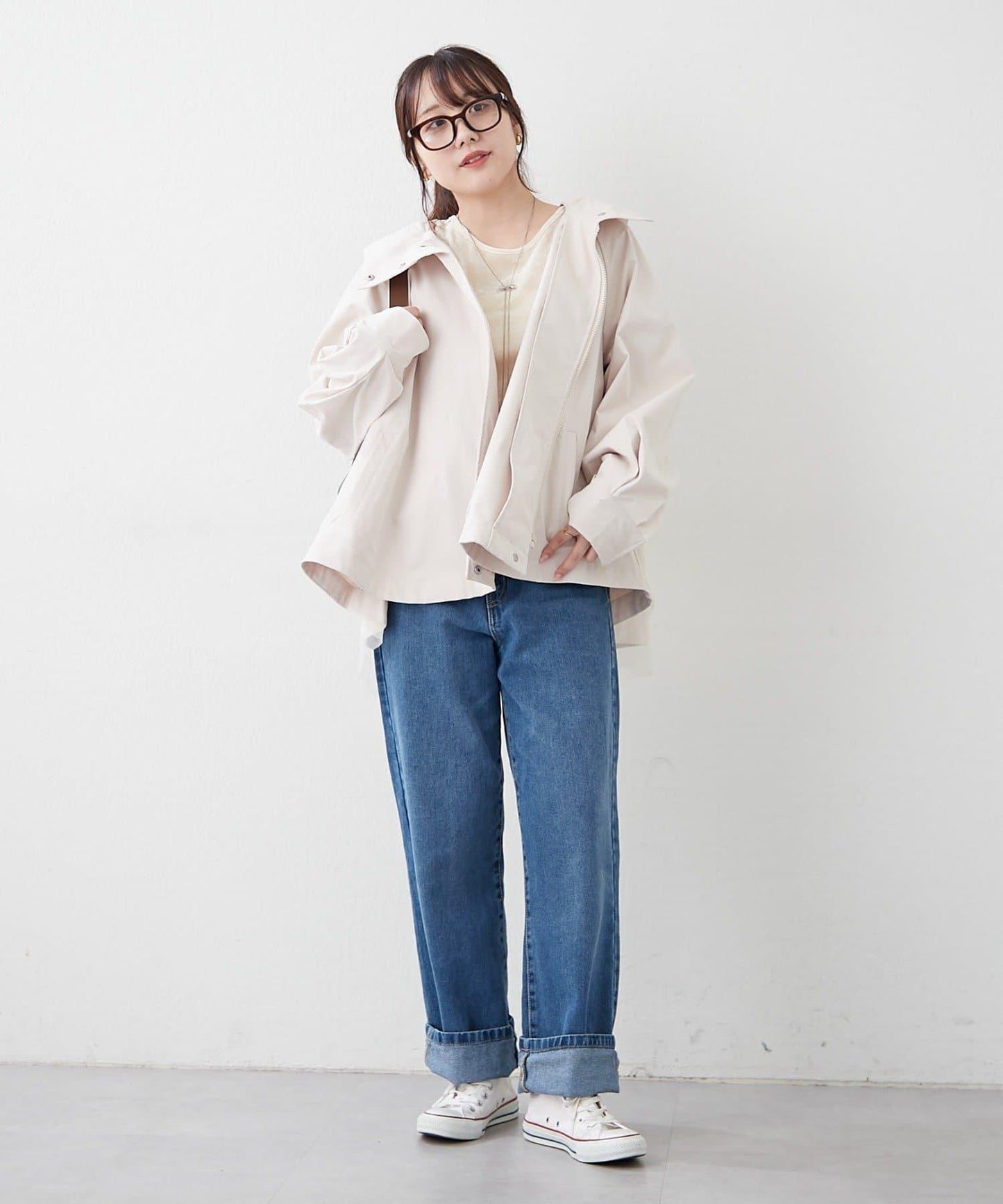 也可搭配牛仔短褲和運動鞋,營造活躍的場景。