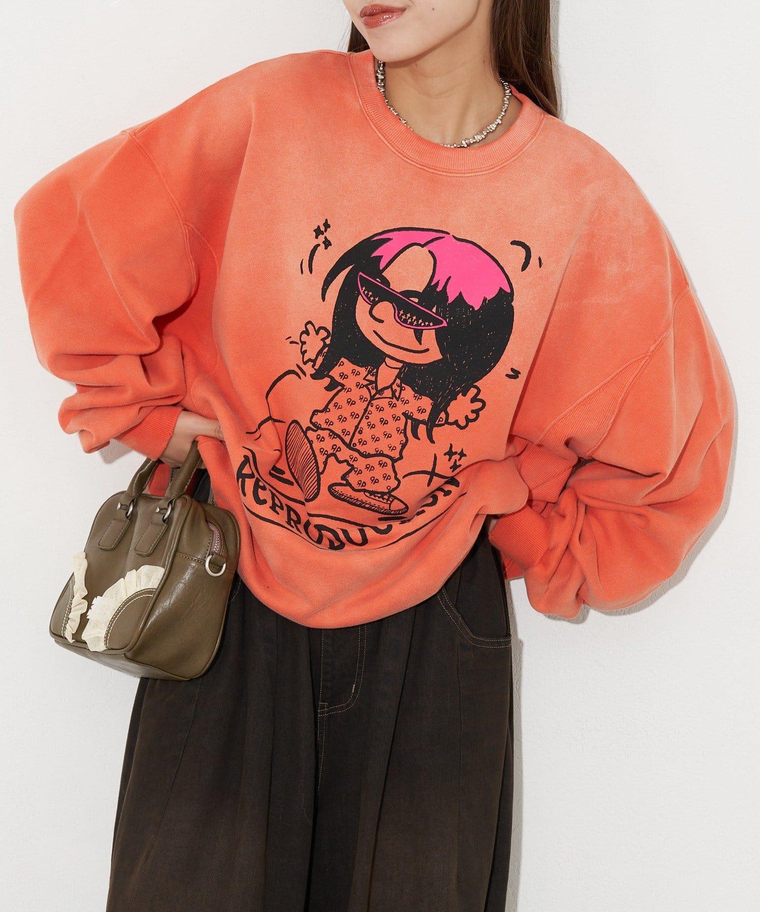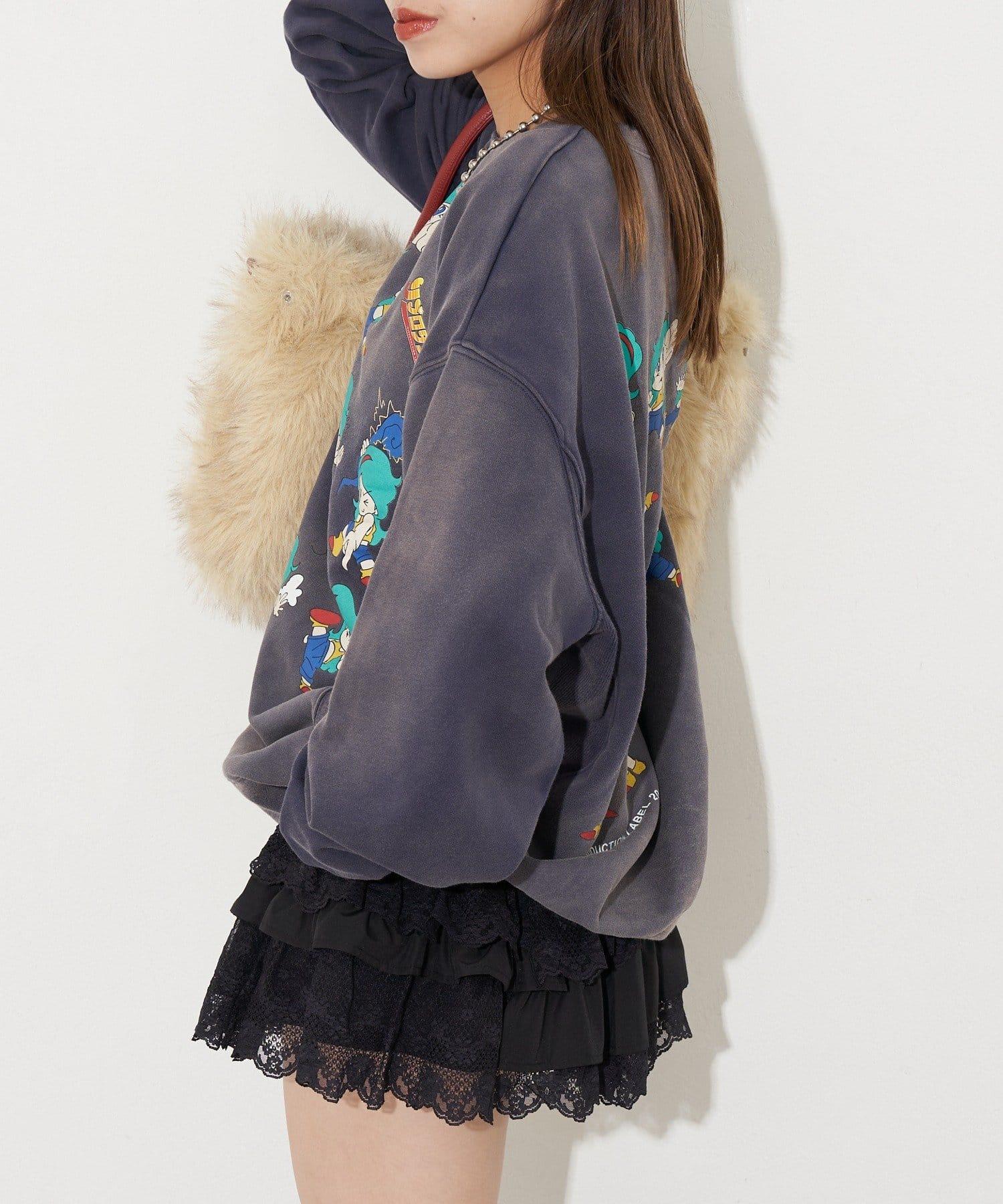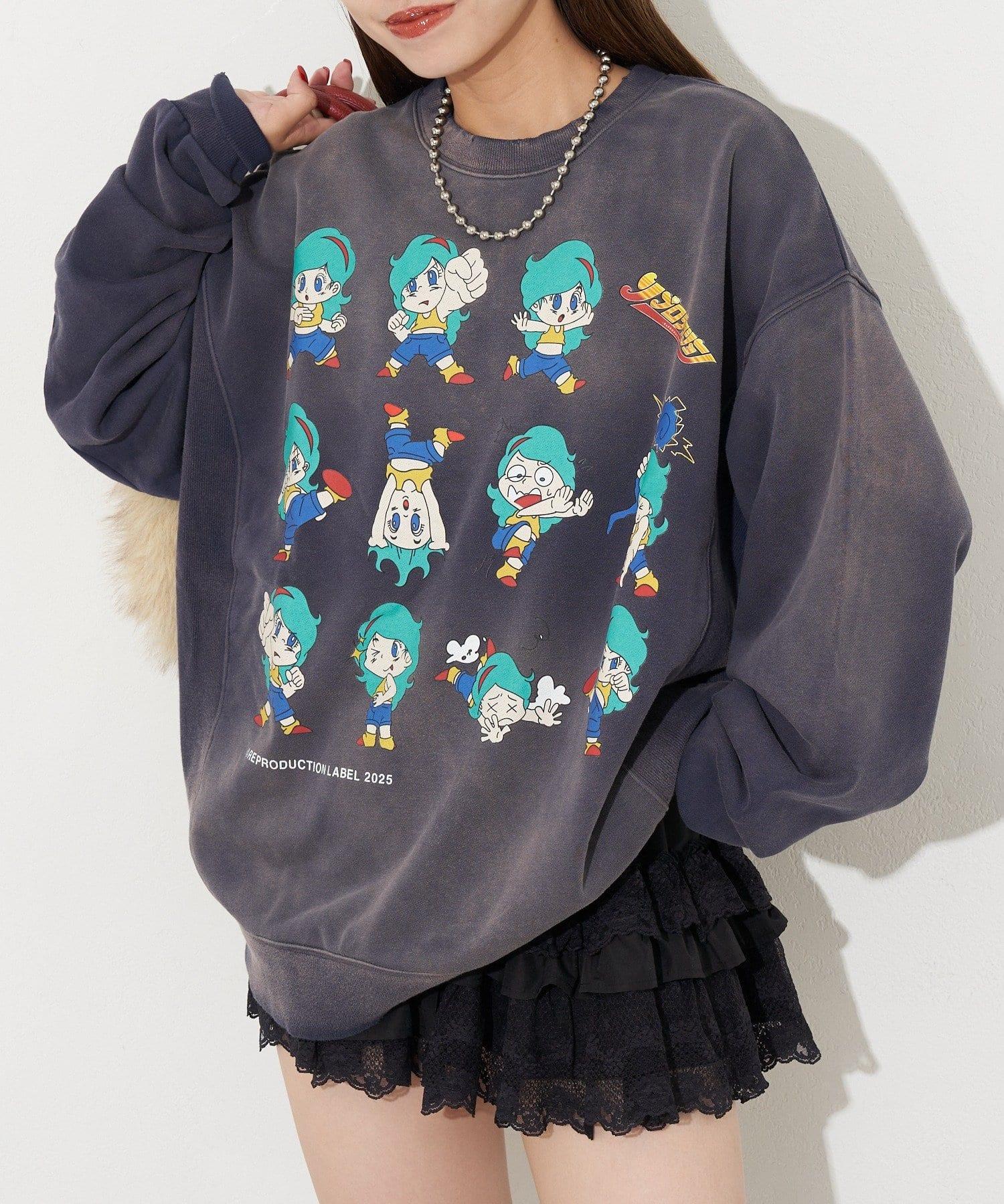 復古感十足的超大號運動衫,俏皮的印花設計。