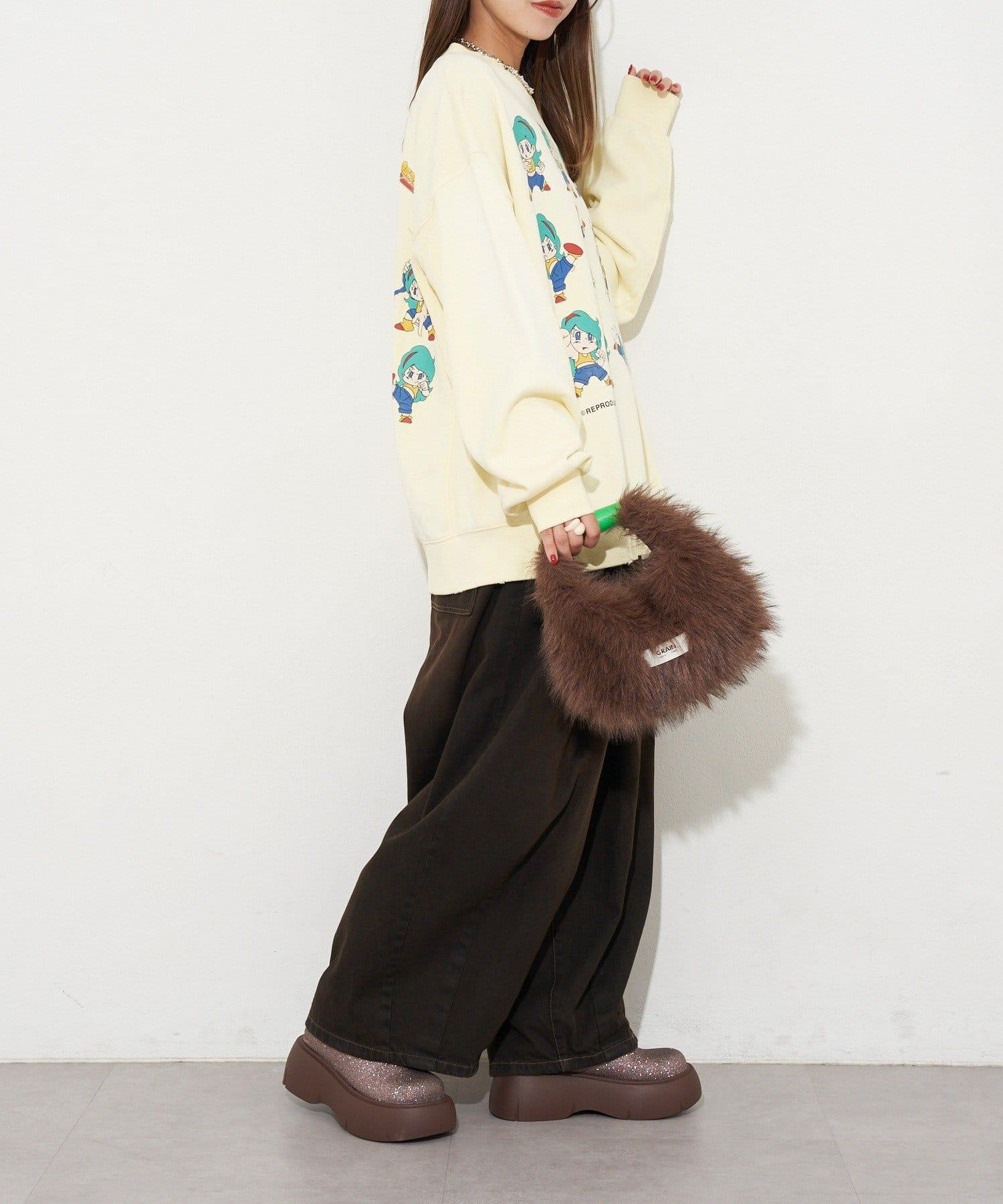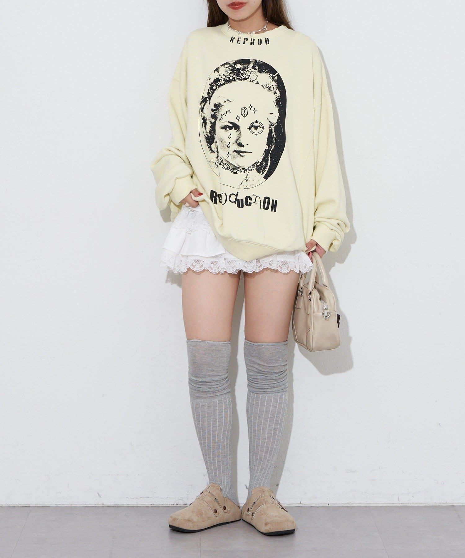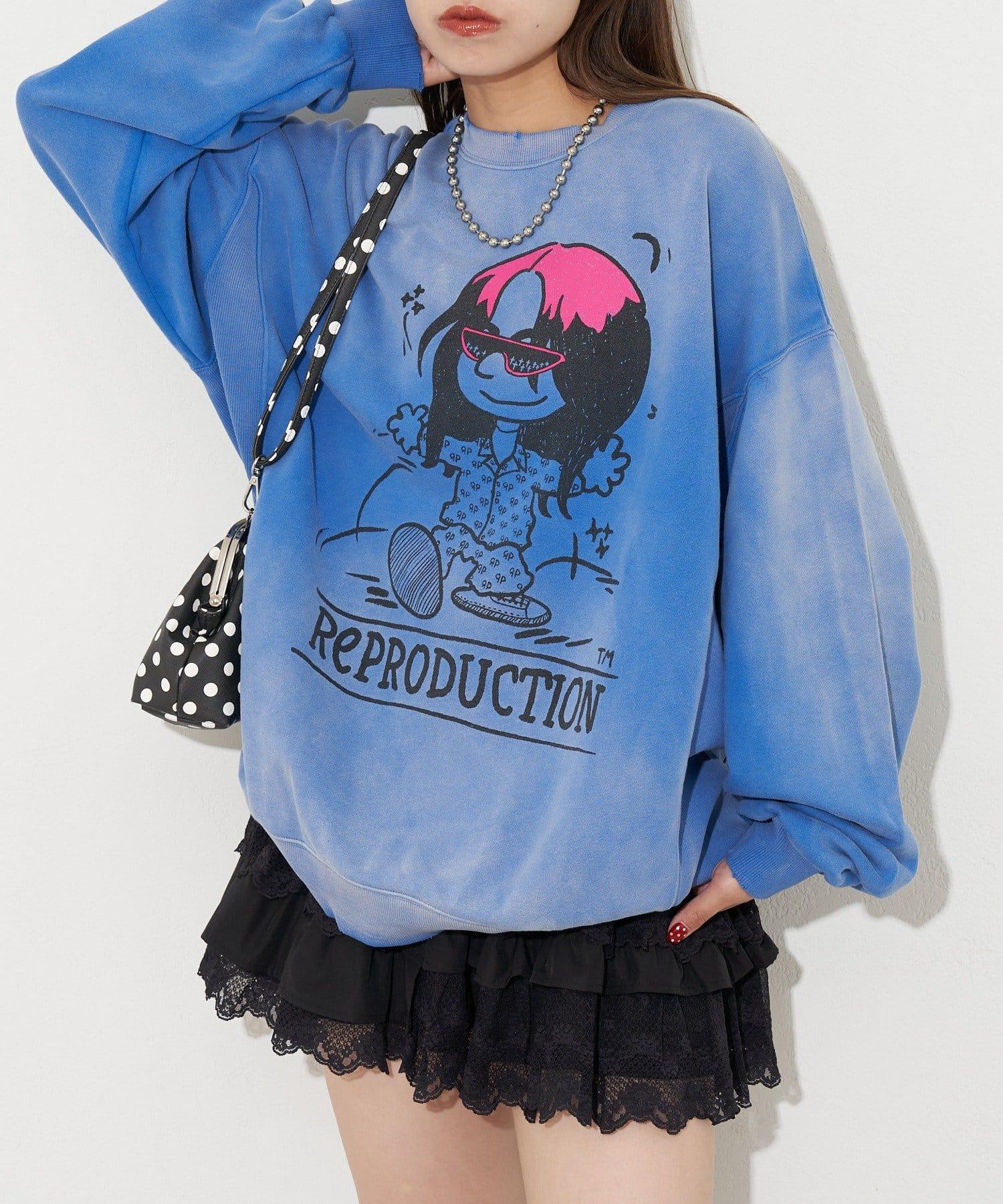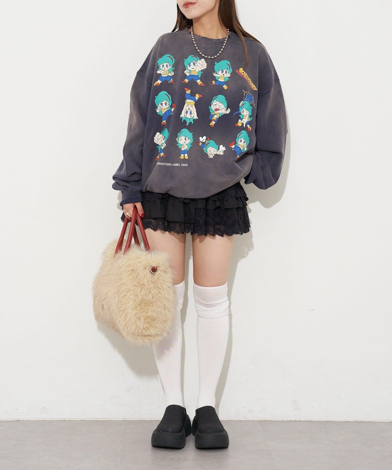 復古感十足的超大號運動衫,俏皮的印花設計。