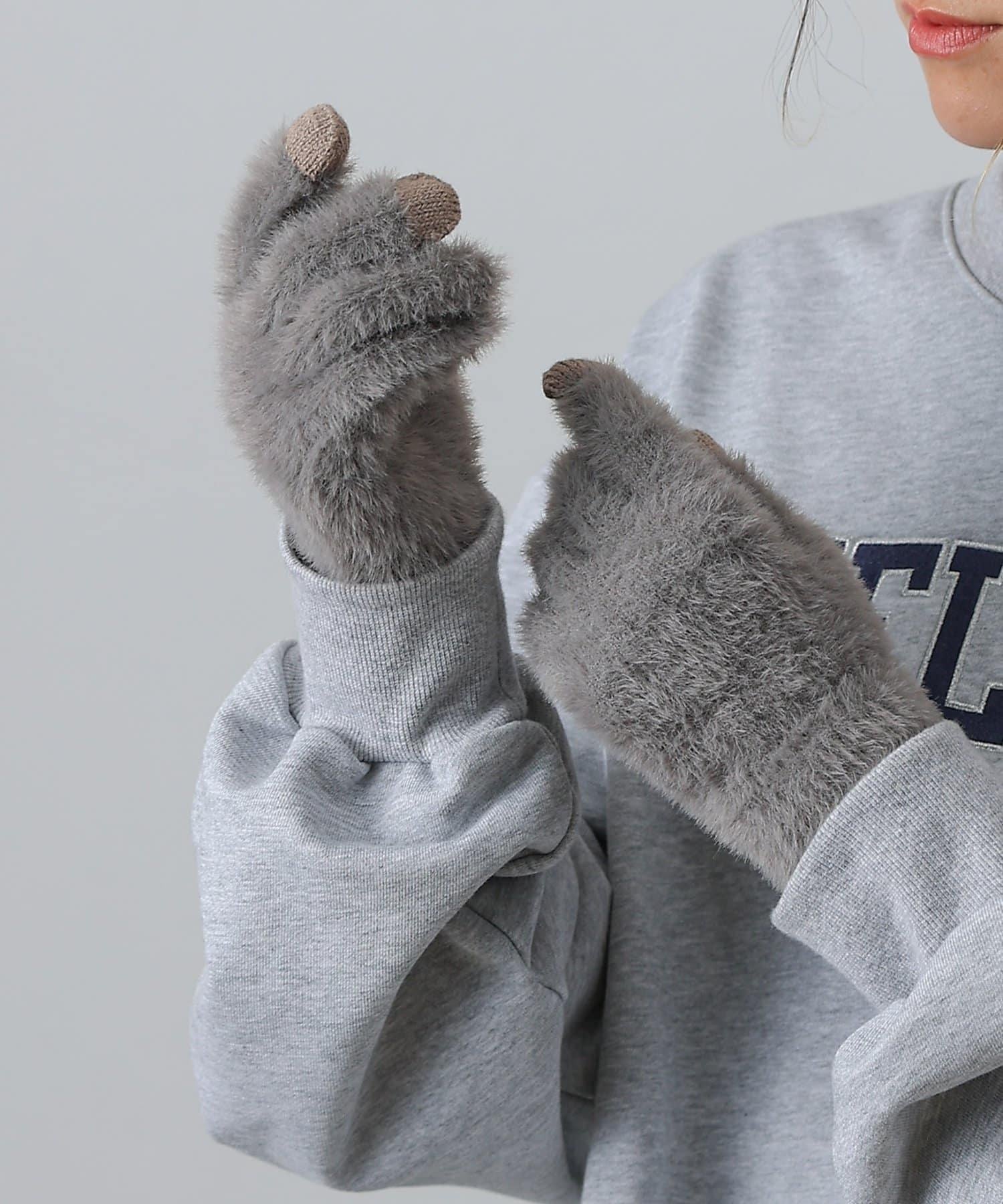 [實用的馬海毛風格智能手機手套。