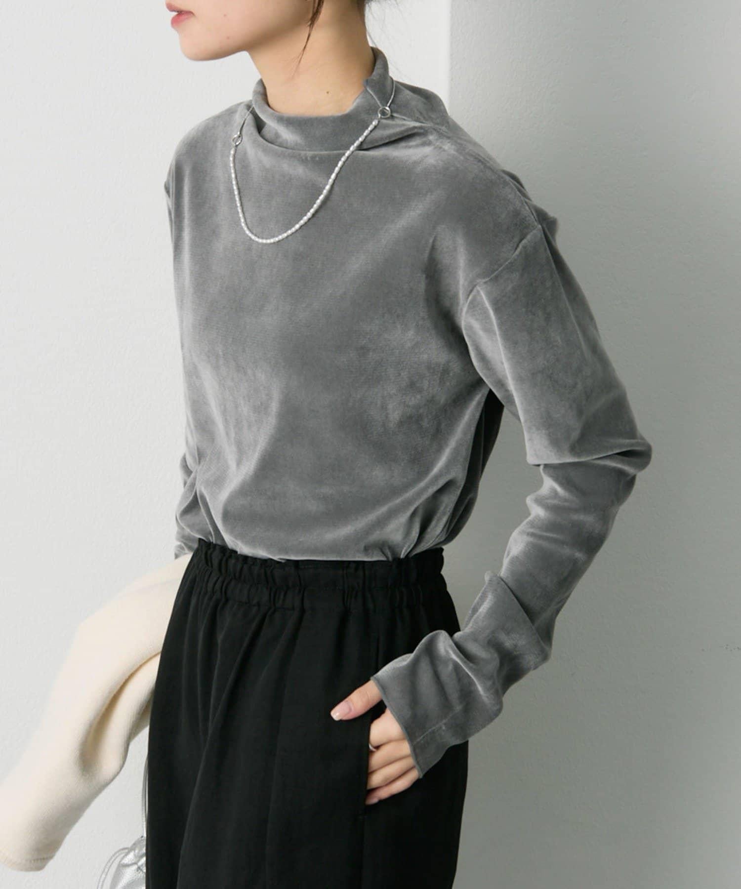 預約商品【/復刻】尼龍網紗天鵝絨高領上衣