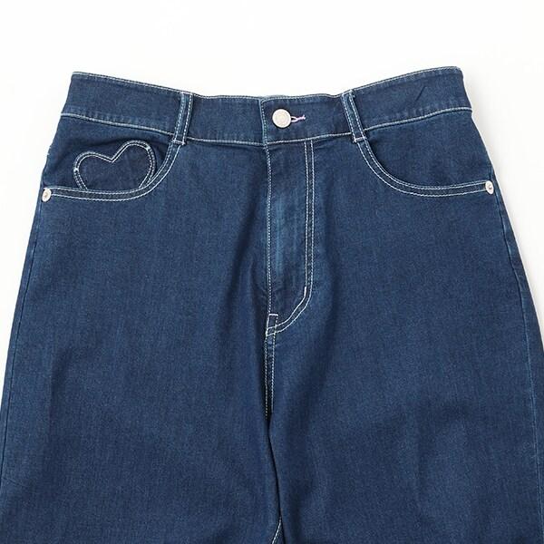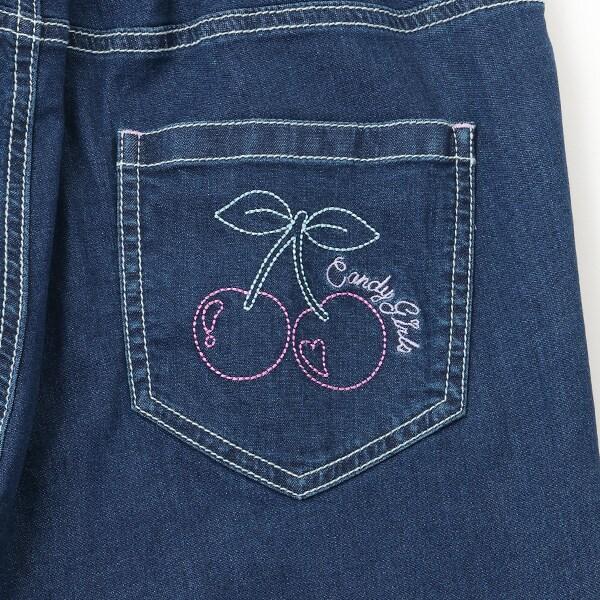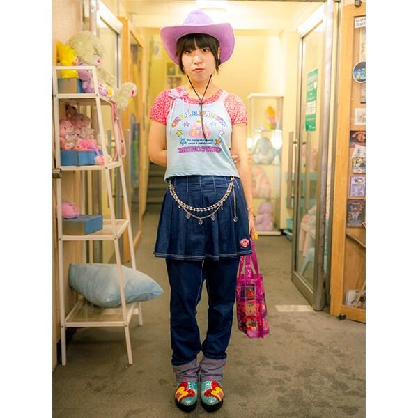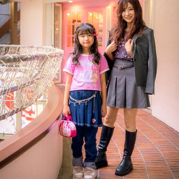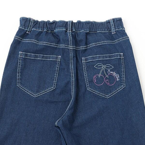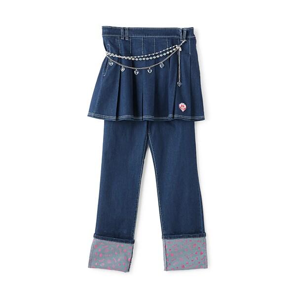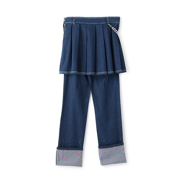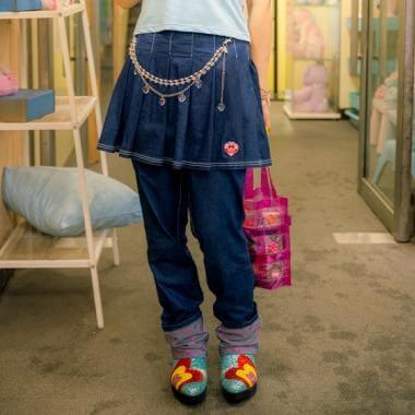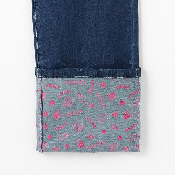 長褲設計為下襬向後摺疊穿著。摺疊的部分印有獨創的薄片印花,十分可愛。