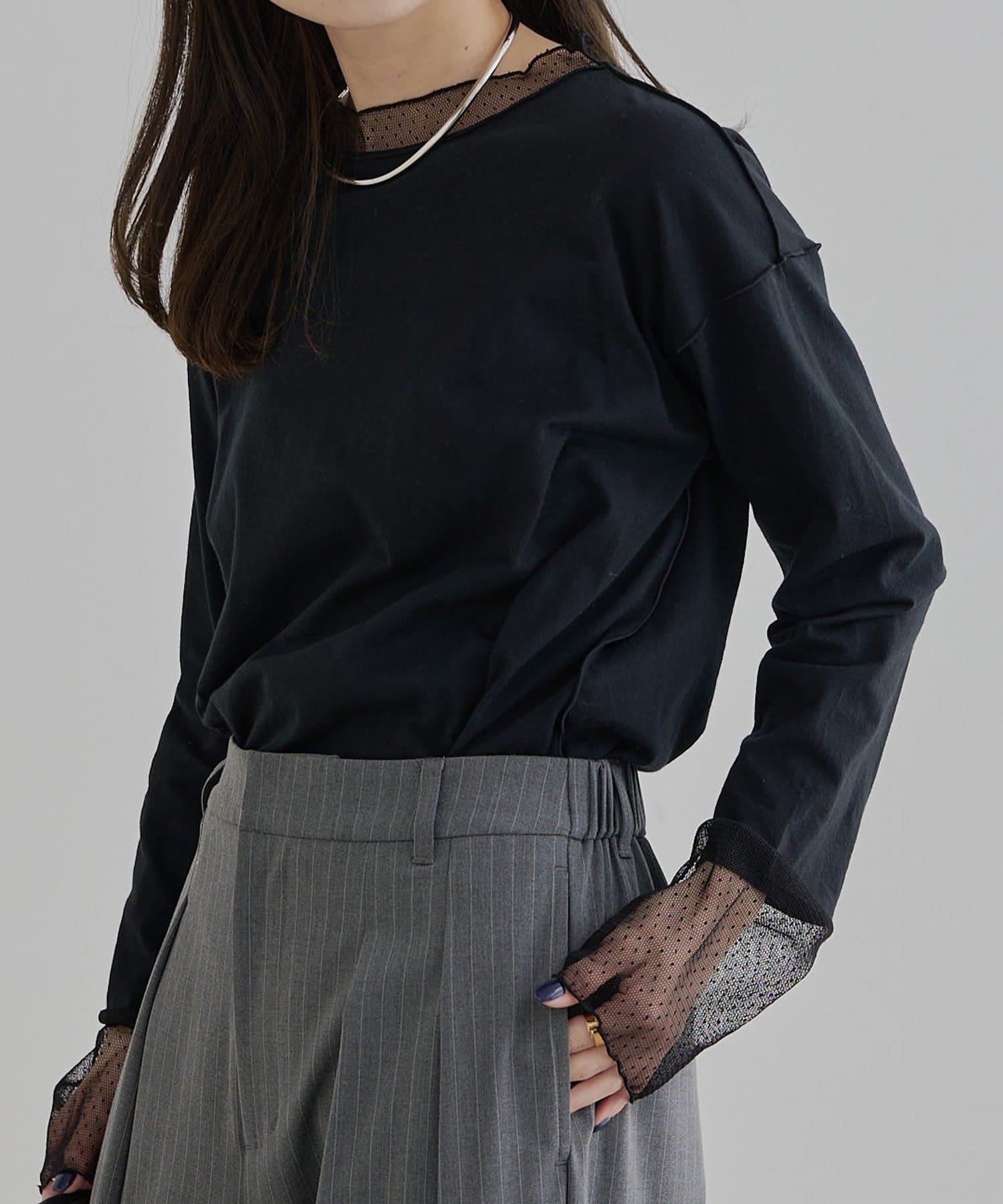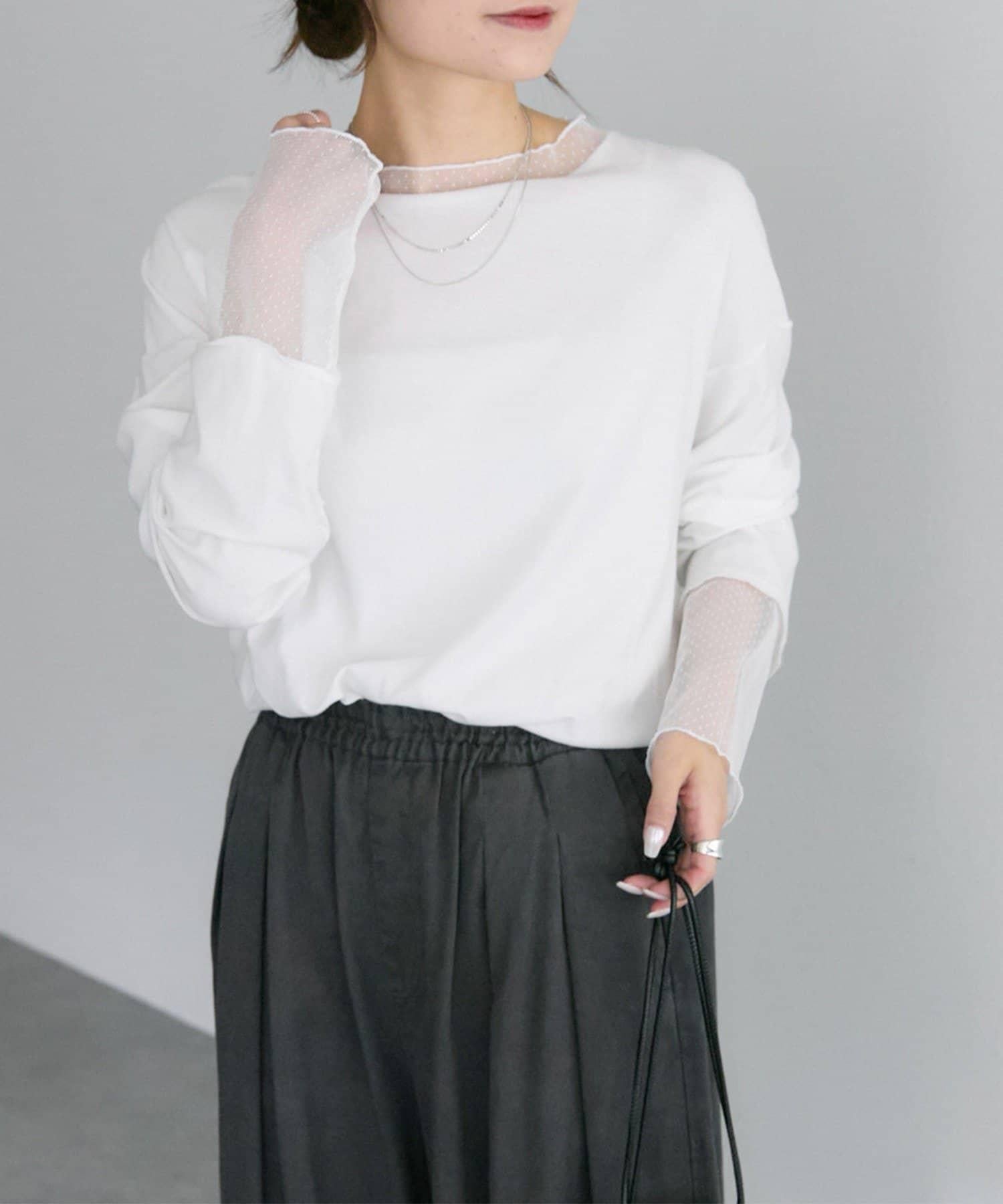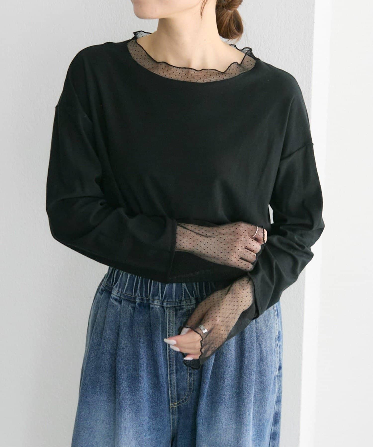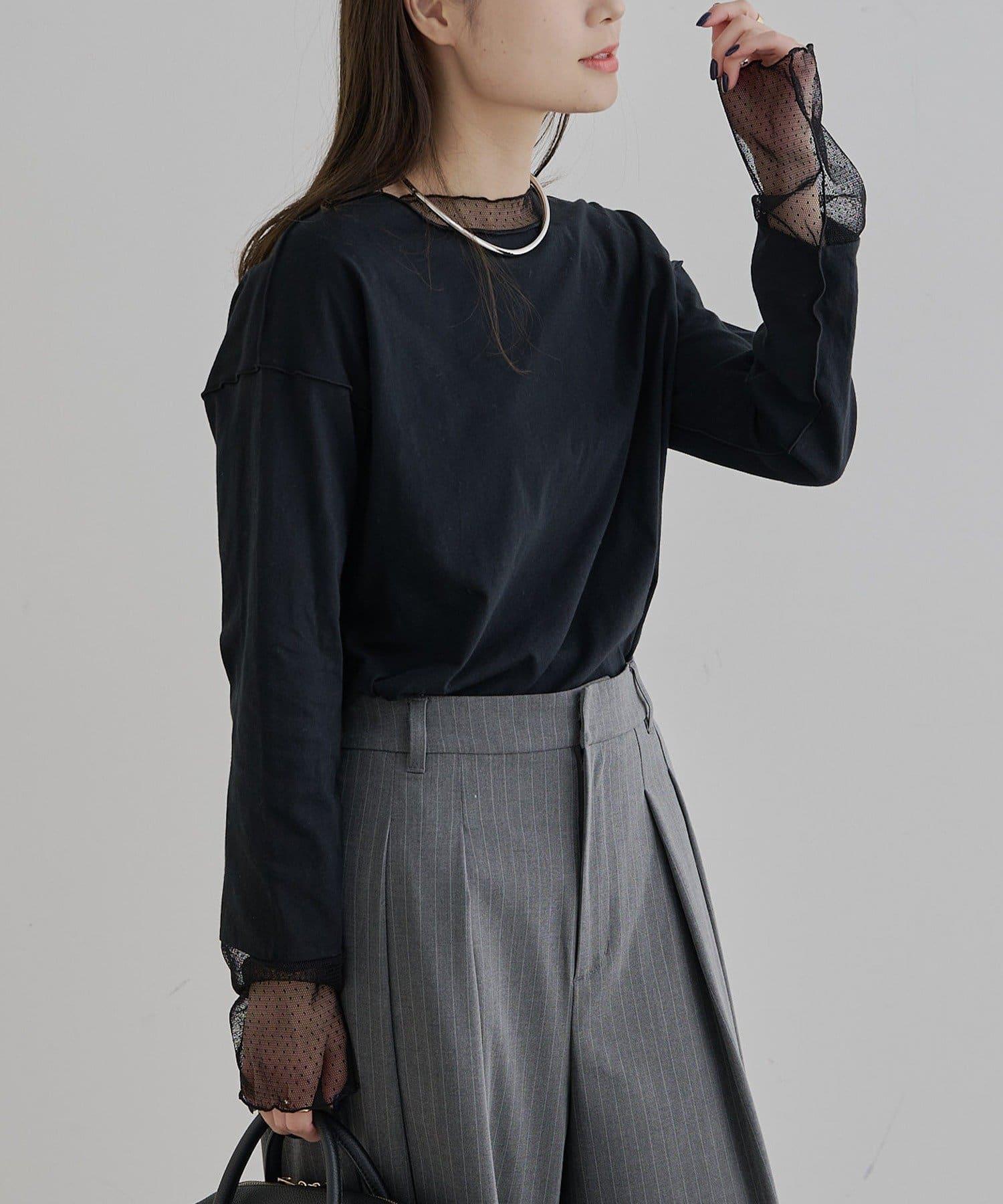 預約商品【復刻】波點網紗拼接疊穿長袖T恤
