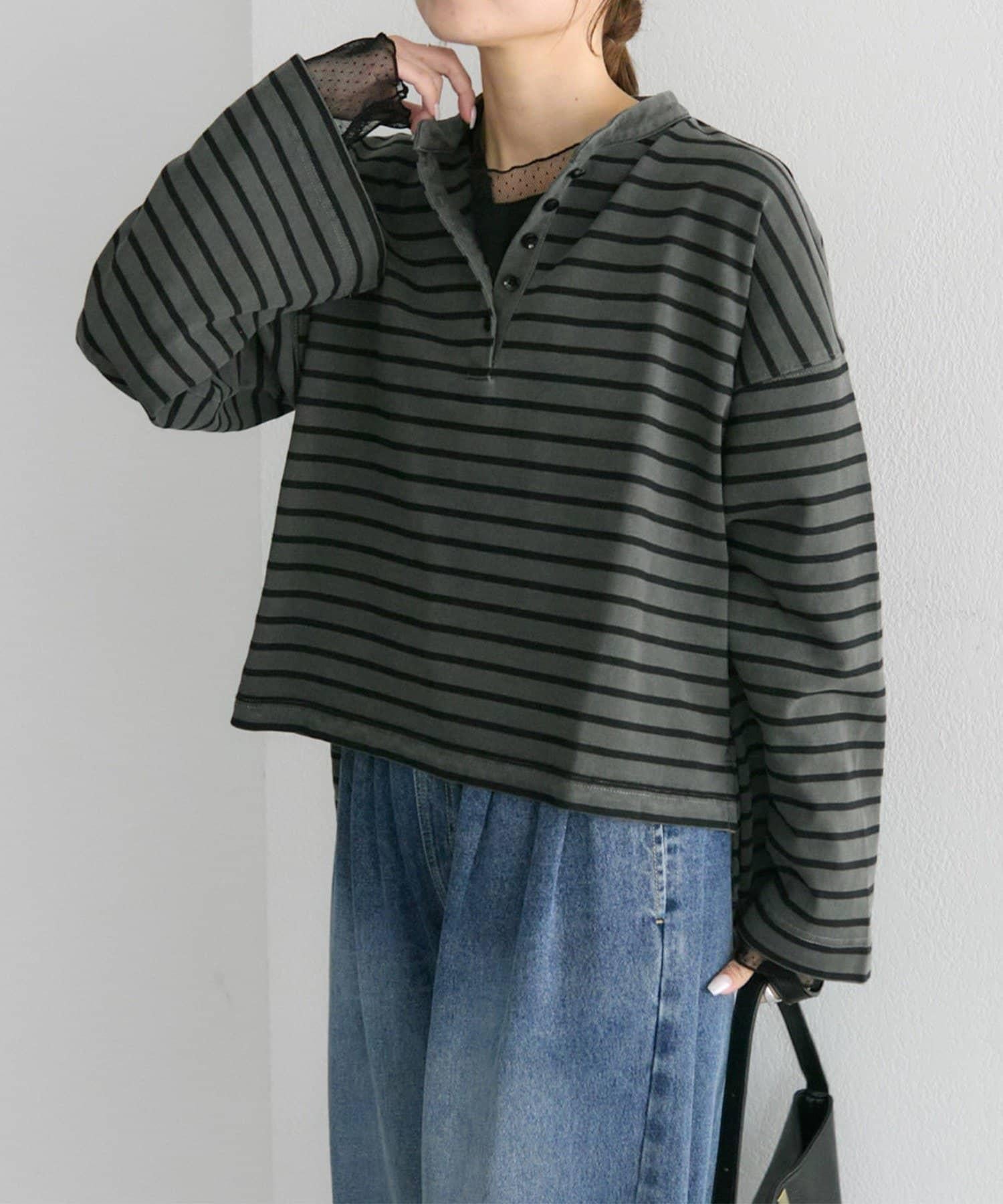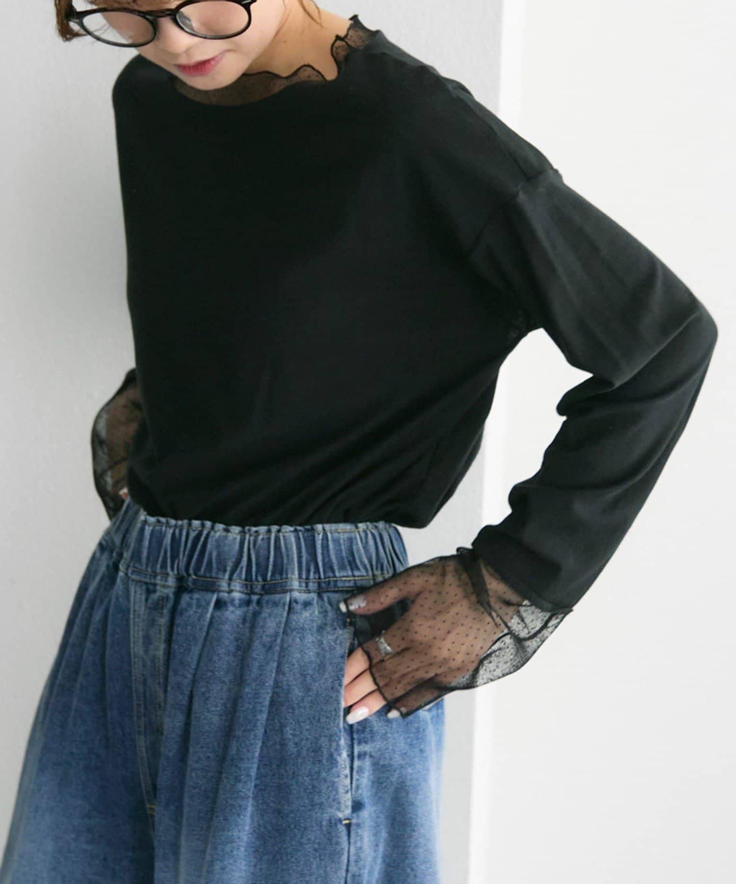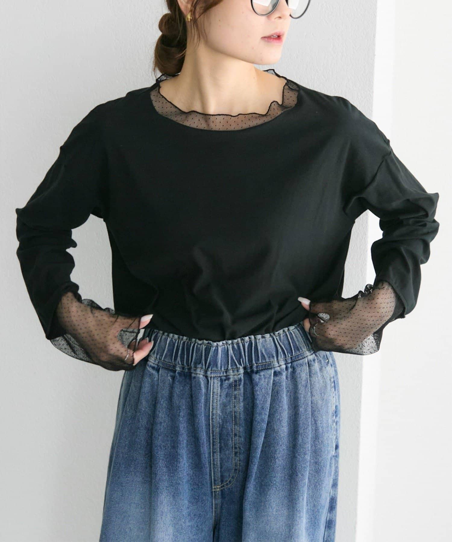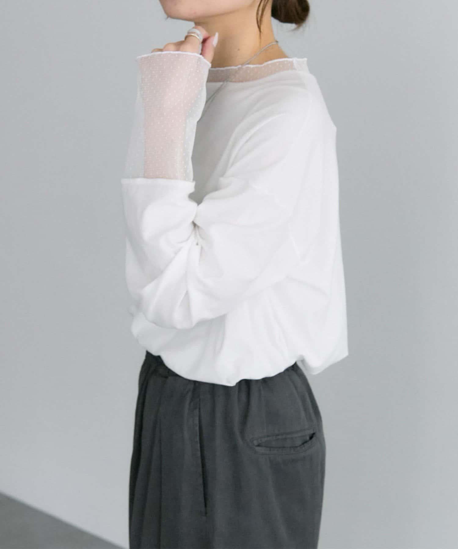 預約商品【復刻】波點網紗拼接疊穿長袖T恤