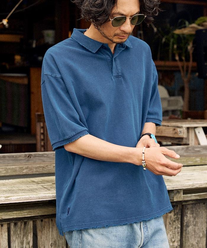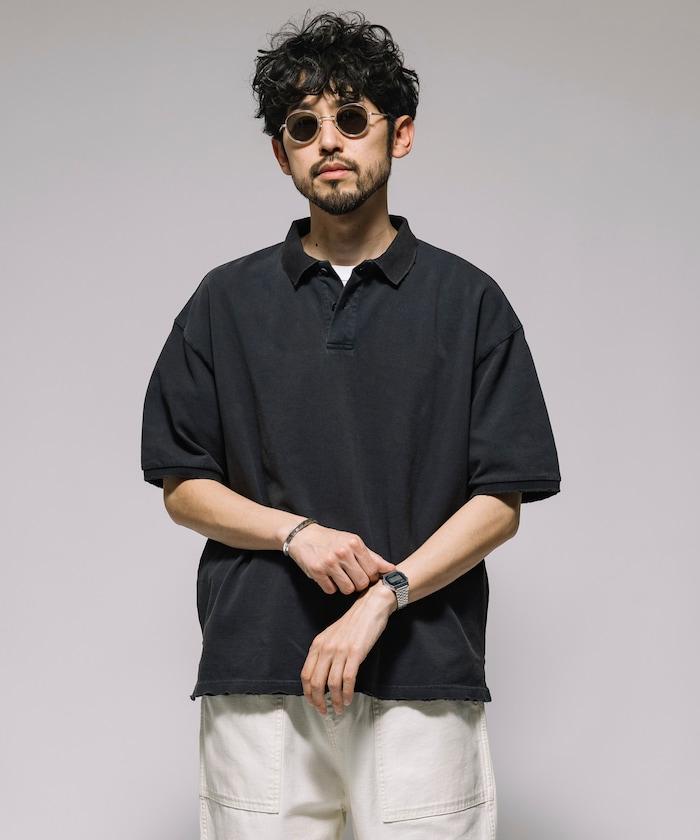 復古加工 超大尺碼Polo衫 / 獨特刺繡