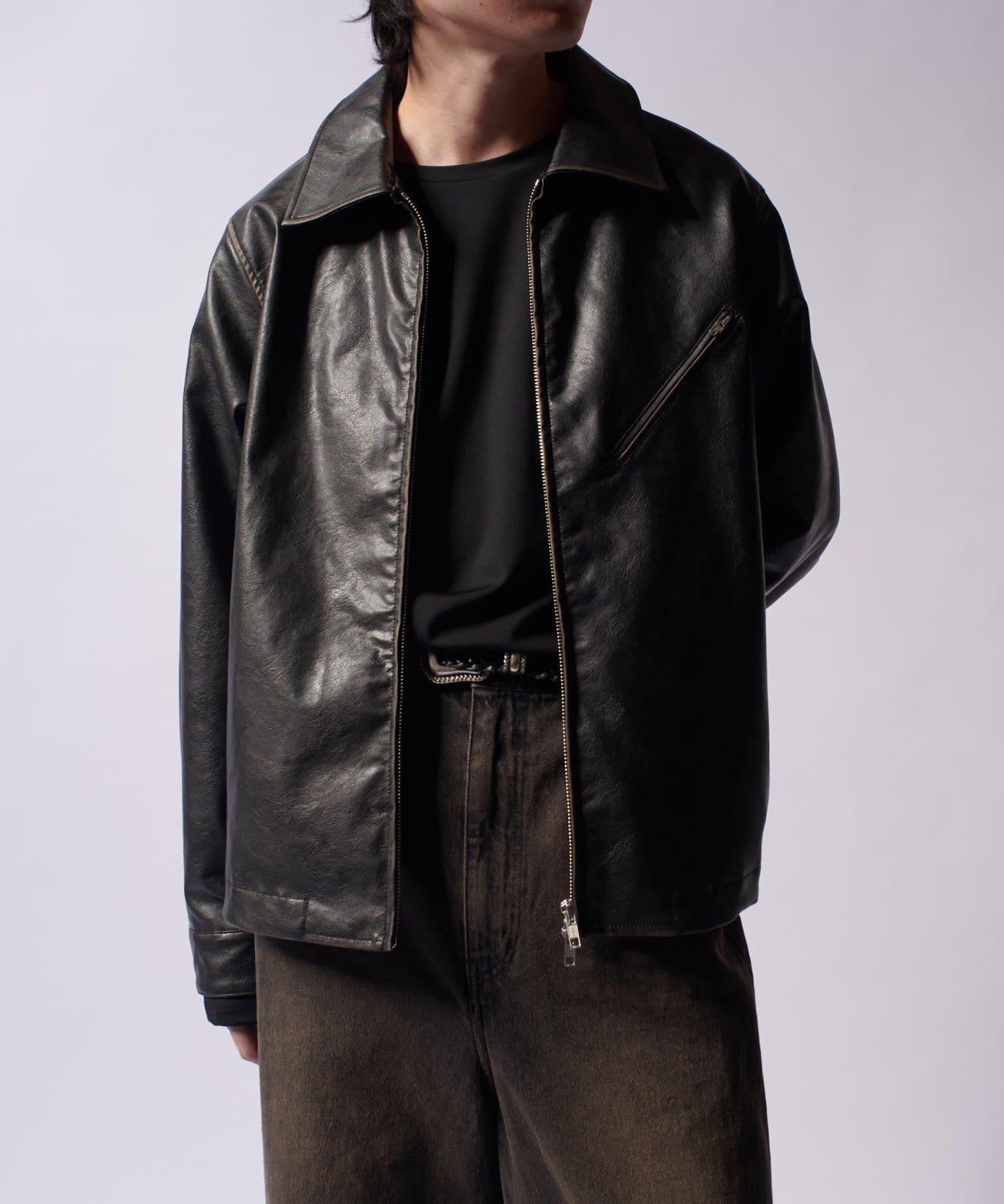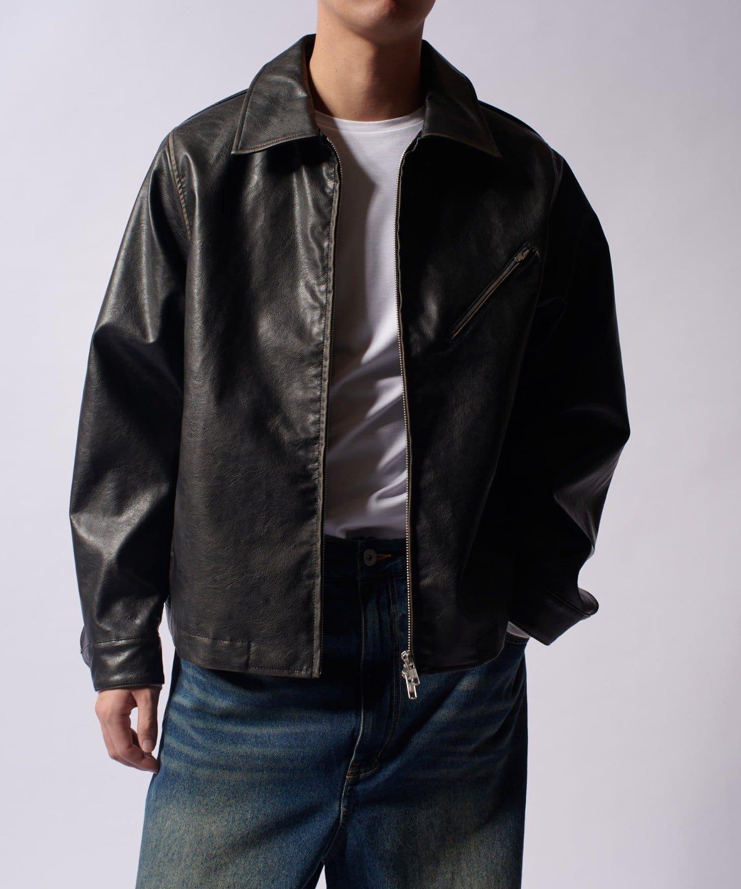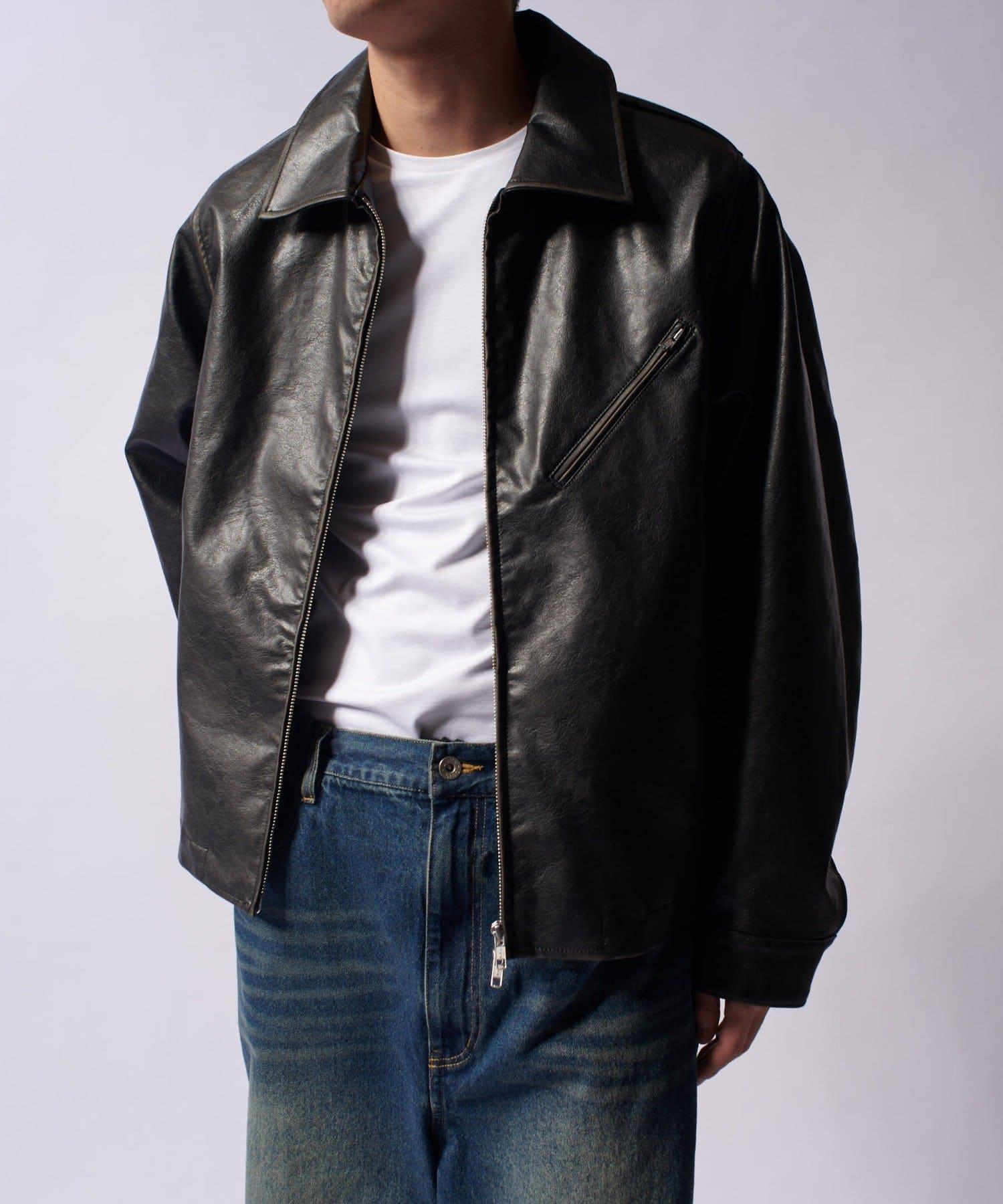 Lui's 25SS Grunge 合成皮革拉鍊蝙蝠衫