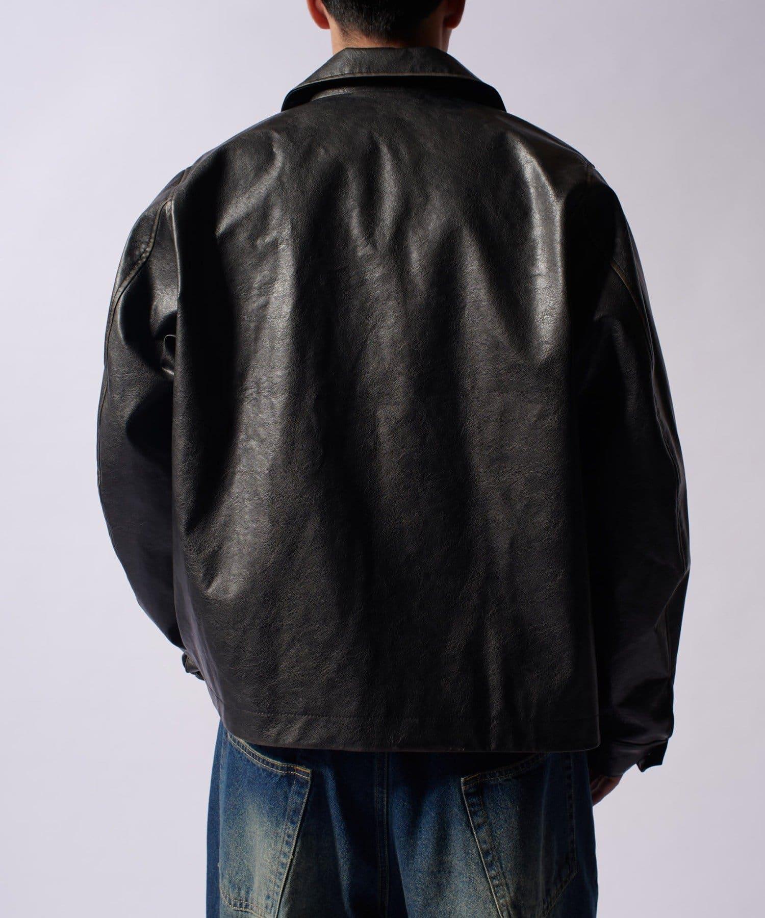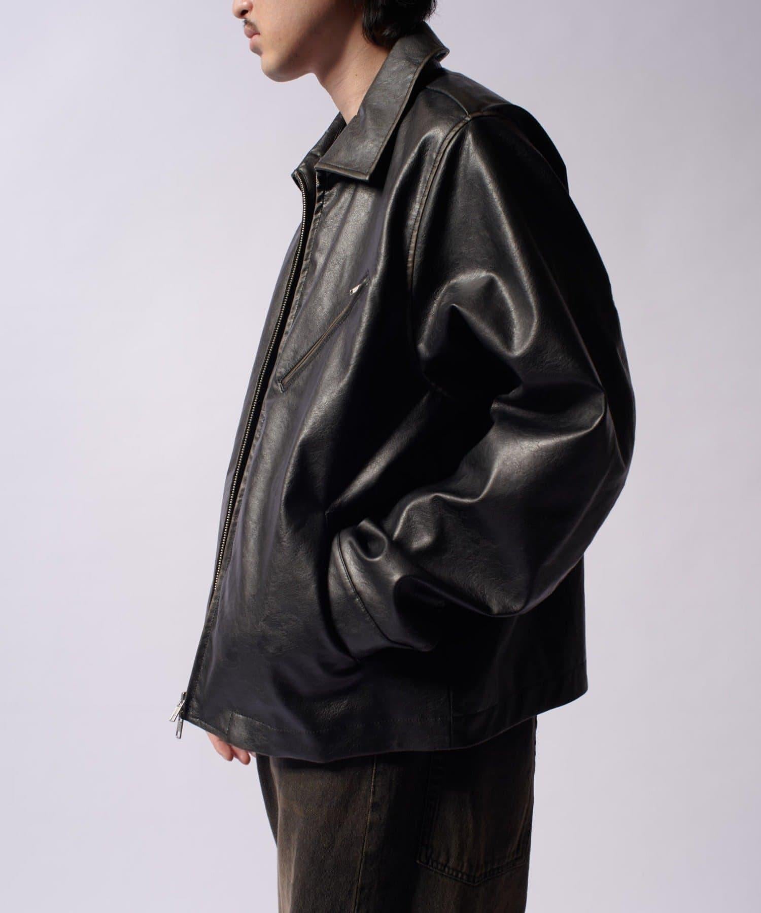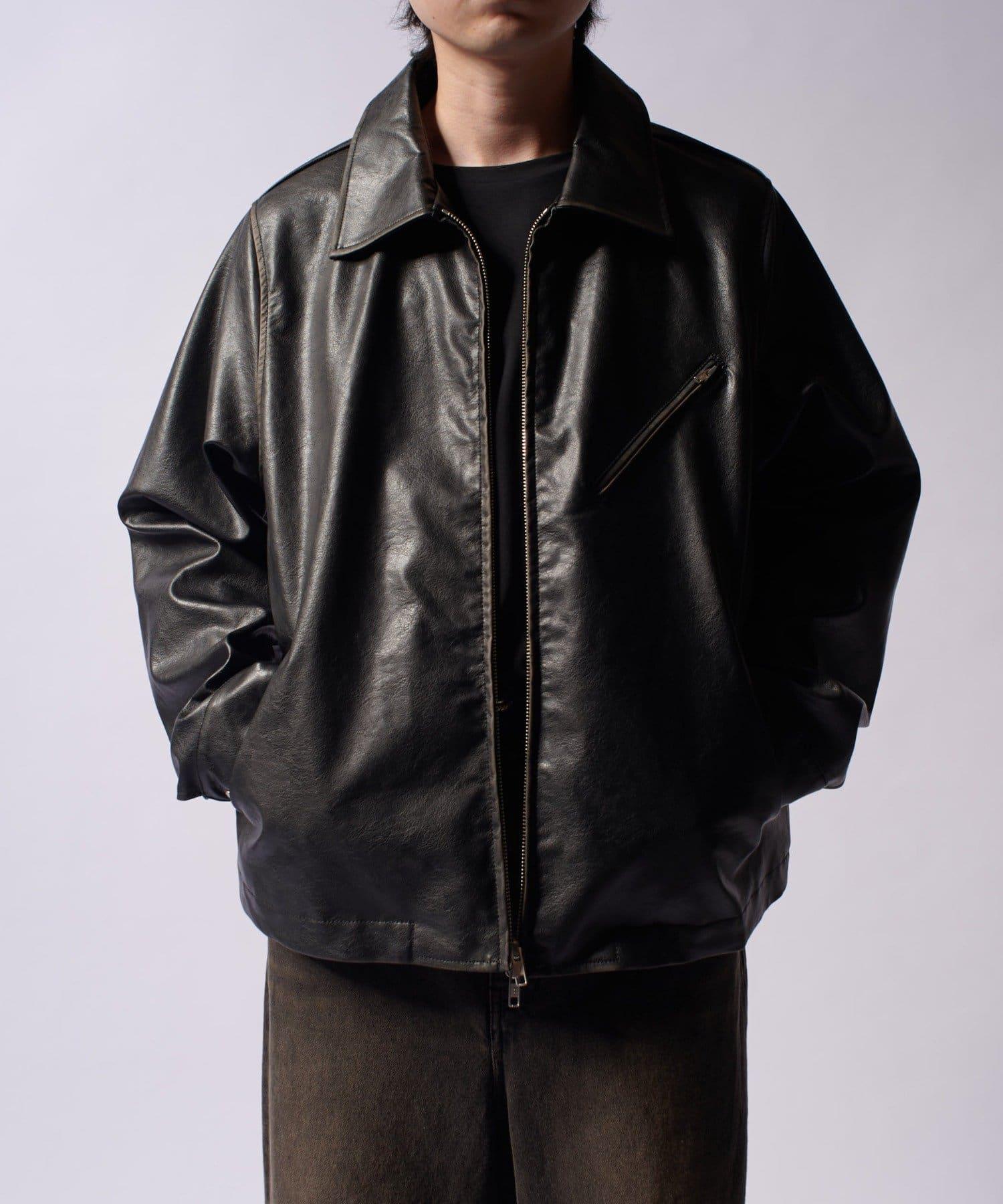 Lui's 25SS Grunge 合成皮革拉鍊蝙蝠衫