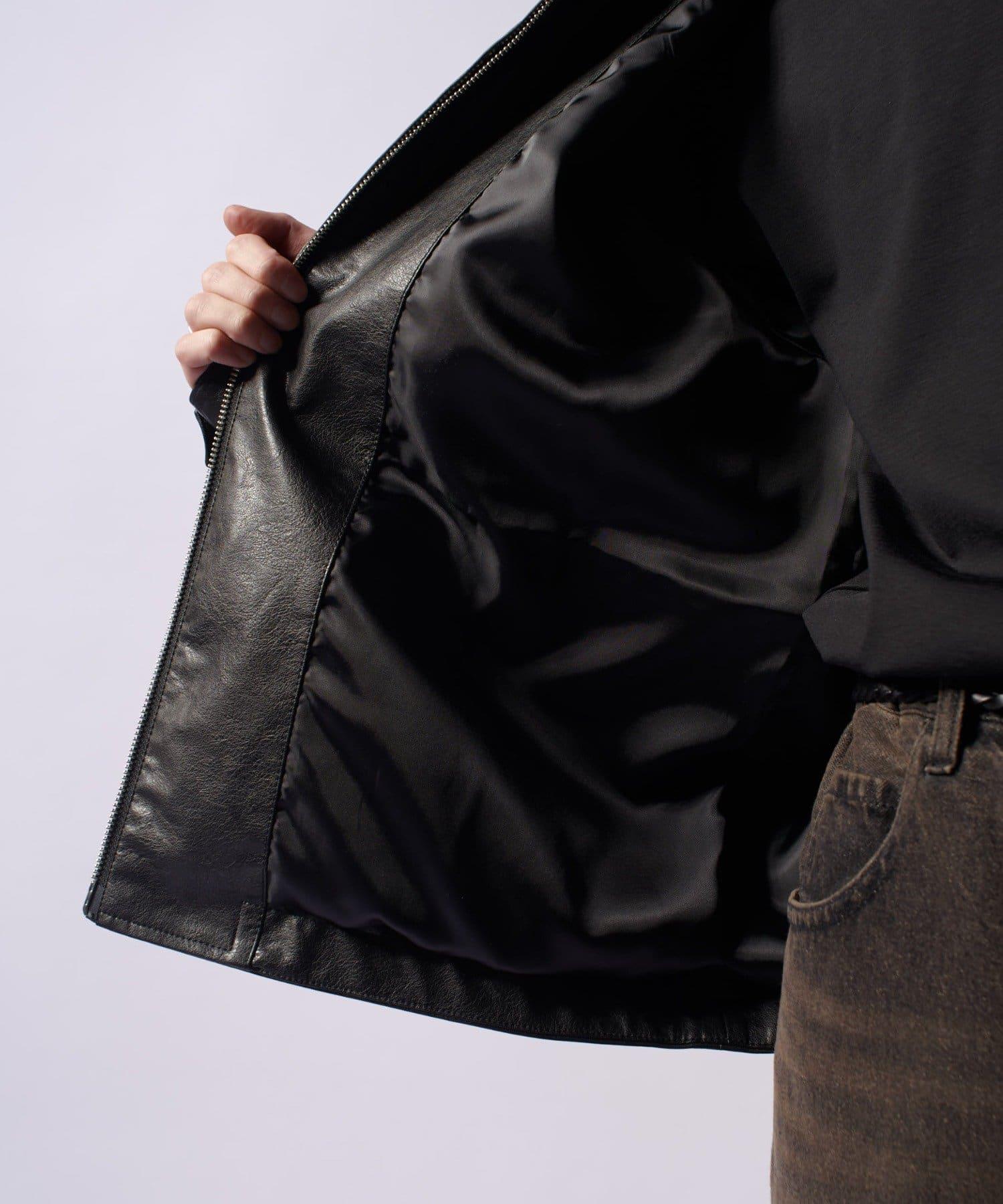 這款夾克衫以單人騎手夾克為原型,尺寸緊湊,略顯寬鬆。衣身的寬度和長度都略顯寬鬆整潔。