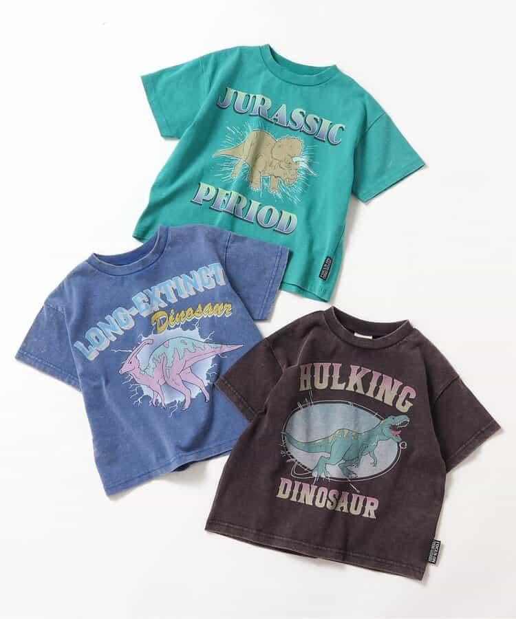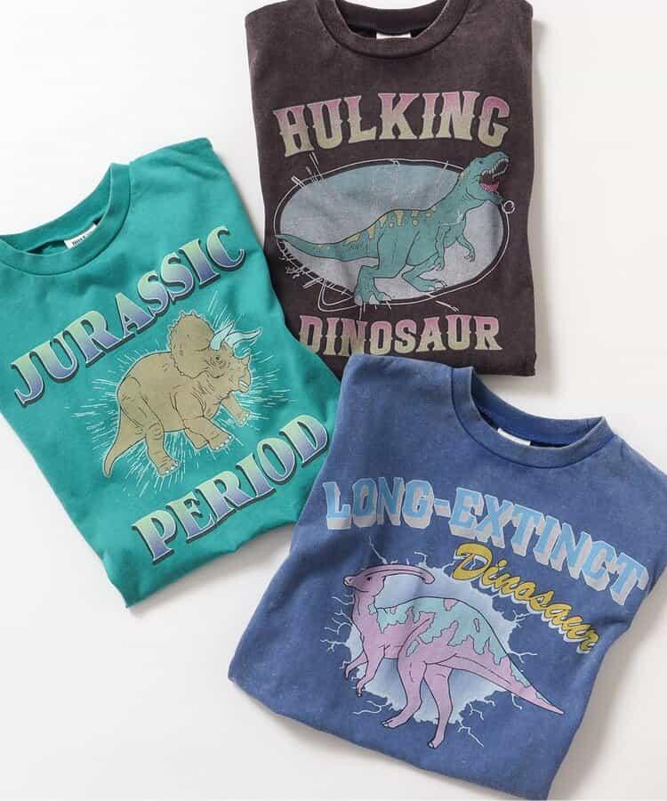 BREEZE 的短袖 "復古恐龍 T 恤 "因價格實惠、種類繁多而廣受歡迎!許多設計可用於上學和放學,具有極佳的穿著效果!