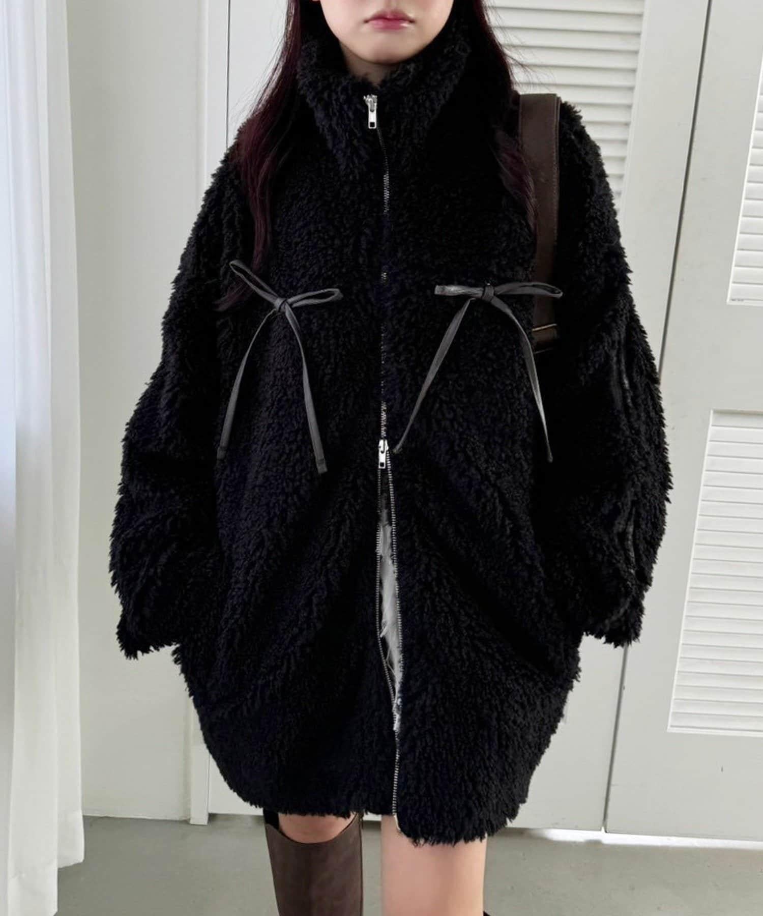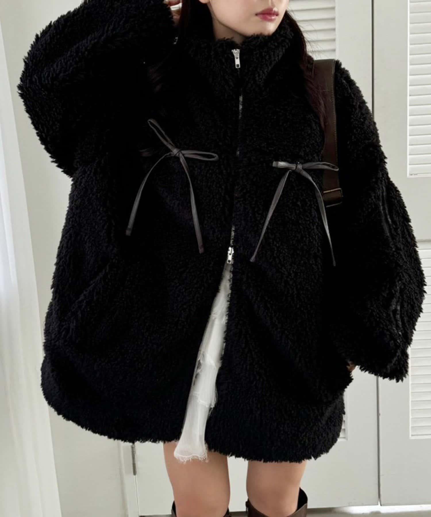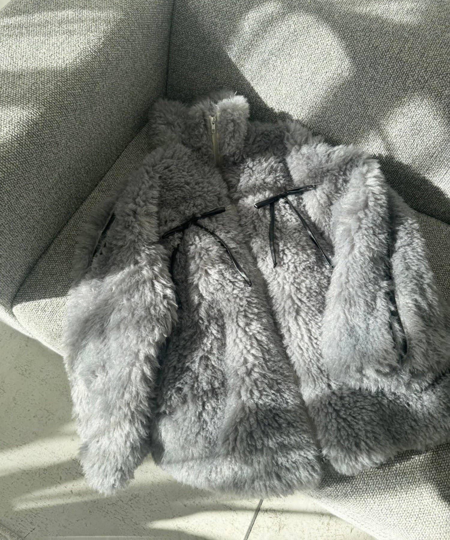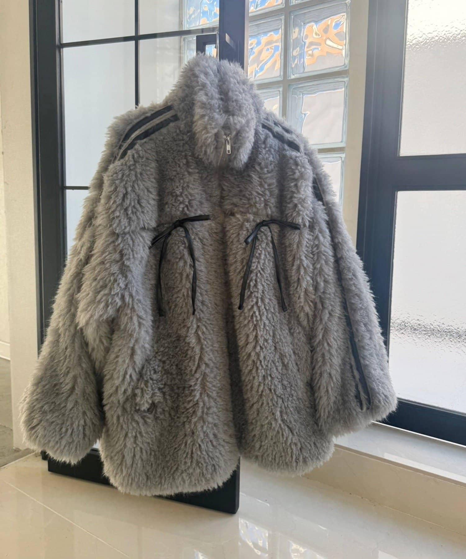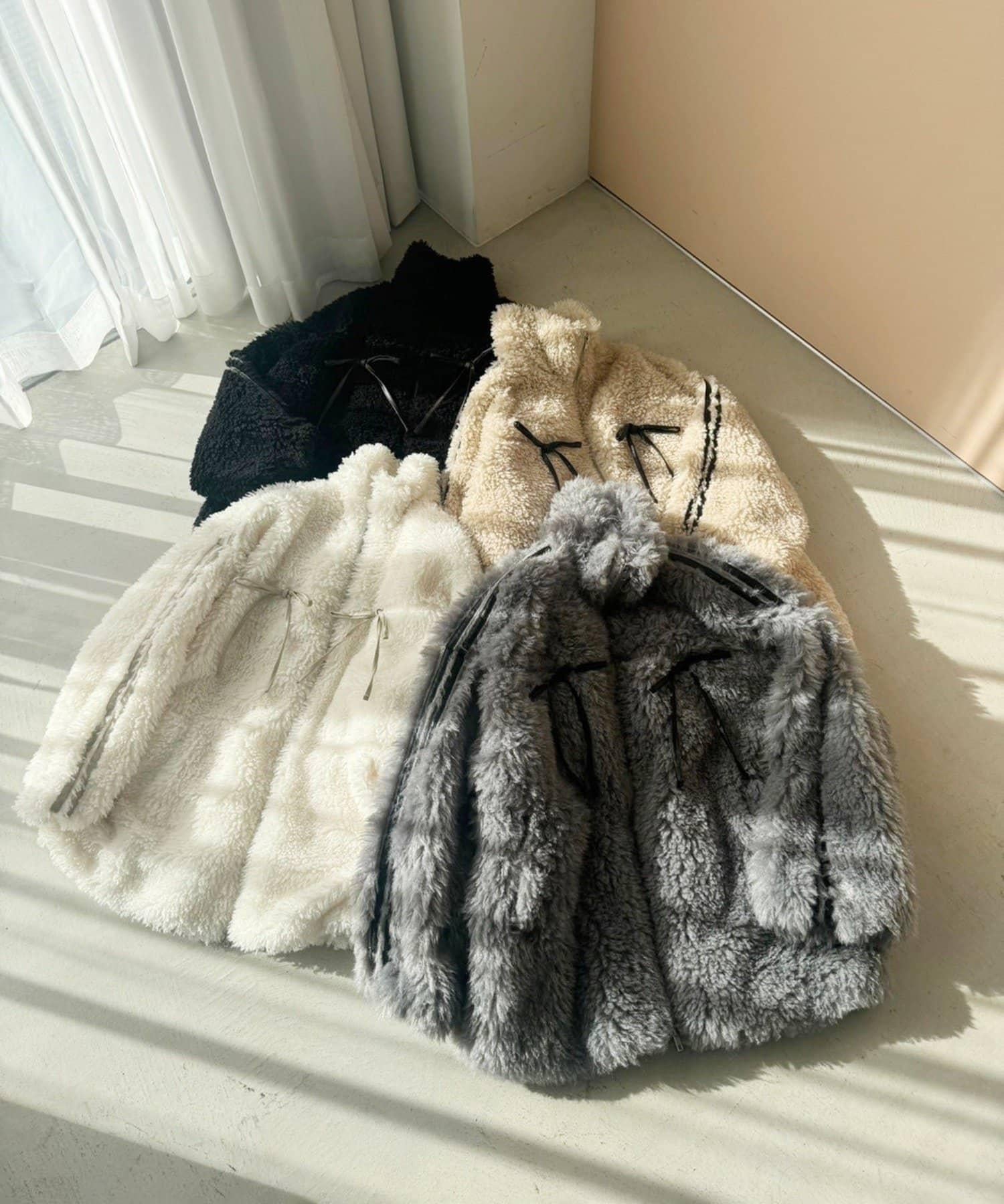 【復古款】蝴蝶結毛絨夾克/可拆卸蝴蝶結