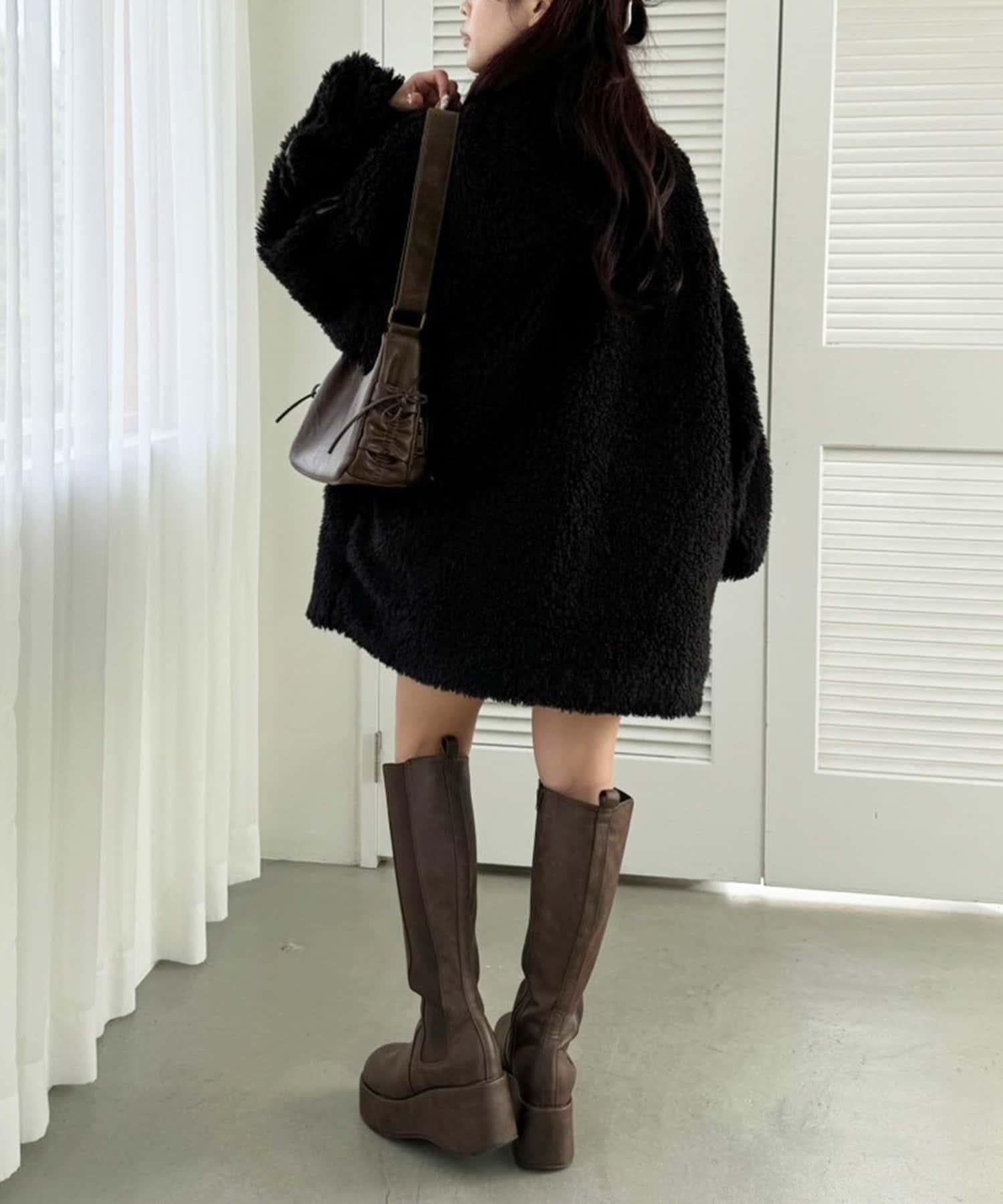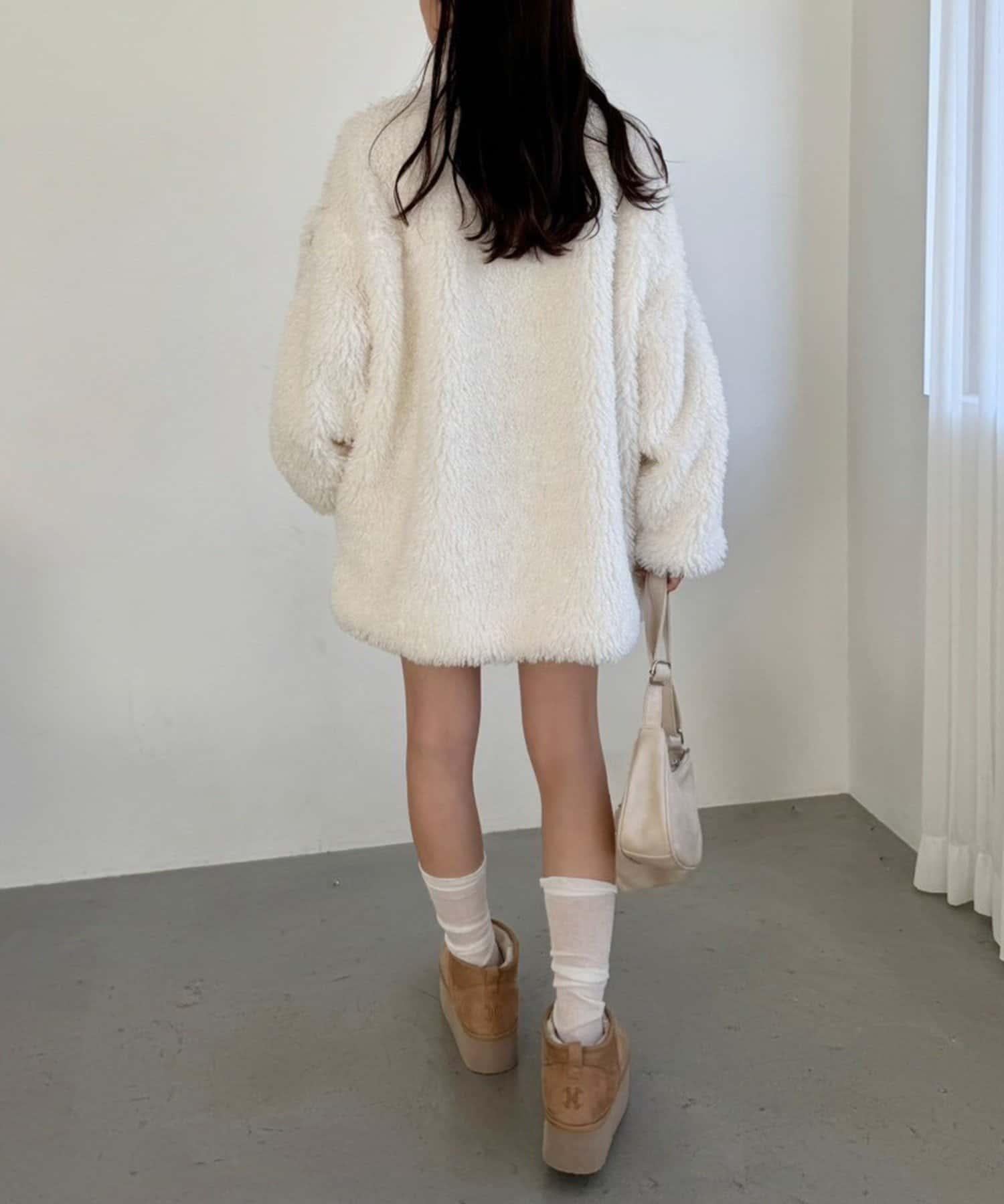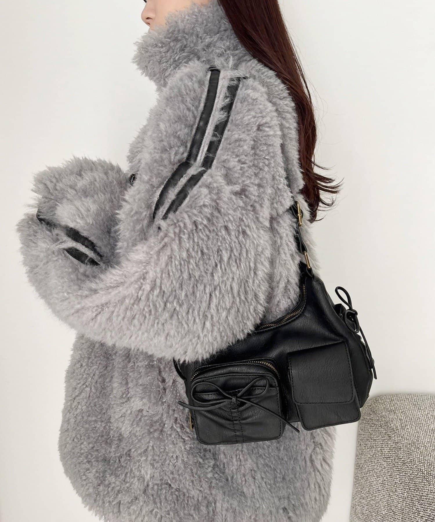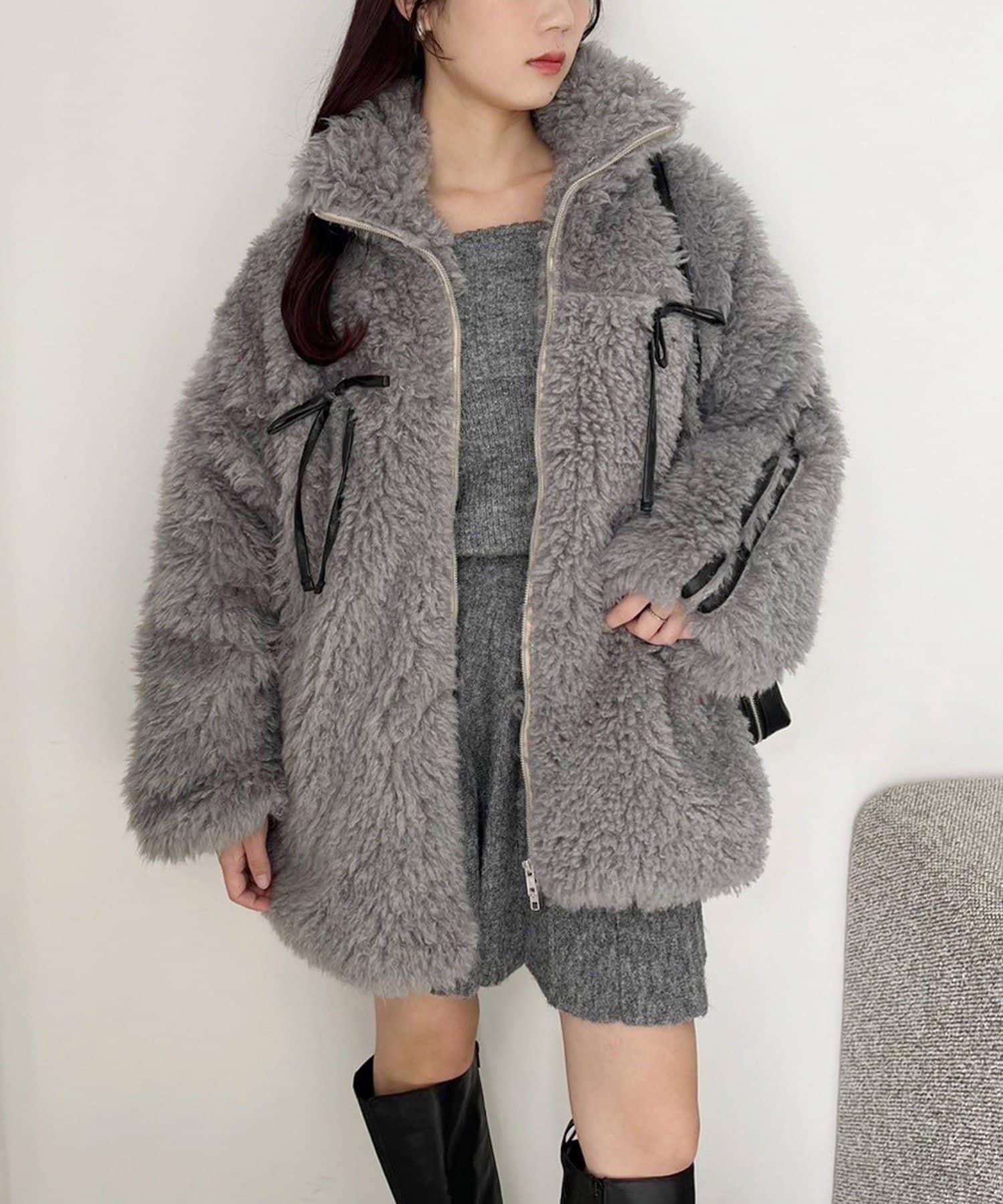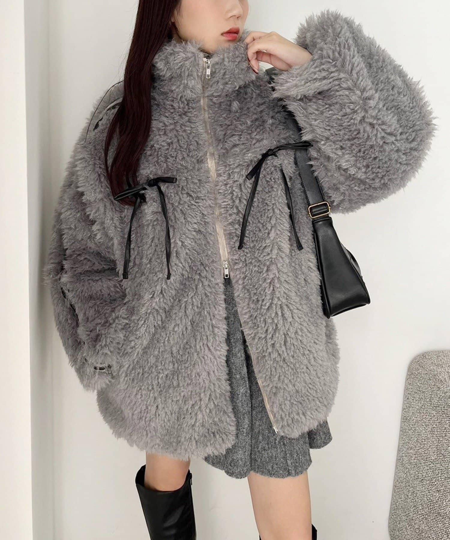【復古款】蝴蝶結毛絨夾克/可拆卸蝴蝶結