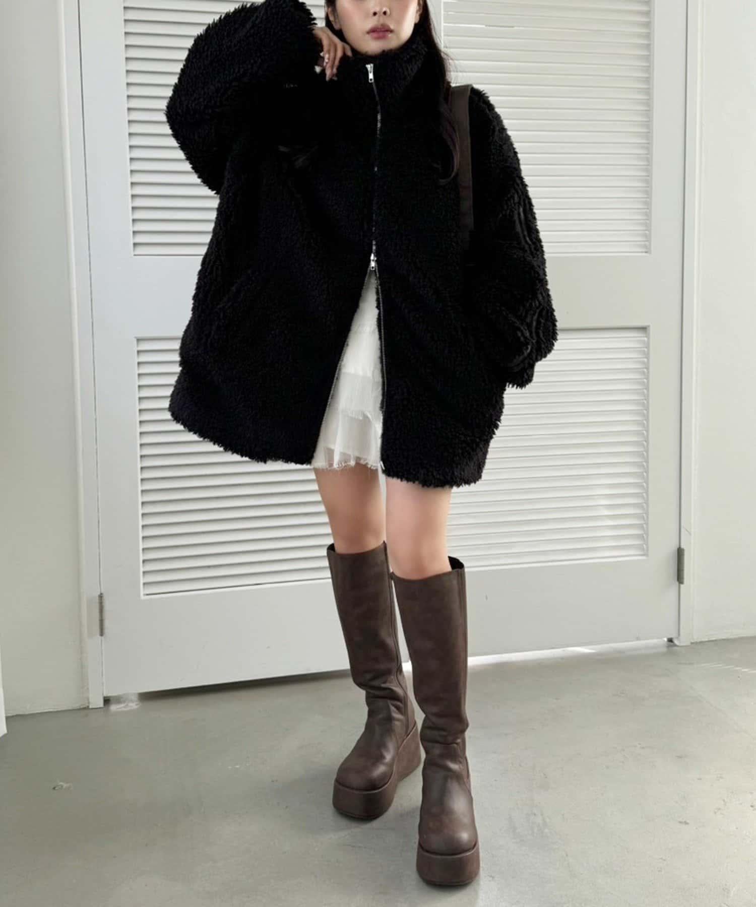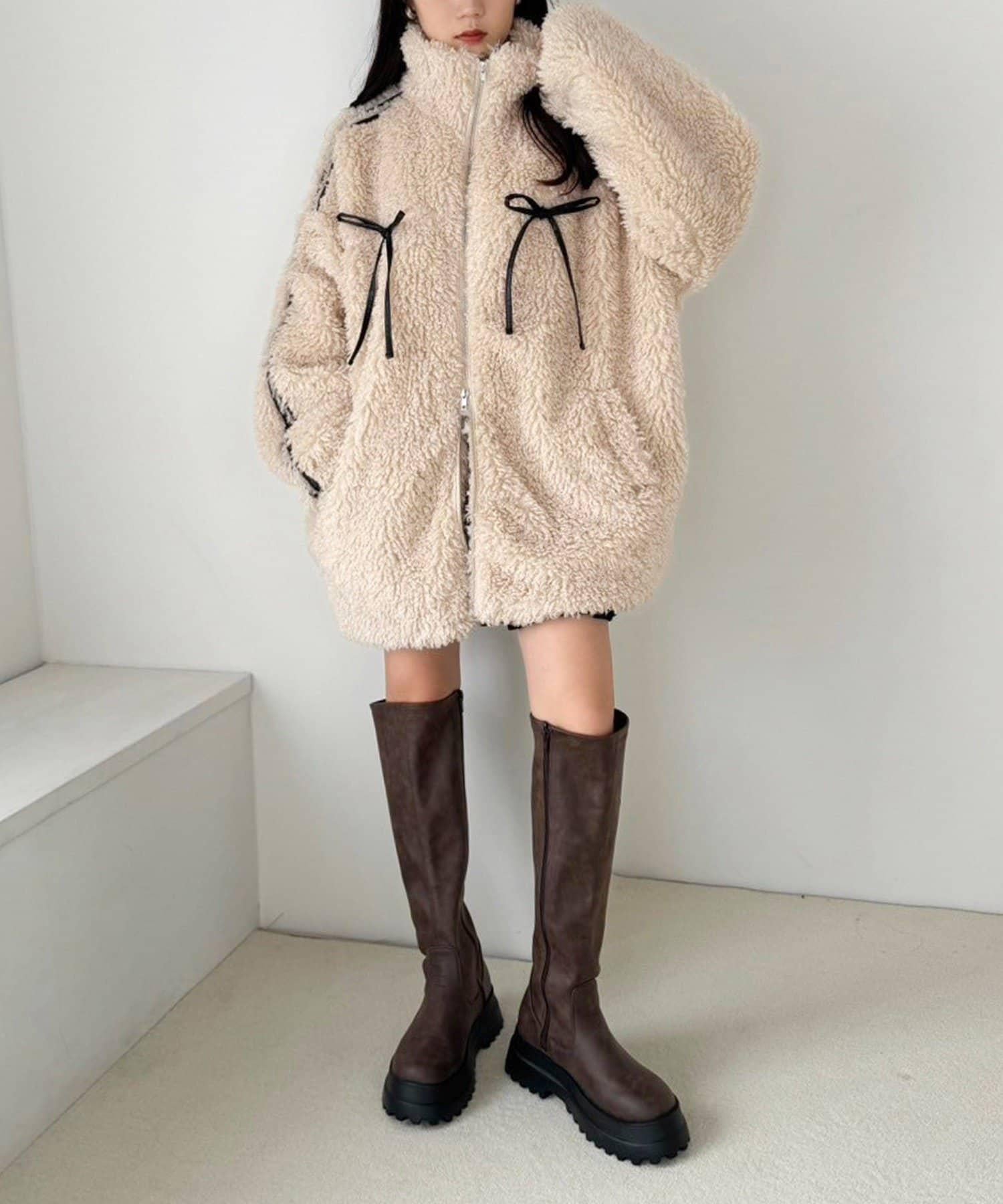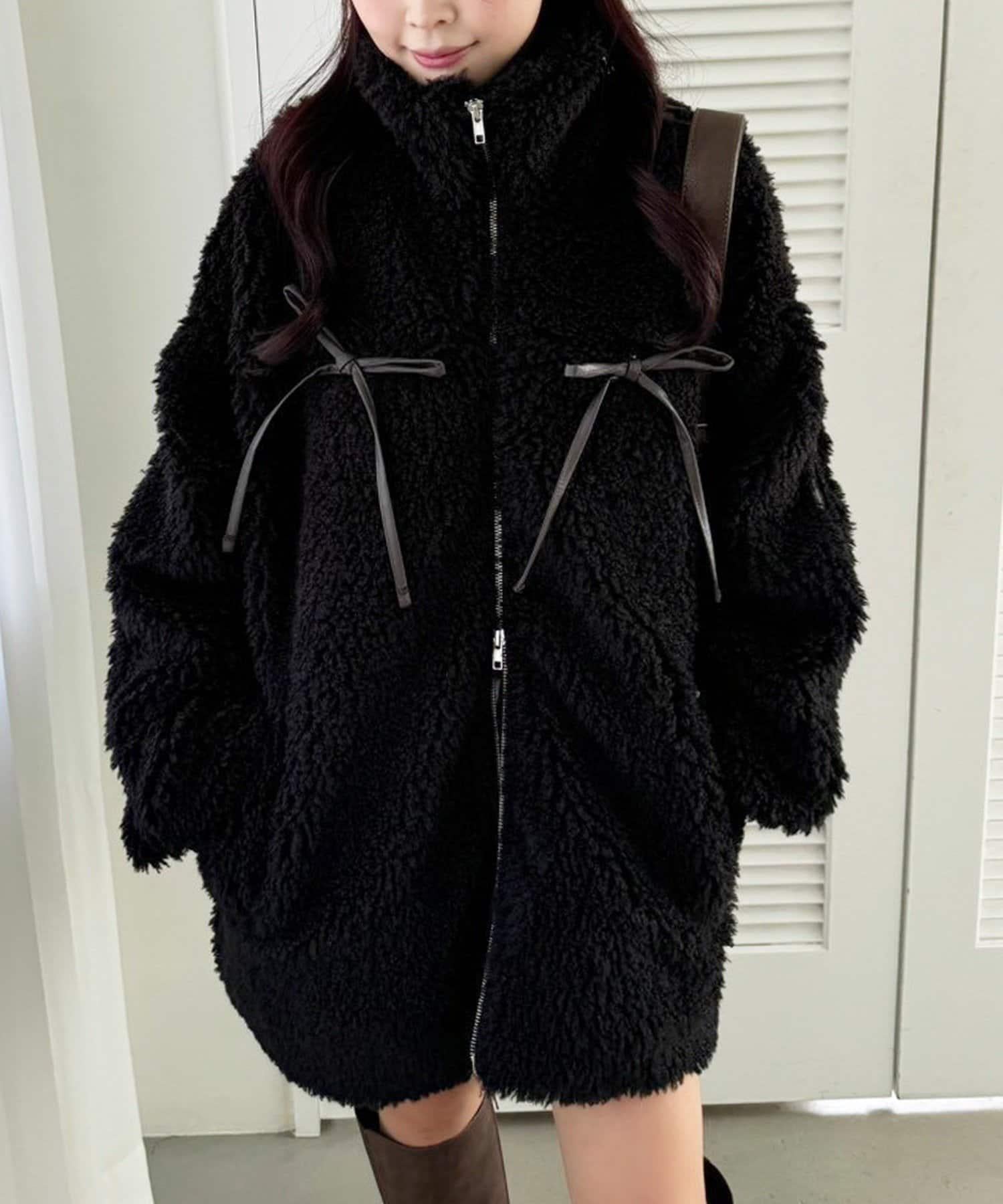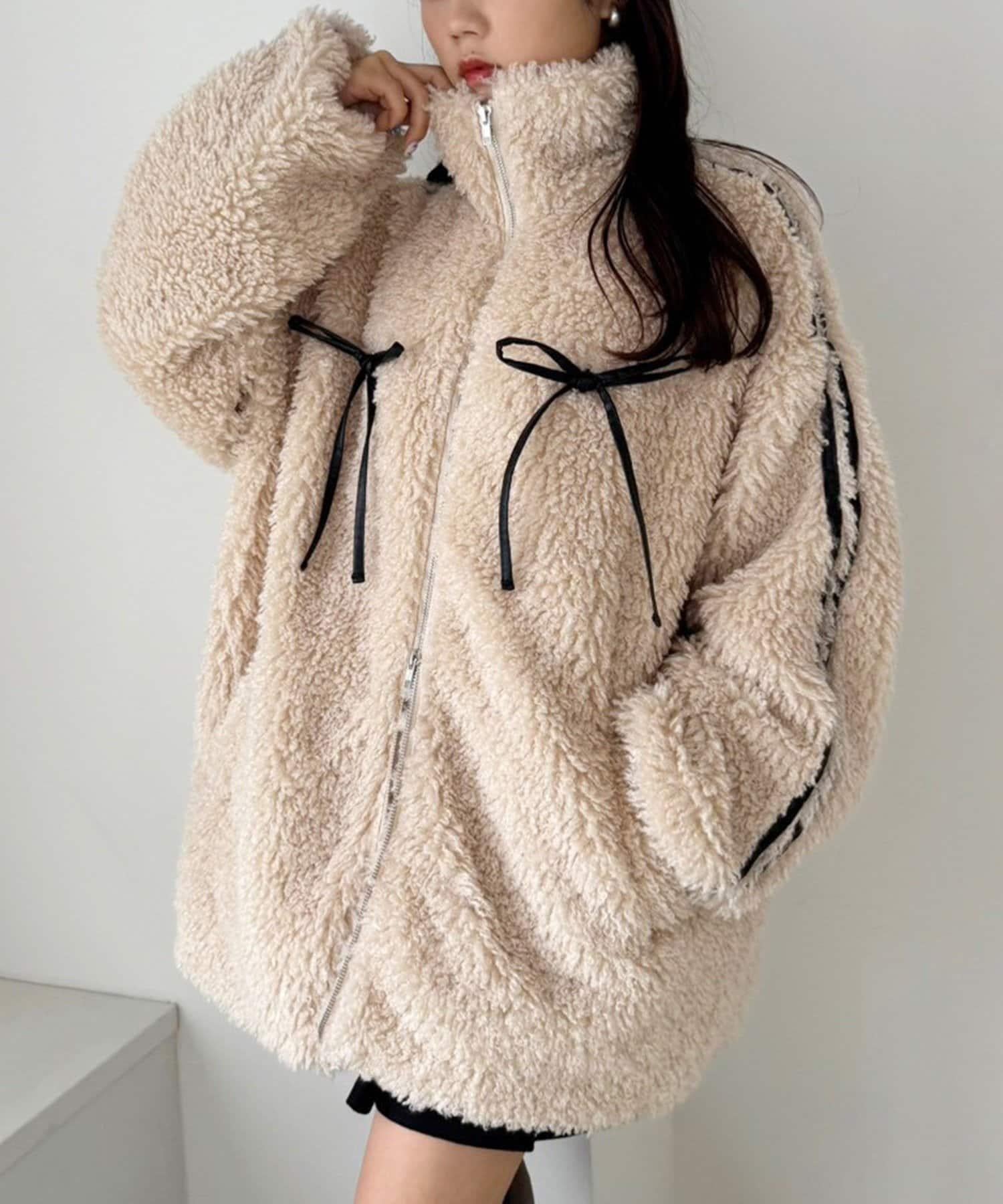 袖子上有線條、胸前有絲帶的 Boa 夾克。