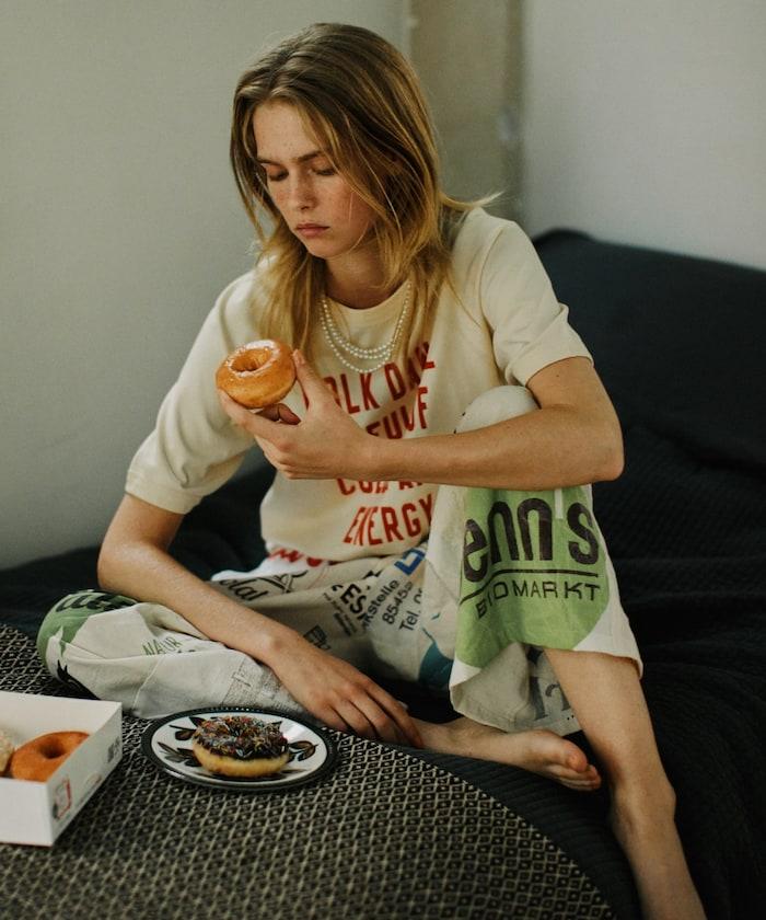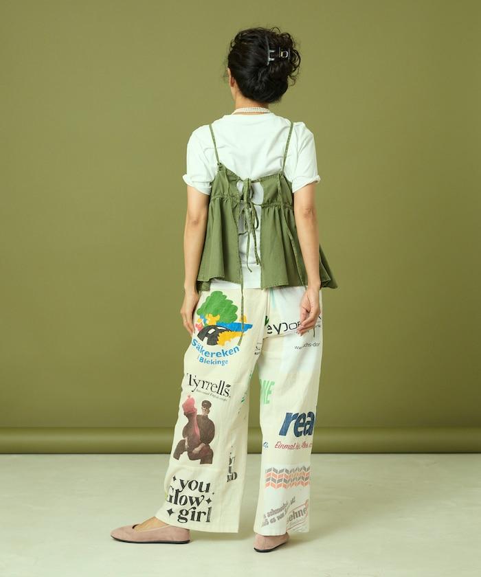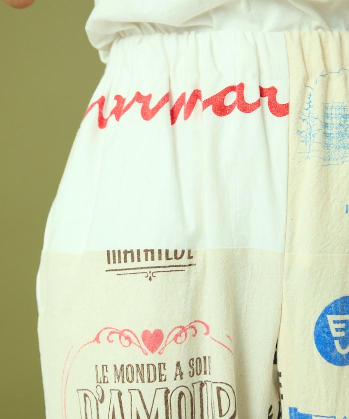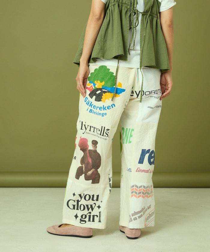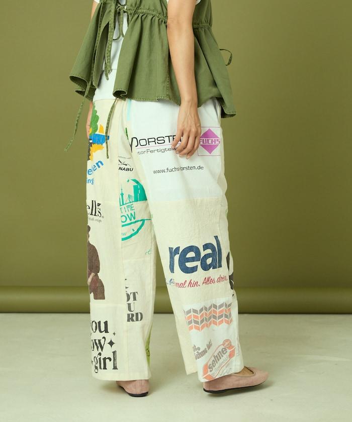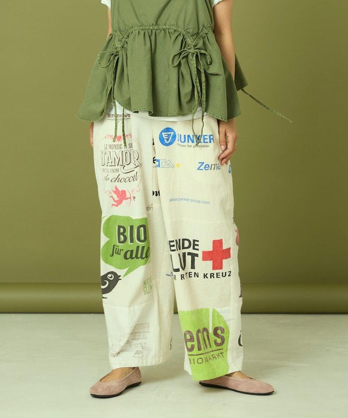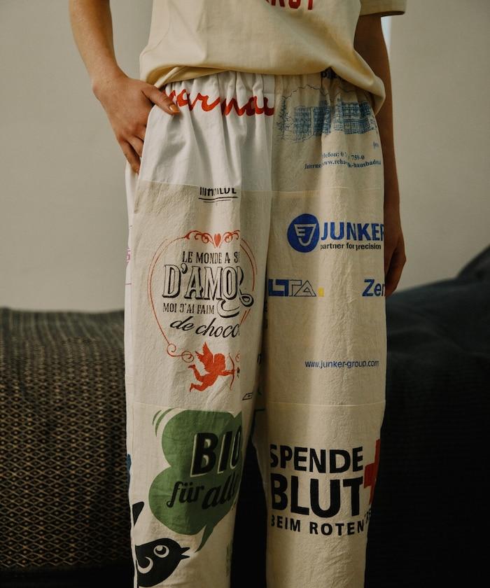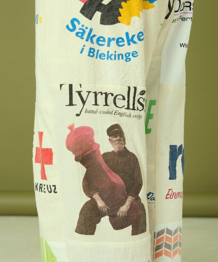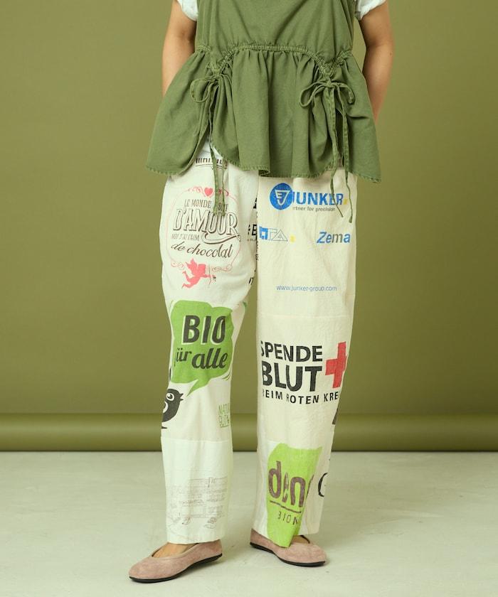 這條褲子是用舊布料重新制作的,屬於雜項商品,每件的圖案和顏色位置都不一樣。由於沒有兩條是相同的,因此是一款特殊的產品。