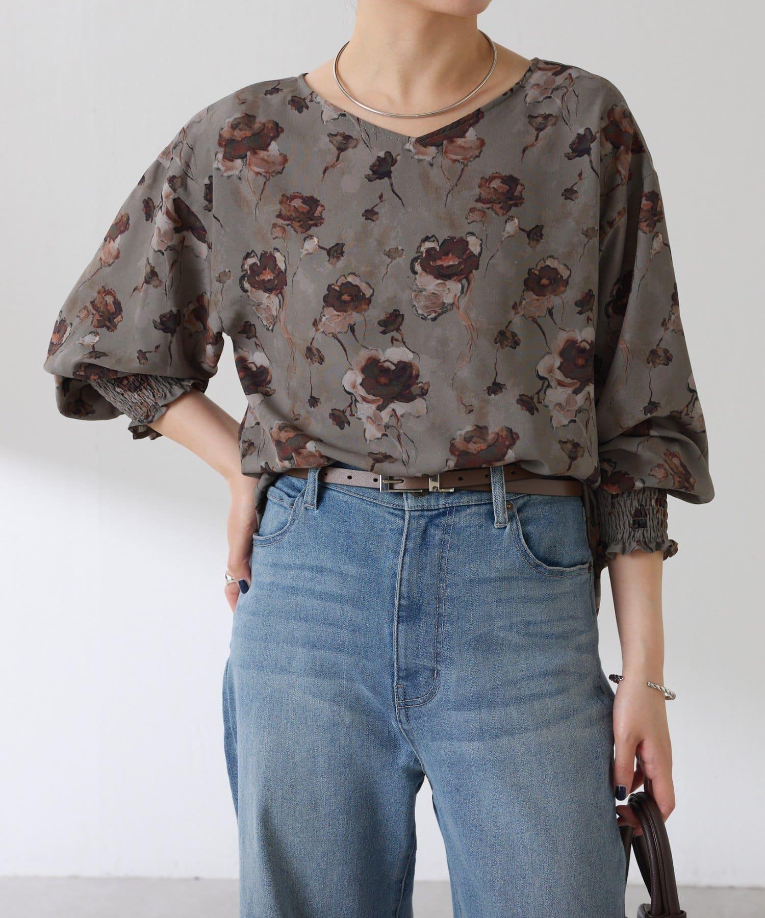 花朵圖案上衣,在秋冬搭配中非常適合。